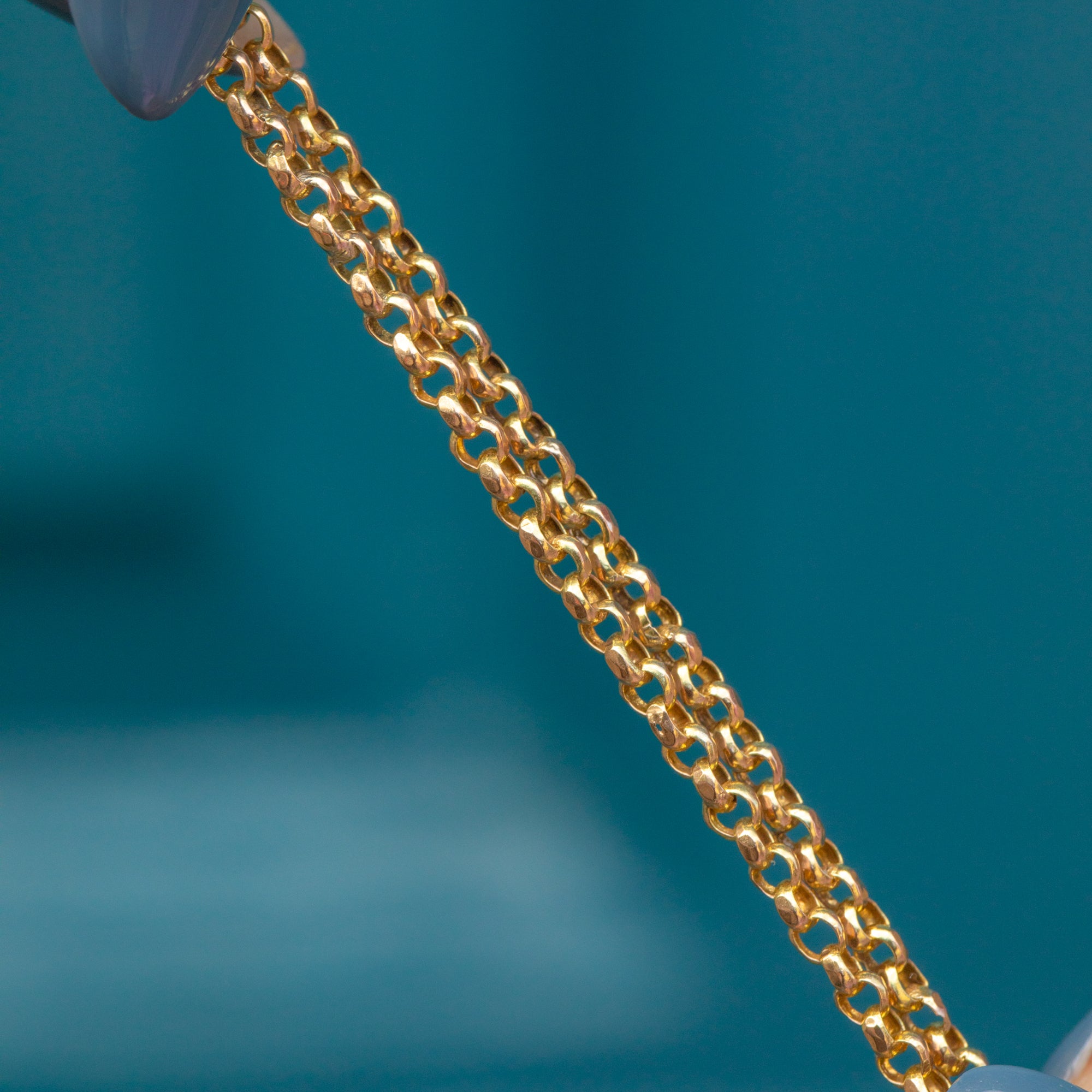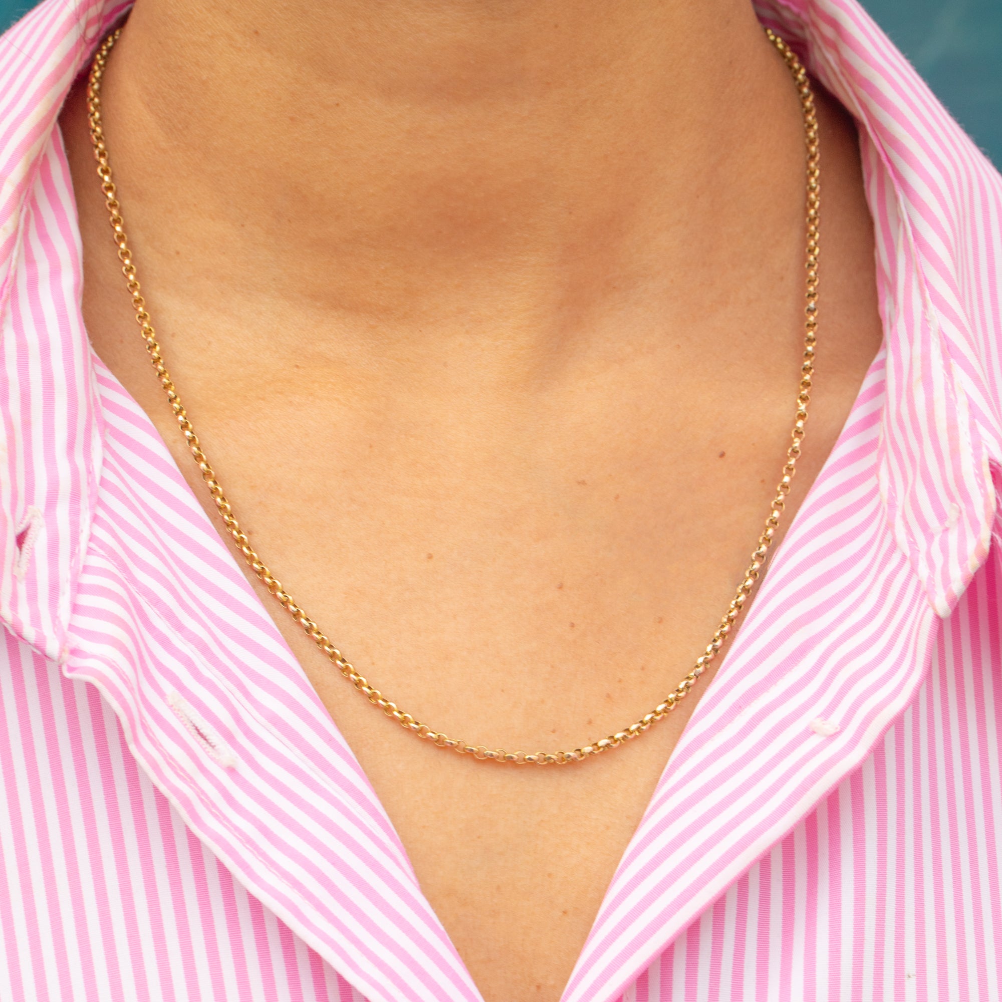 EXCELLENT. This 19.5" antique 9ct Gold skinny belcher chain is in excellent condition! The belcher links are all securely interlinked with a radiant hue throughout. The dog-clip is in perfect working order and securely connects to the jump-ring. Please note she can be a little fiddly due to her dainty size but, once secured, she isn't going anywhere. This Victorian chain is ready to wear straight from your pink Lillicoco box!