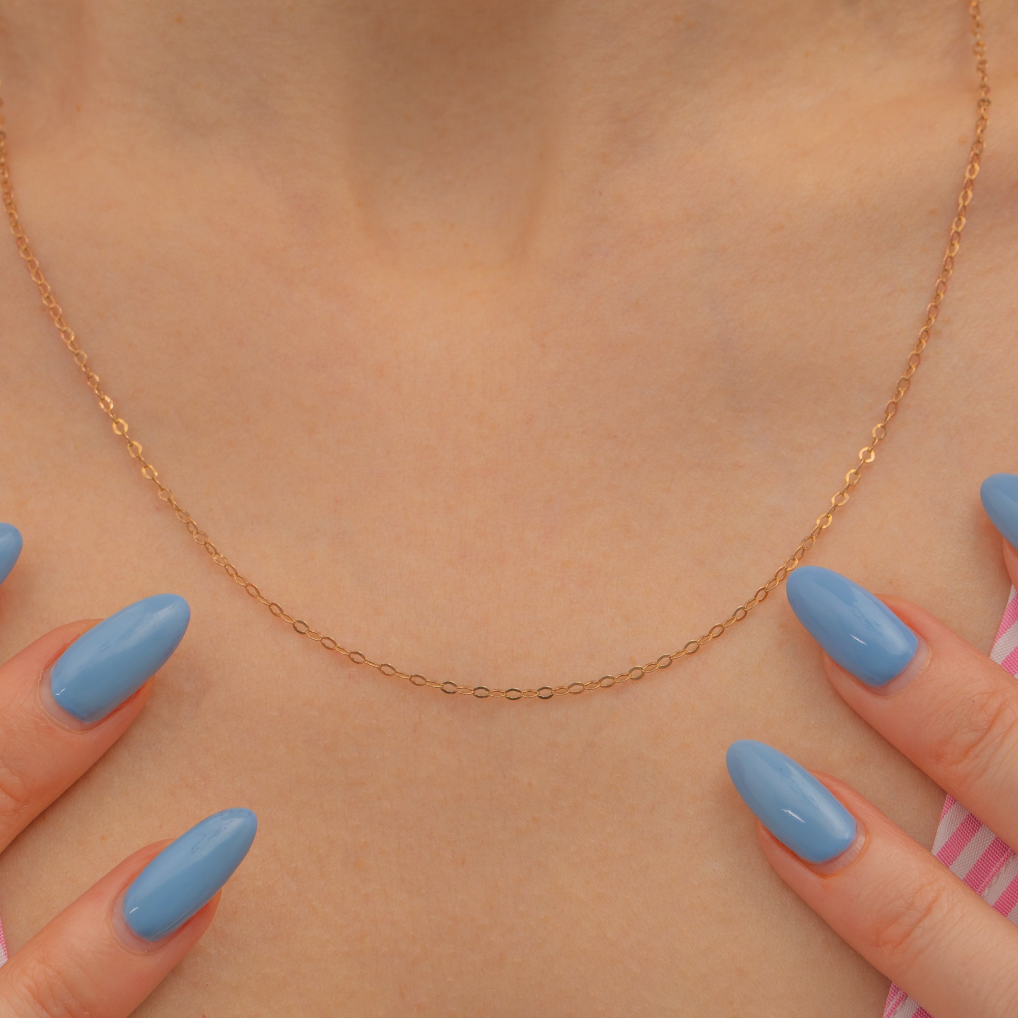 This antique 9ct Gold skinny pendant chain will make a lovely addition to your collection! The flat oval sumptuous 9ct Gold links glisten in the light, giving this chain an expensive feel.
