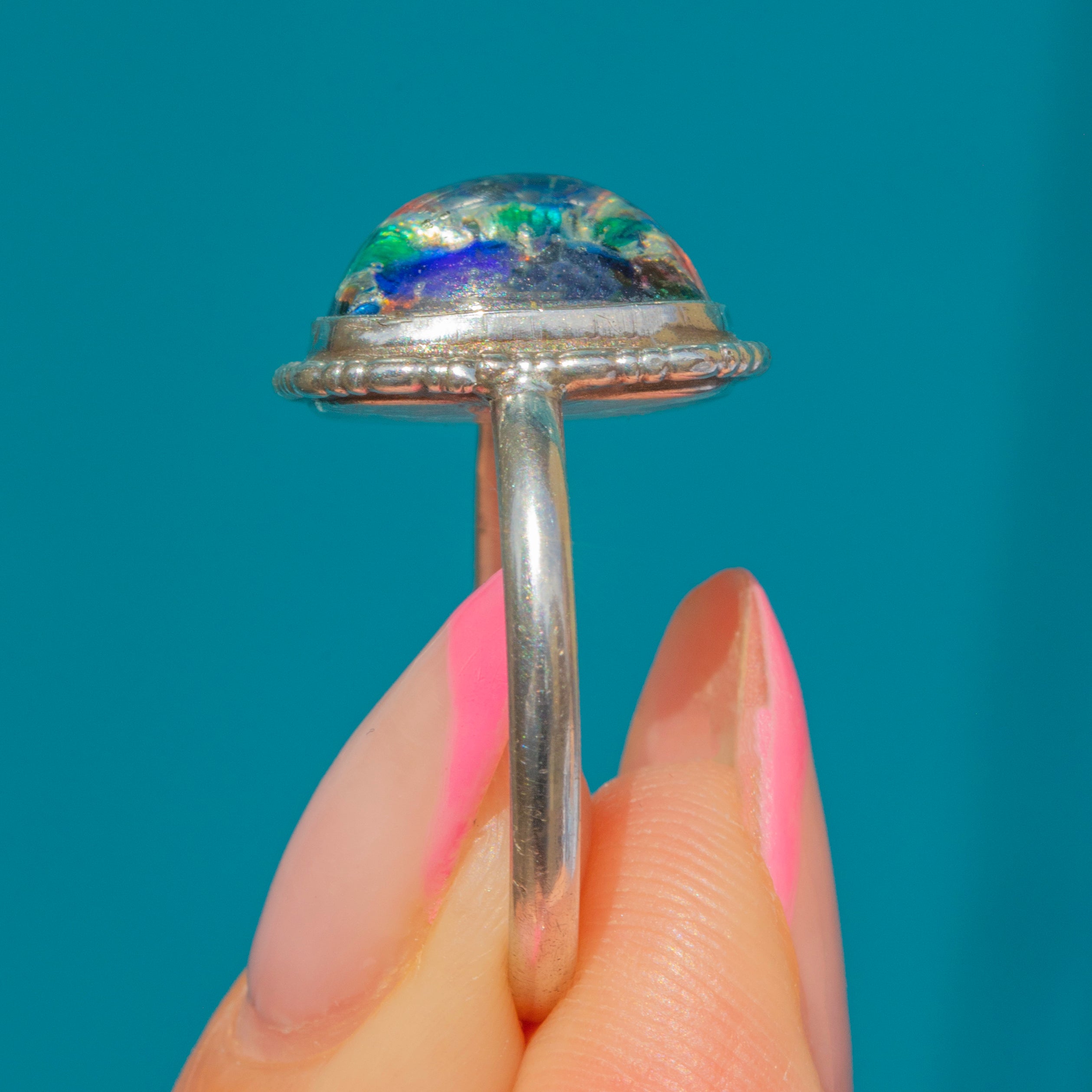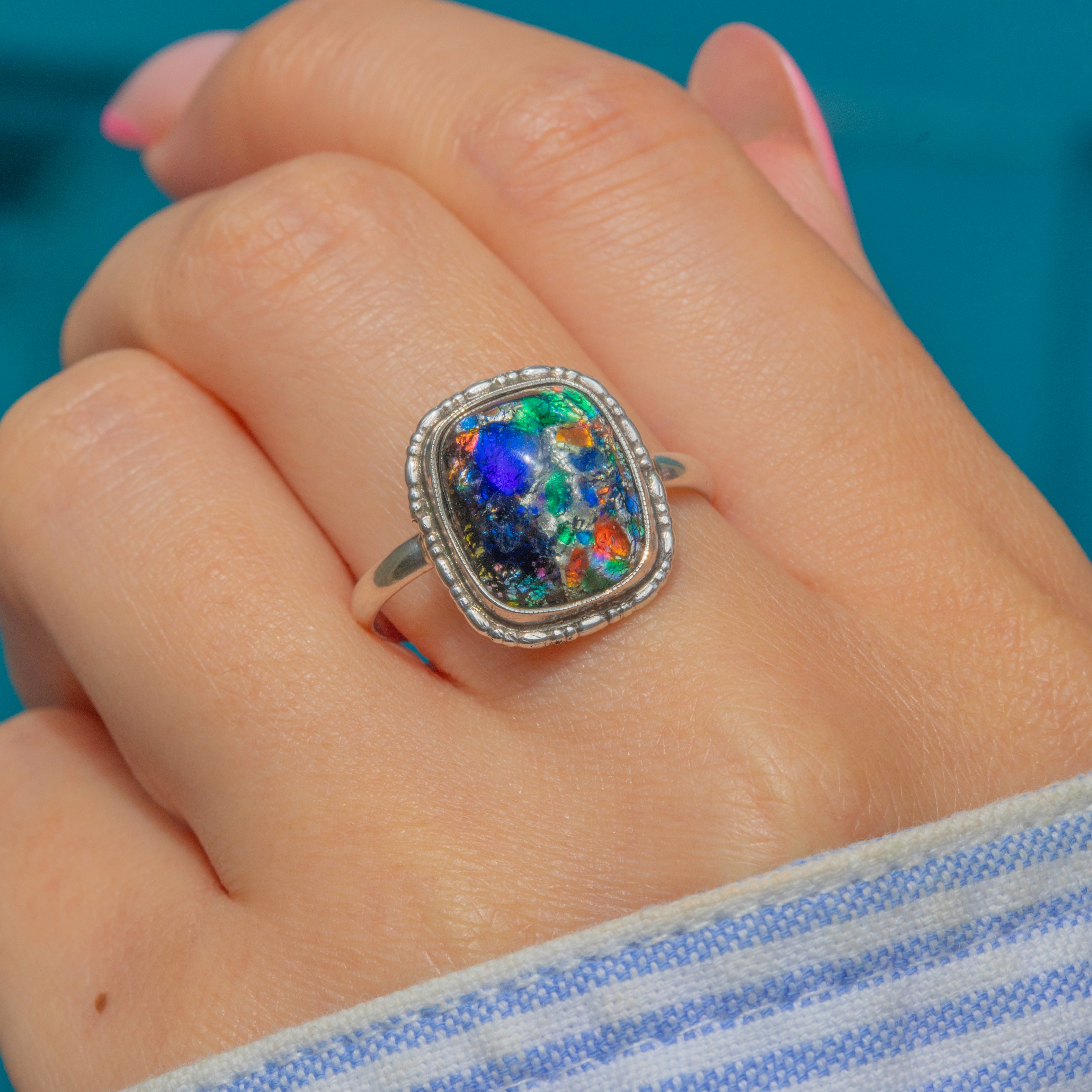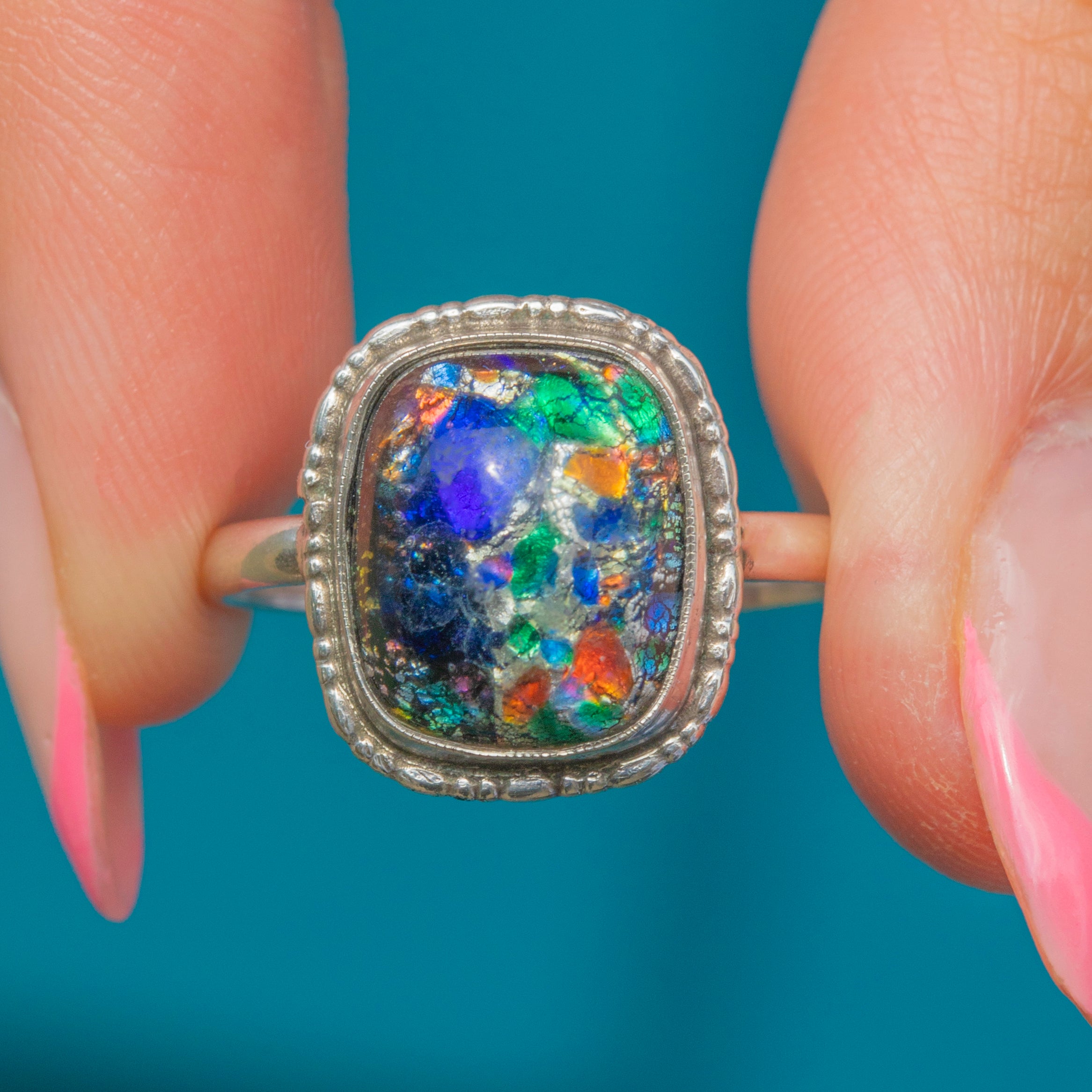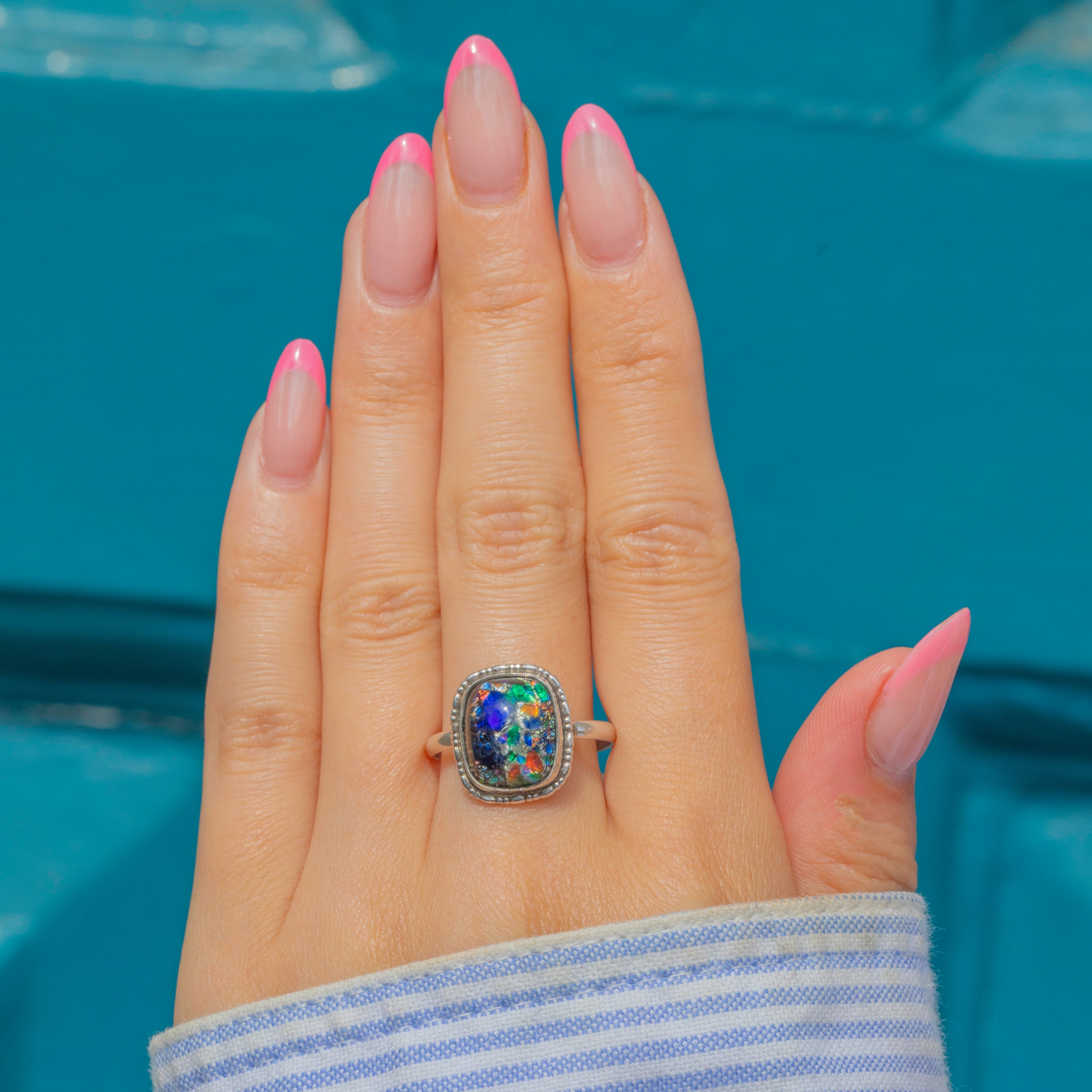 Home to a rainbow of colours, from electric blues to the softest touch of pink, this 1920s Venetian glass ring is he perfect piece to liven up your outfit this summer!