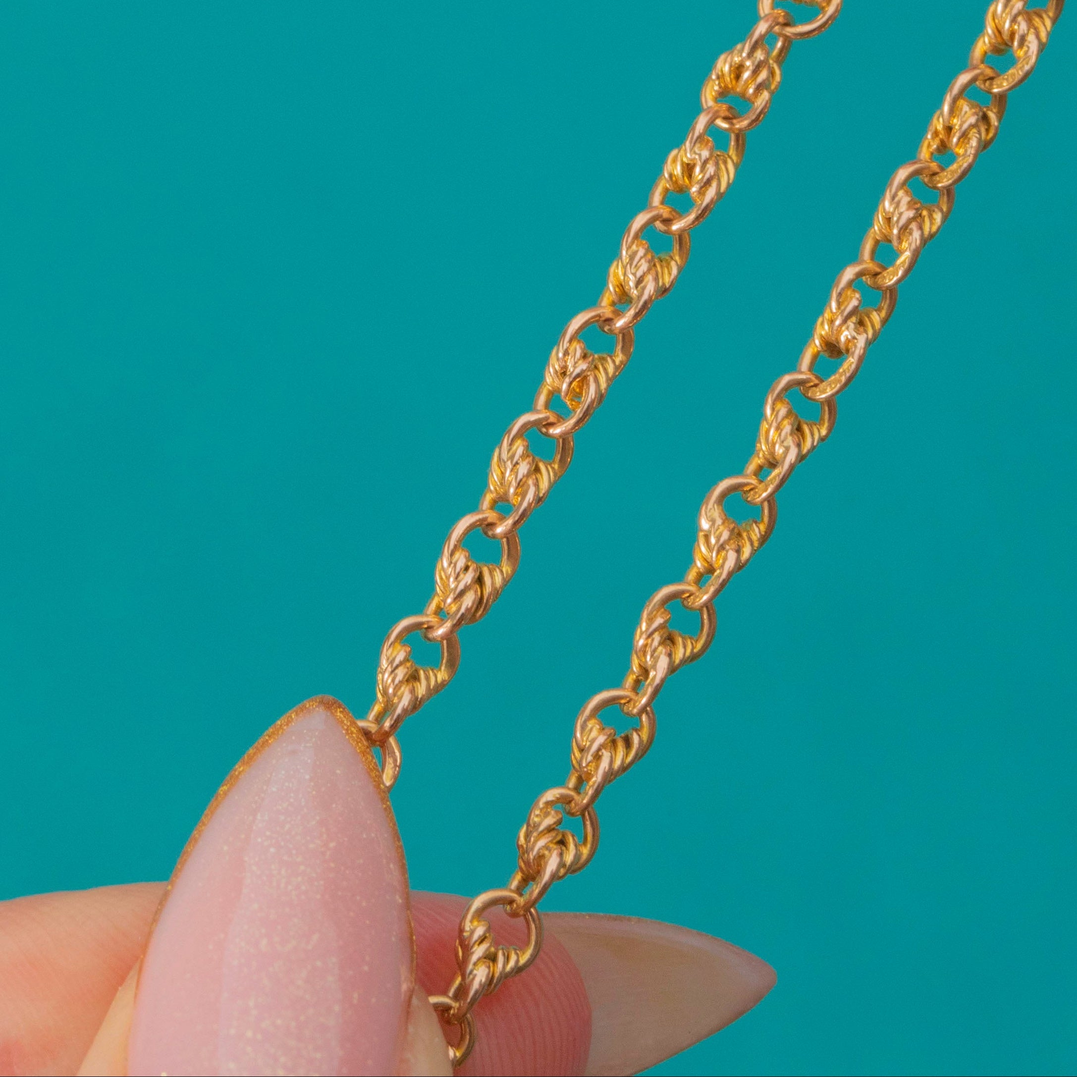 Crafted entirely in rich buttery 15ct Gold, the chain has a luxurious weight and gleaming tone that feels unmistakably antique.