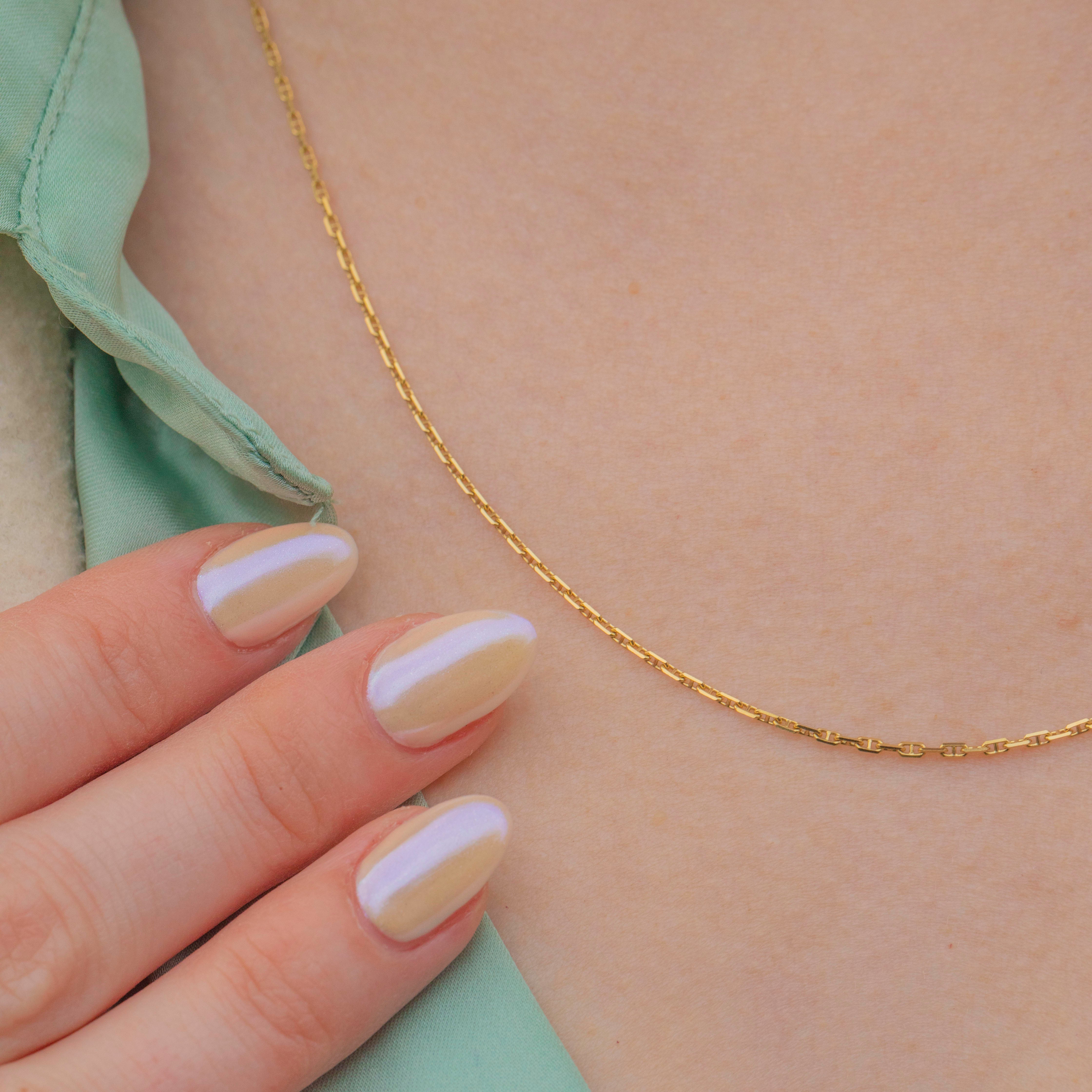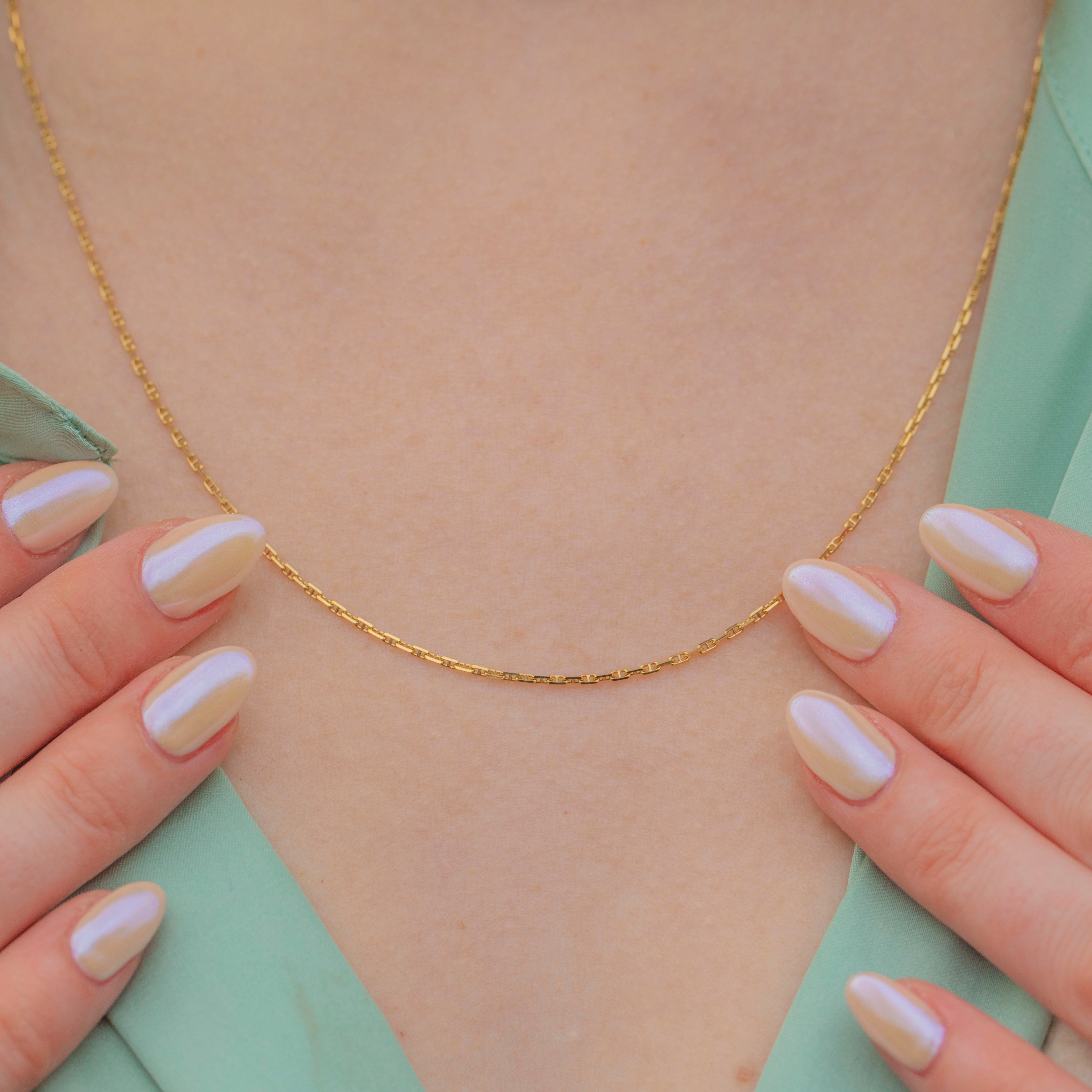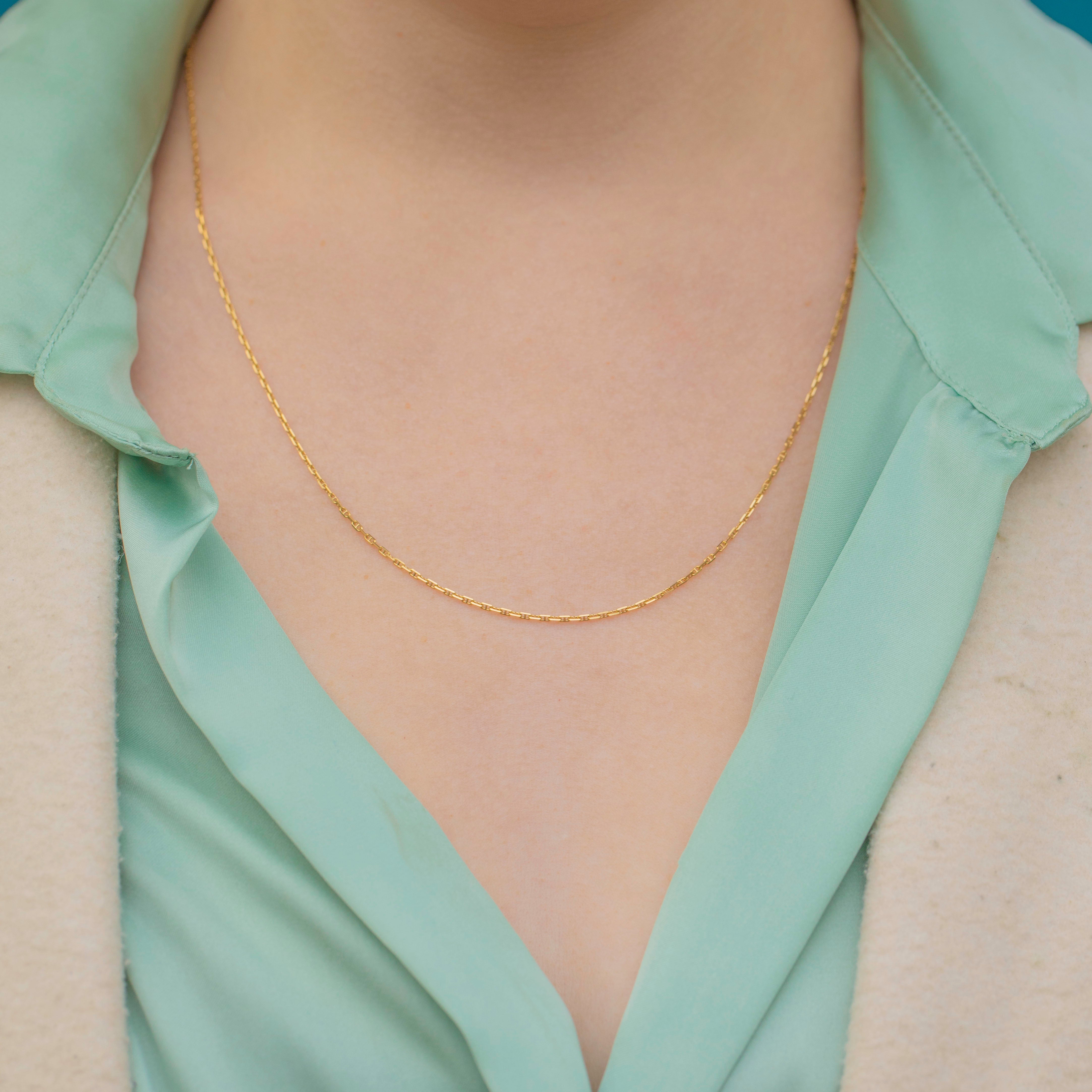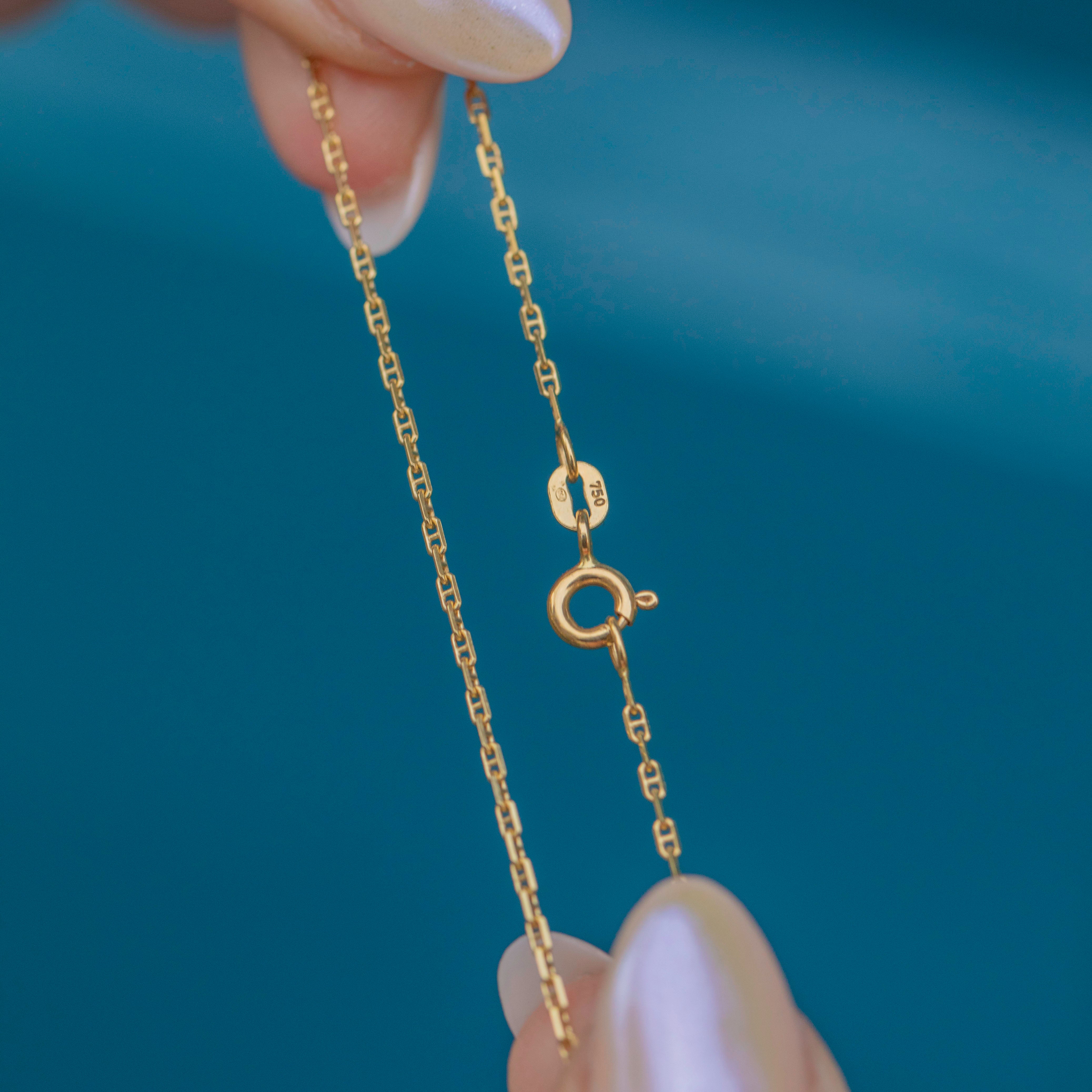 This 18ct Gold mariner chain exudes timeless elegance and will make a versatile addition to your collection! The warm hue of her buttery 18ct Gold will add a touch of sophistication to any outfit, while the classic mariner link design brings texture to any necklace stack.