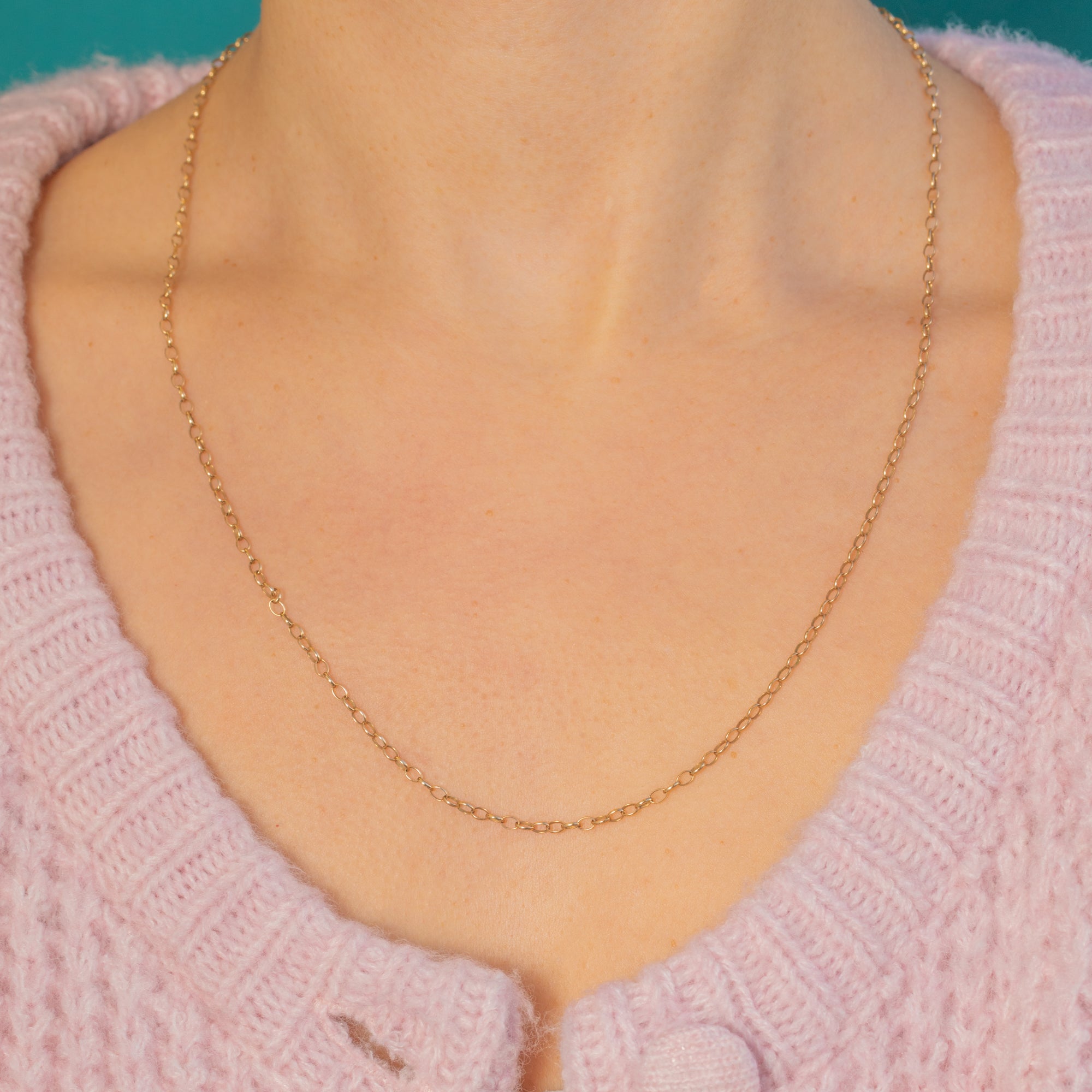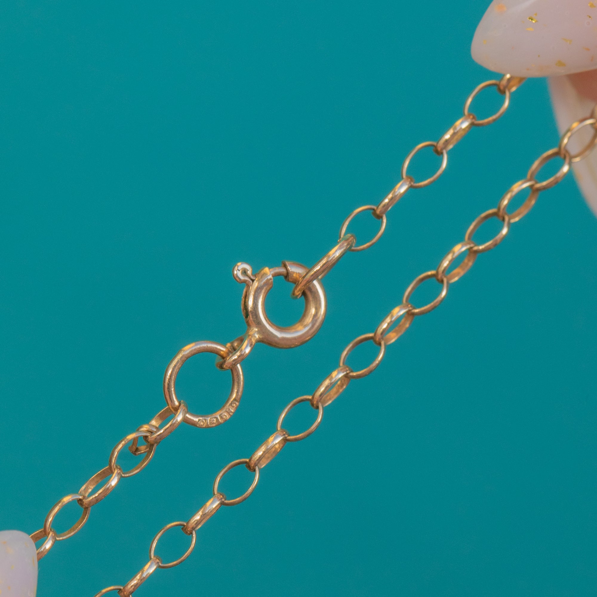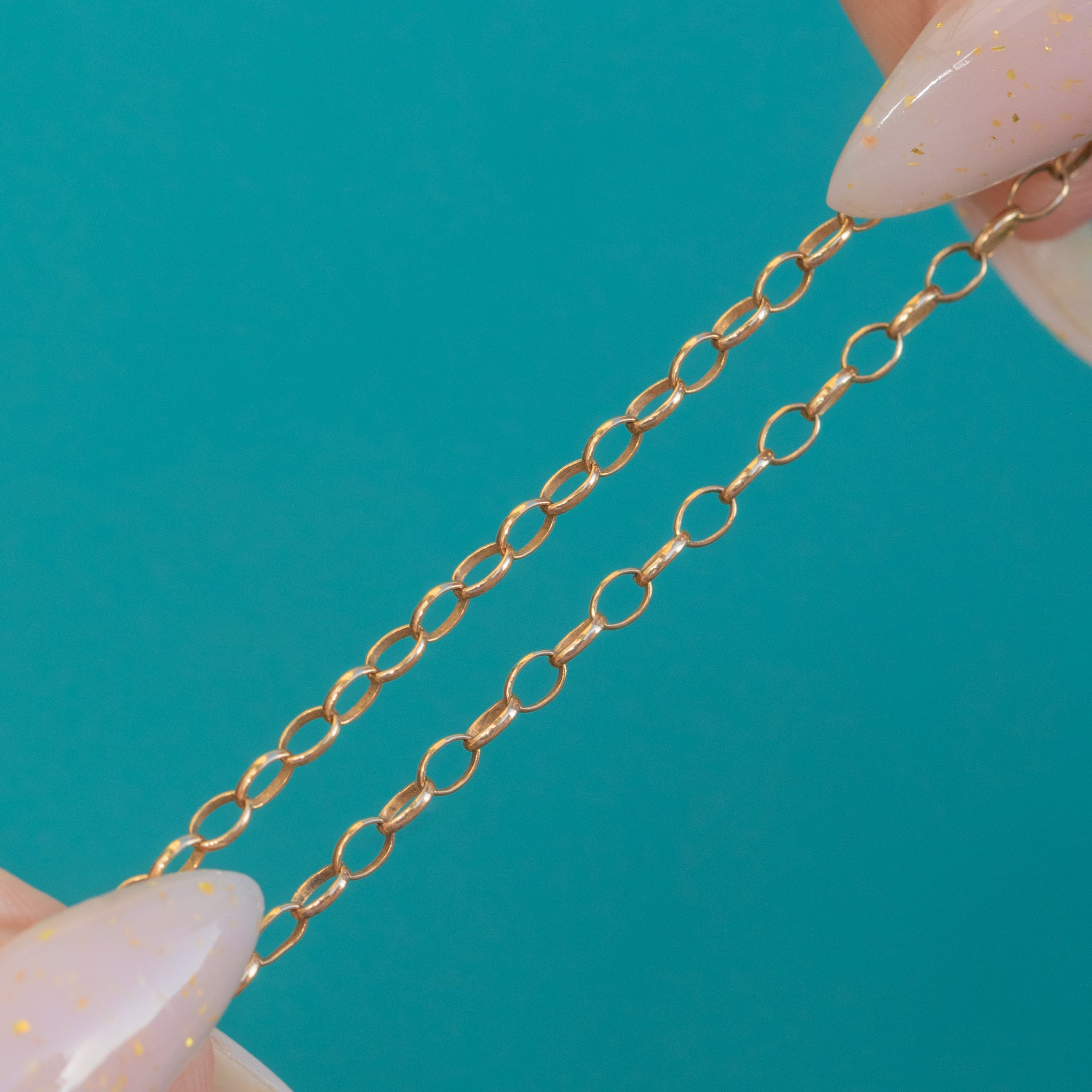 Sleek, refined and endlessly versatile, this vintage 9ct Gold belcher chain is a jewellery box essential. The slim oval links create a fluid, minimalist silhouette that glows with warm Gold, catching the light with every movement.