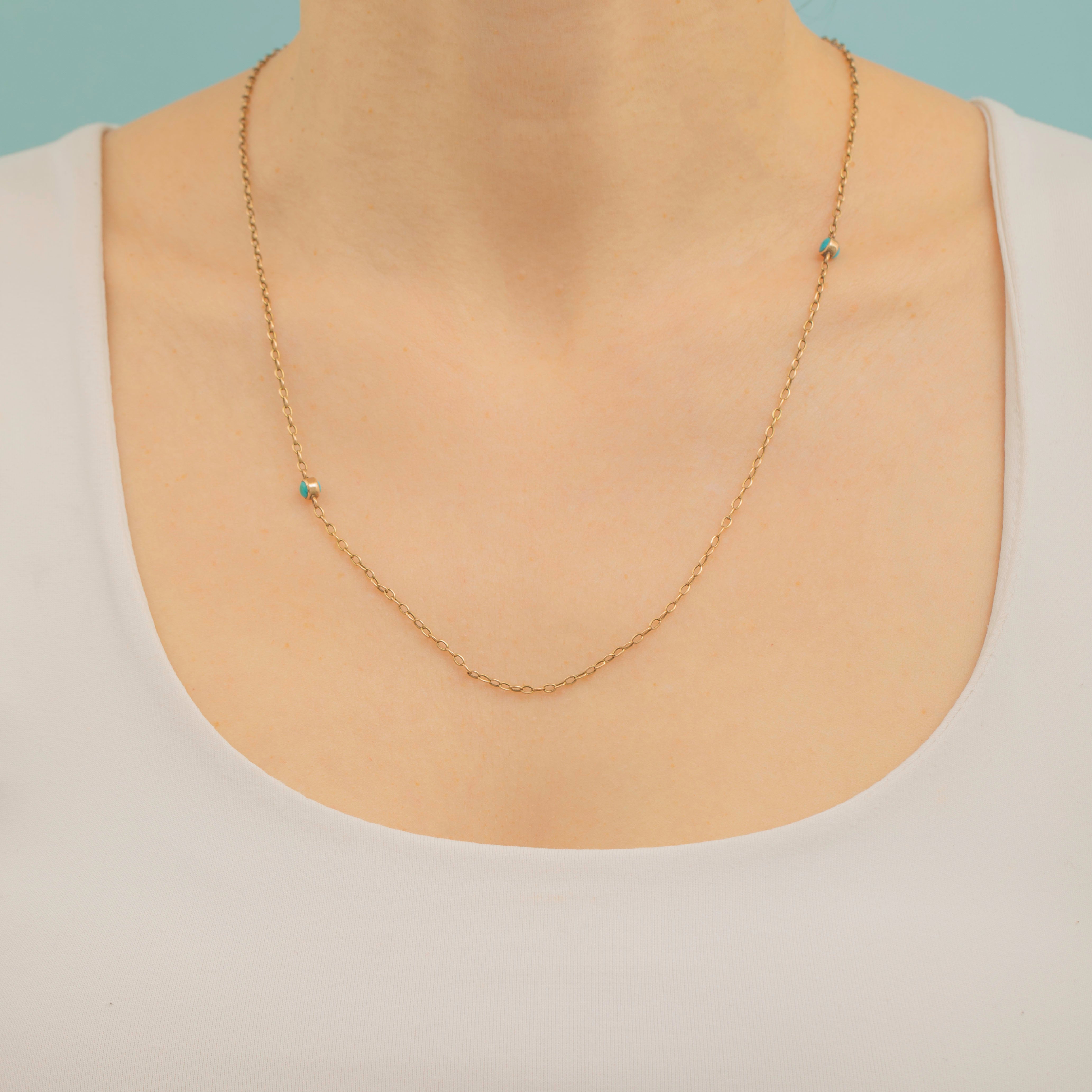 21" Antique 15ct Gold Turquoise Beaded Chain