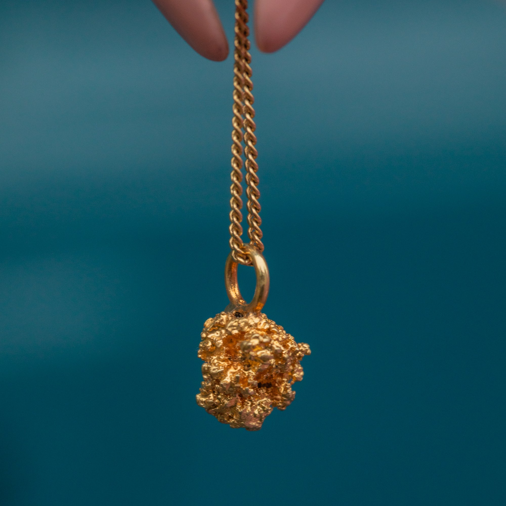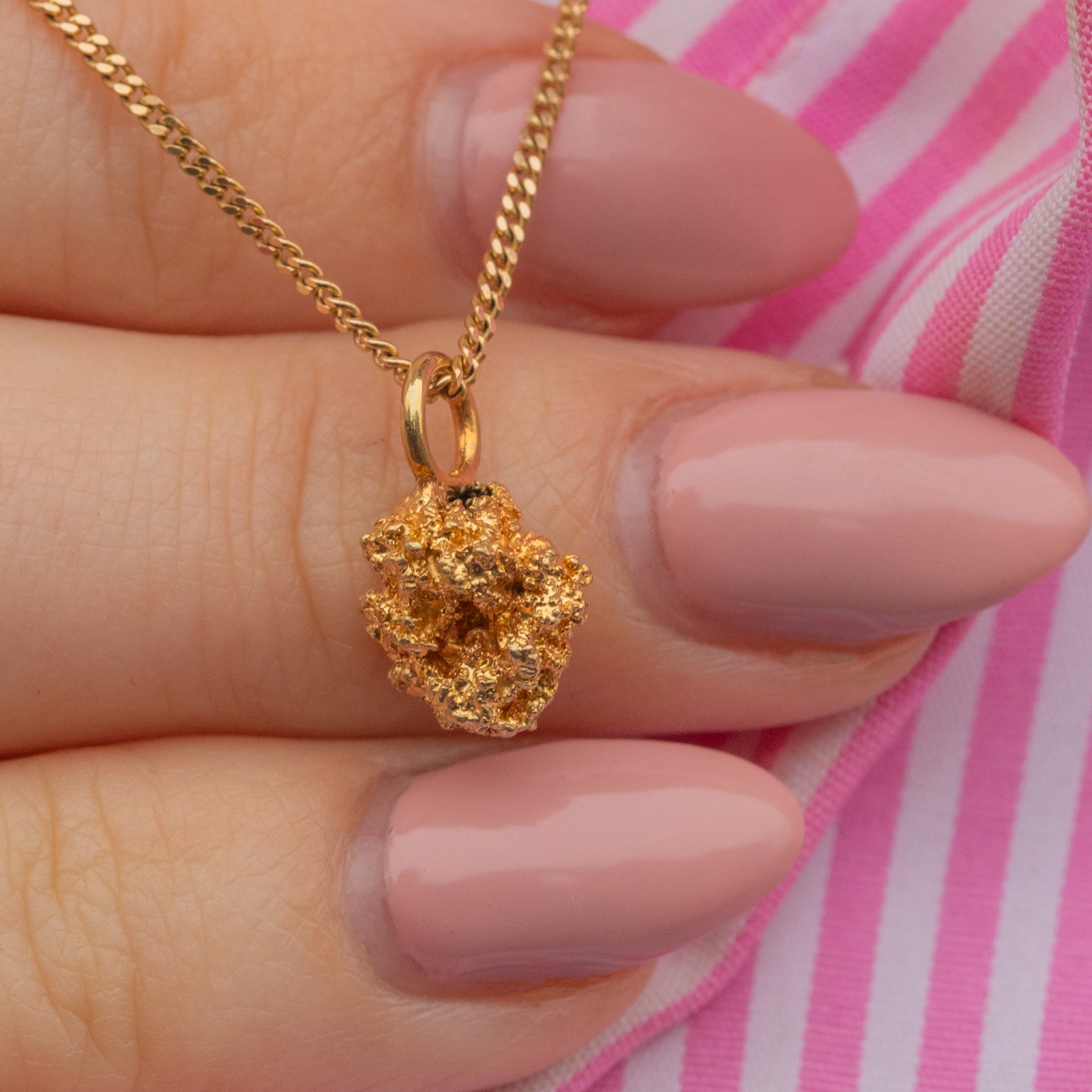 Add some organic form to your neck stack with this 22ct Gold nugget charm! Symbolic of the Californian Gold rush from 1848 to 1855, the Gold nugget is a reminder of the craze caused by the discovery of Gold by James W. Marshall.