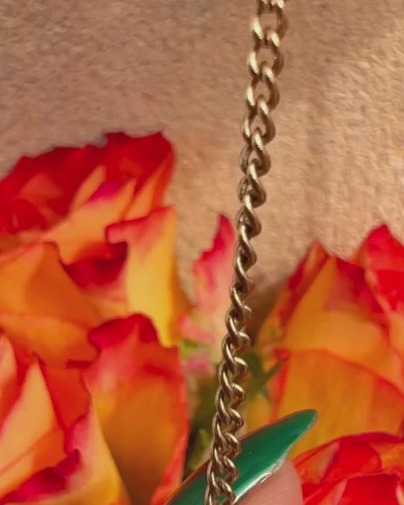 A glorious 23" antique 9ct Gold curb link chain to adorn your neck. This delightful piece has a gorgeous length, so she can be layered up or worn alone to add a subtle flash of Gold to any attire.