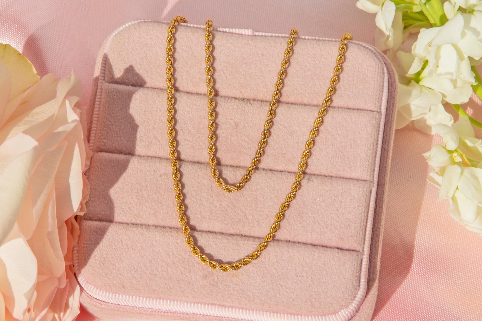 Akin to delicately interwoven rope, this antique rope chain exudes high-quality craftsmanship and sartorial elegance. Her 26 grams of 9ct Gold radiates warmth as her richly saturated tones adorn your neckline.
