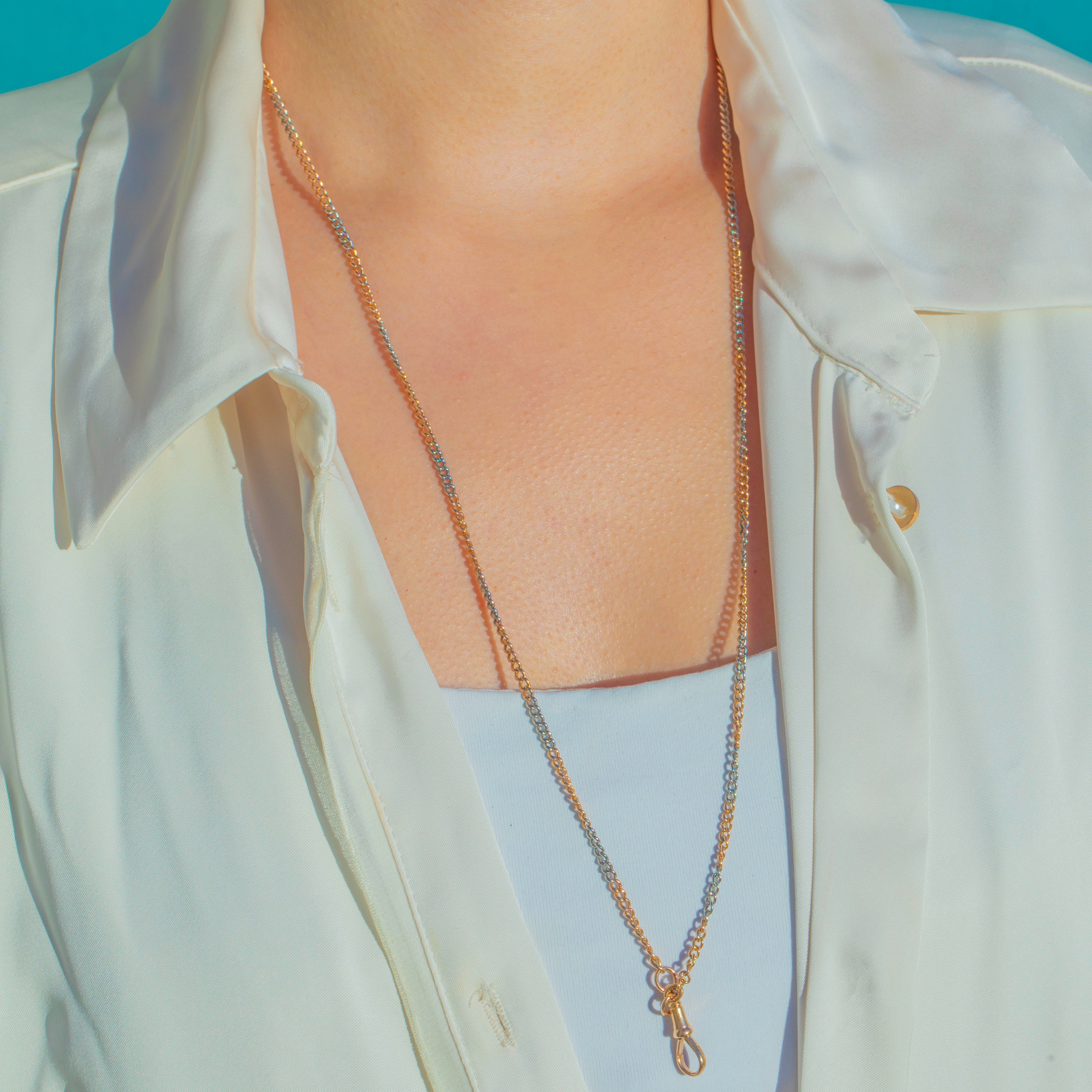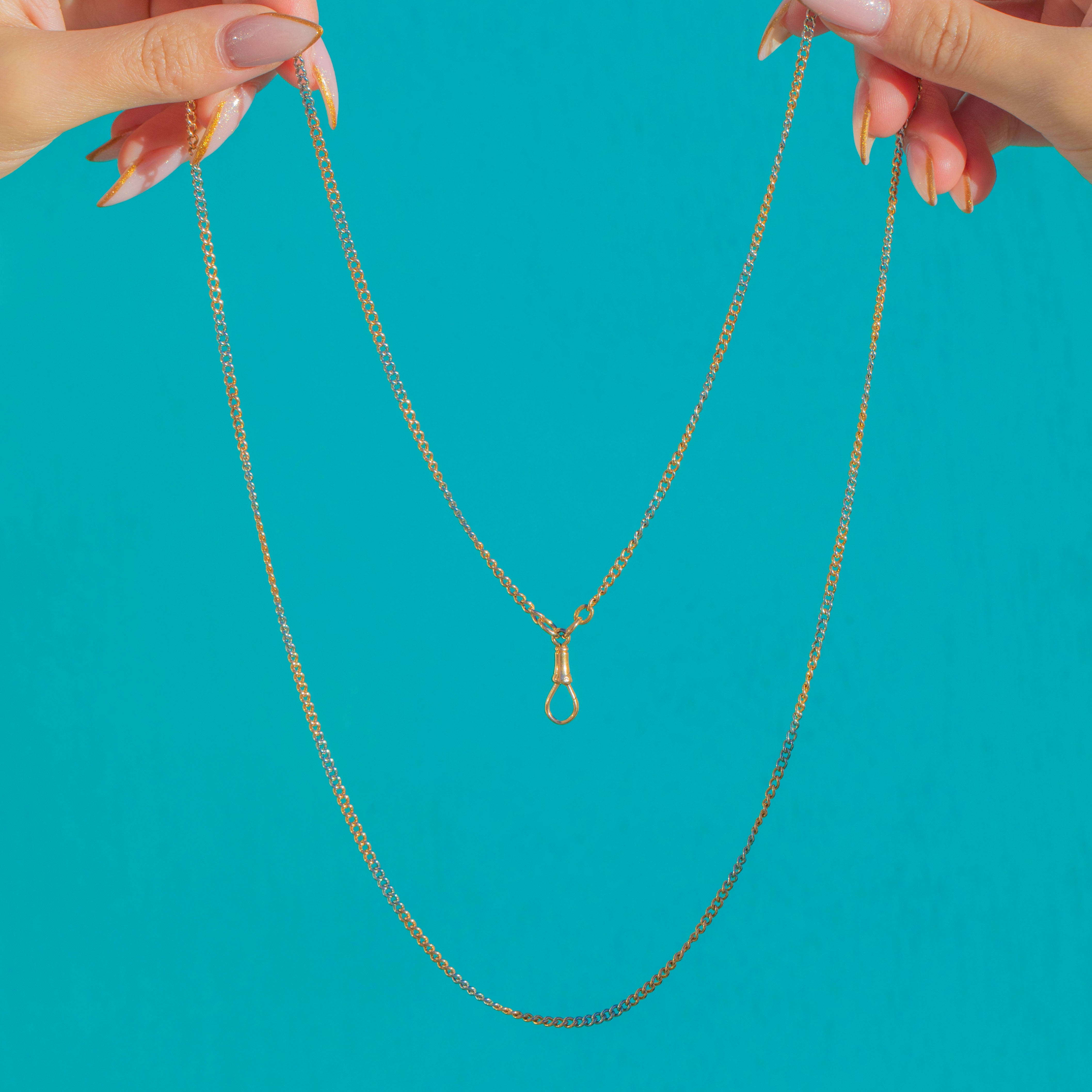 30" Antique 18ct Gold Two-Tone Chain with Dog Clip Charm Holder