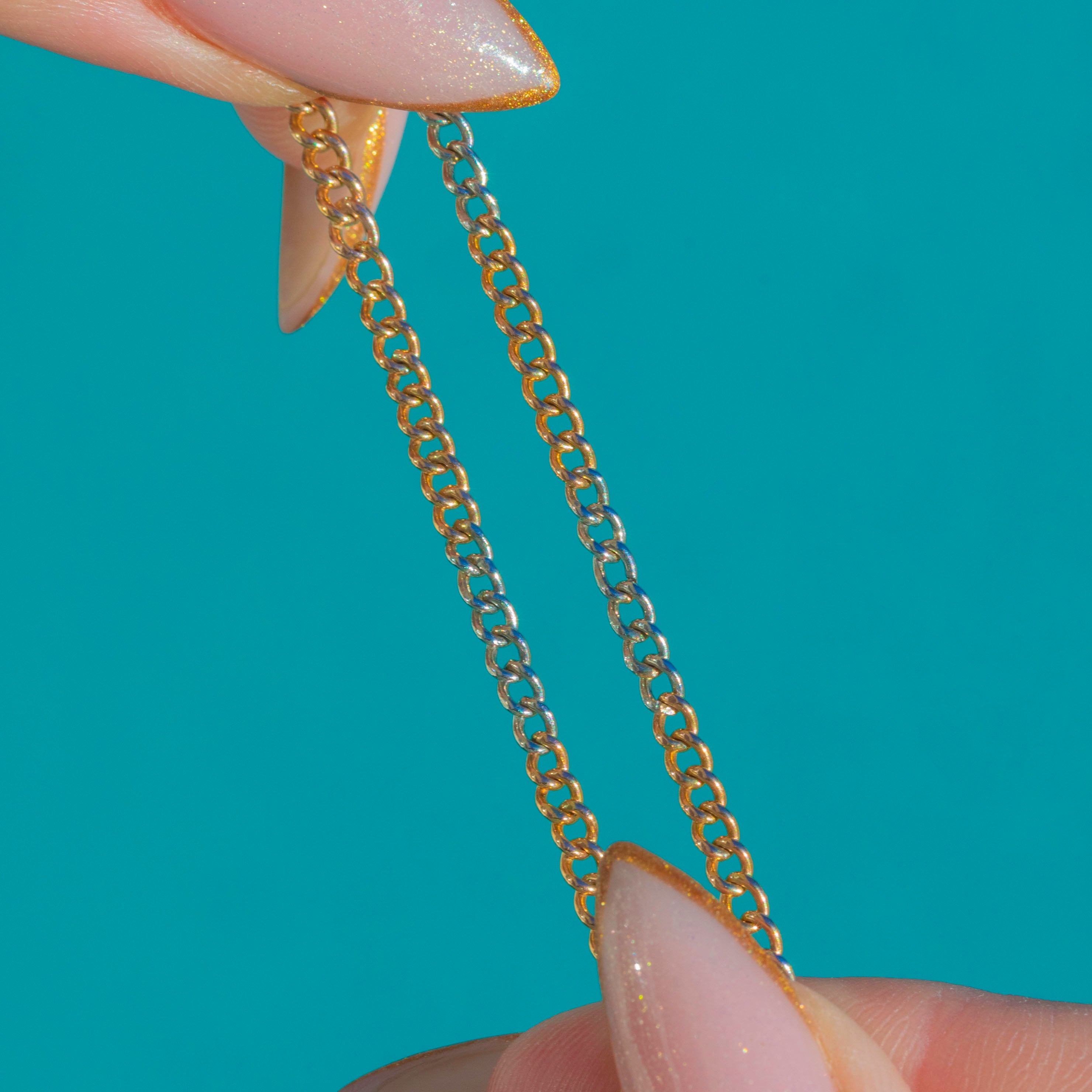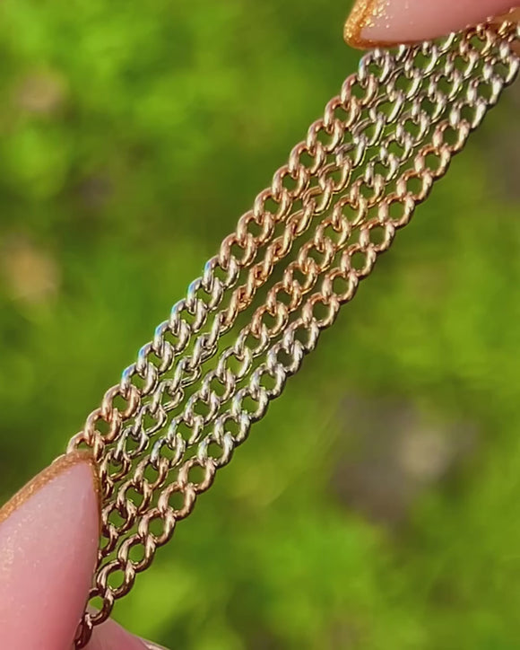 This 18ct Gold two-tone chain may be antique, but she's a sleek and modern way to wear your favourite charms and pendants! Circa 1900, these Victorian links alternate between warm Yellow Gold and cooler White Gold tones, giving it a subtle contrast that looks stylish layered or worn solo.
