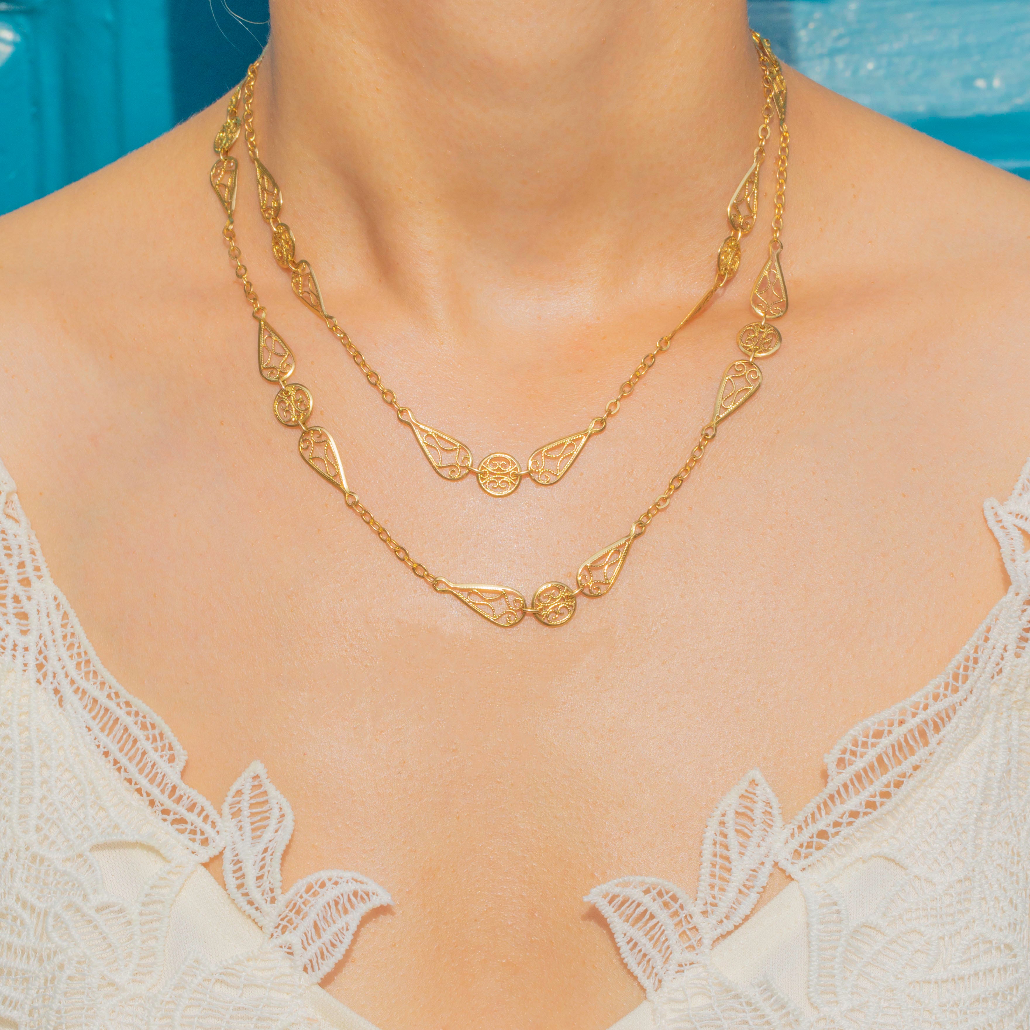 This French 18ct Gold filigree necklace is a beautiful example of Belle Époque design, crafted in solid 18ct Gold.