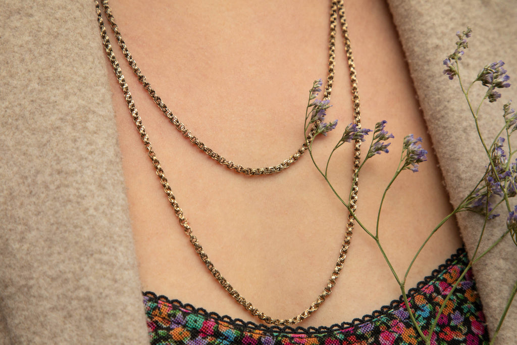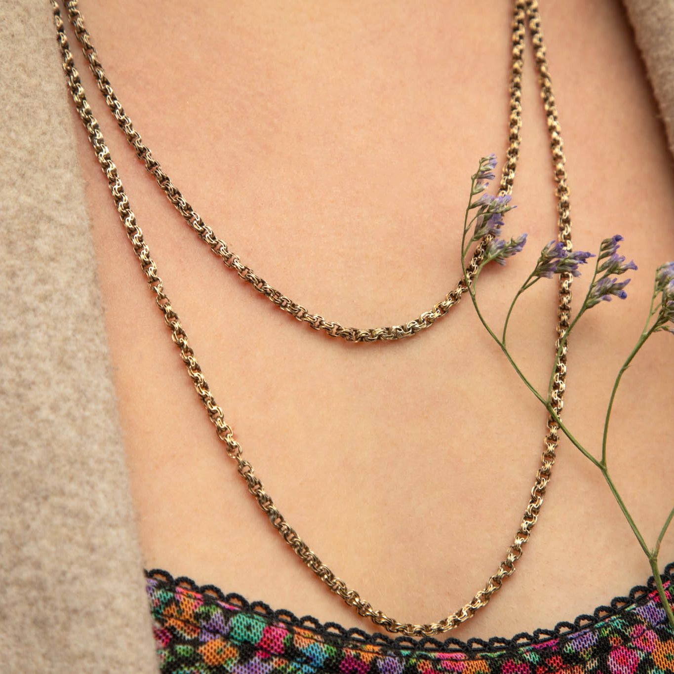 This makes her such a versatile item that you can either wear at full length or looped around a couple of times. Such a piece is a must-have for your antique jewellery collection. What a timeless treasure!