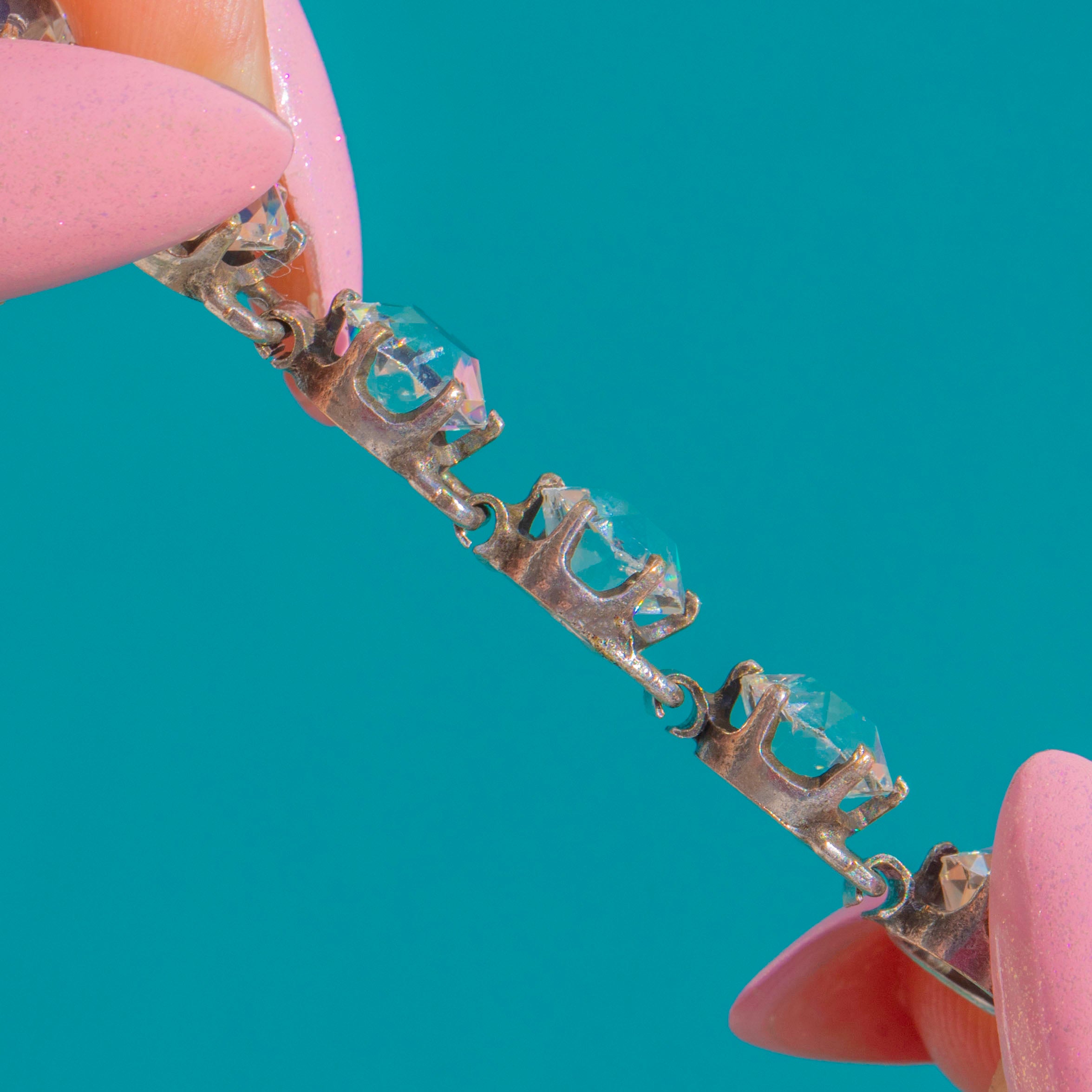 7" Art Deco Silver White Paste Riviere Bracelet