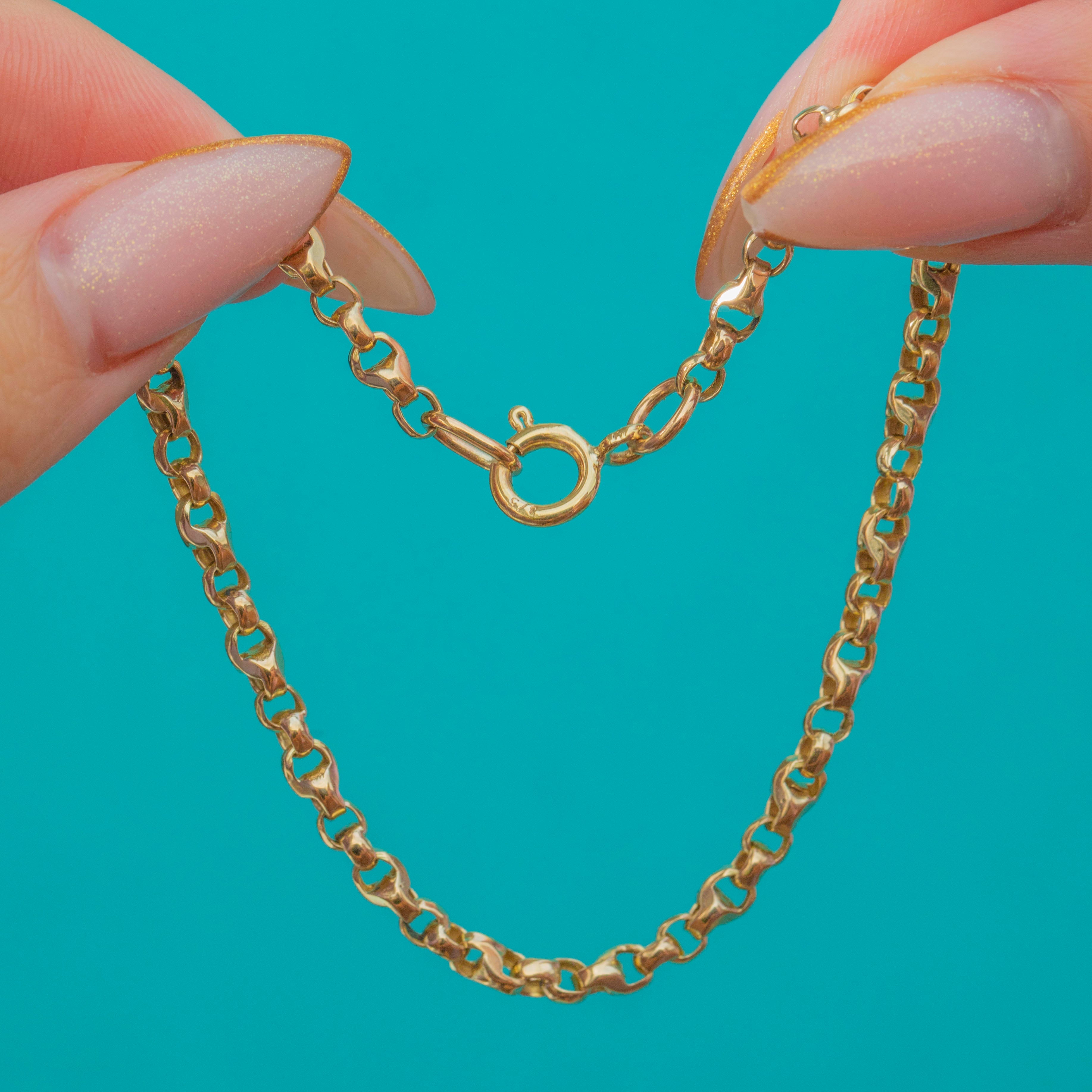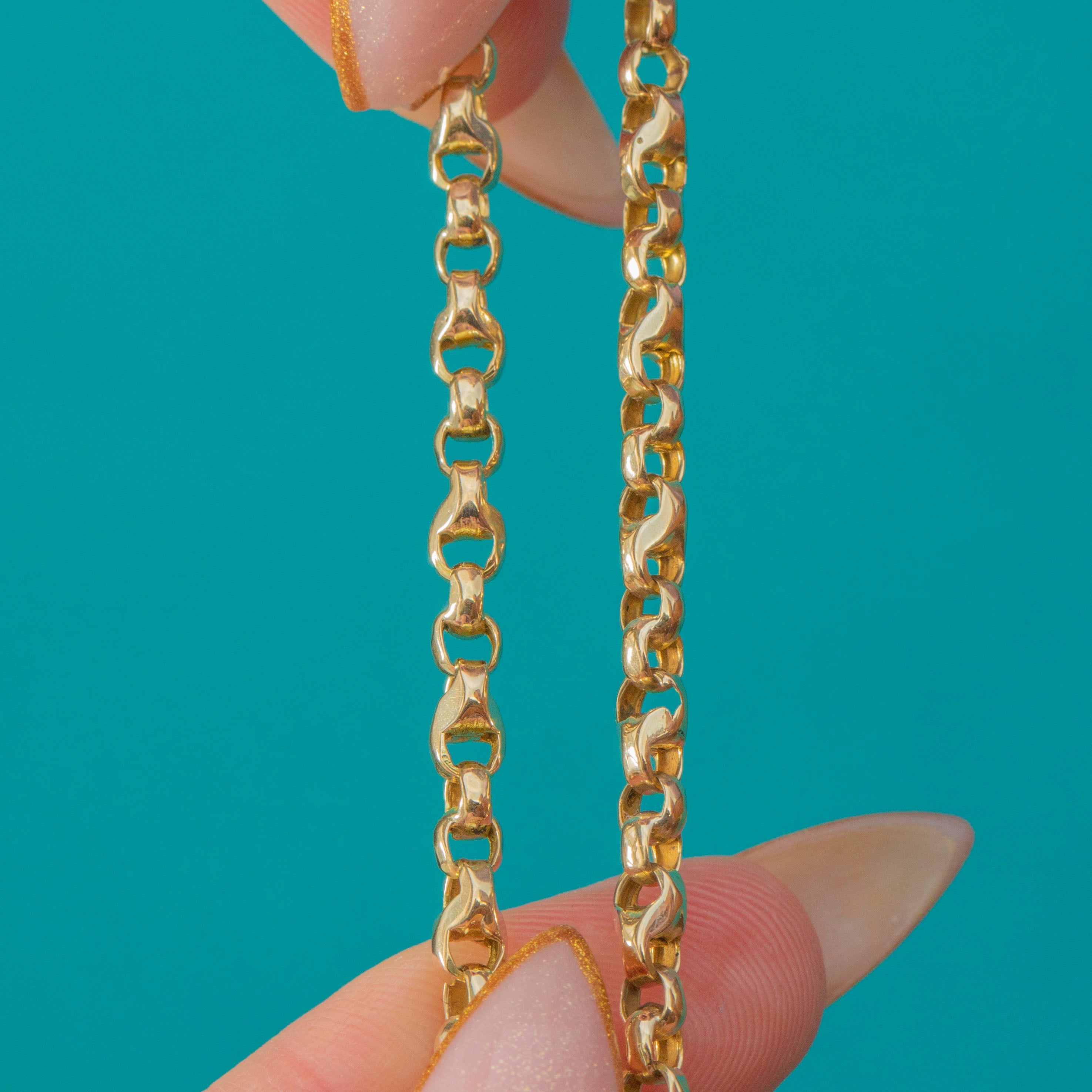 This charming Victorian 9ct Gold bracelet combines two classic link styles in one elegant piece, with faceted half-belcher links flowing into pretty tulip-style links. The alternating design catches the light beautifully on the wrist, giving you a lovely sparkle and texture without feeling too fussy.