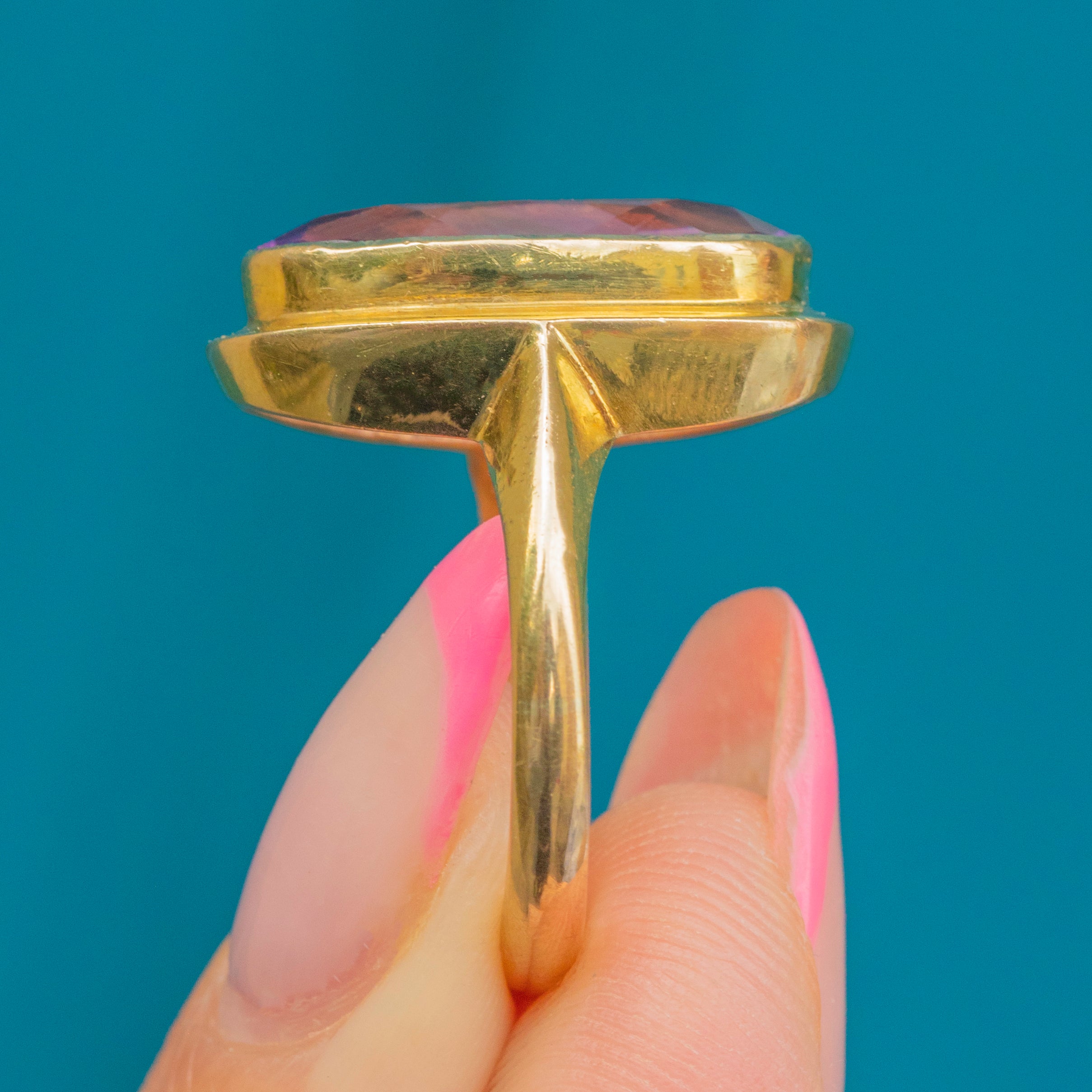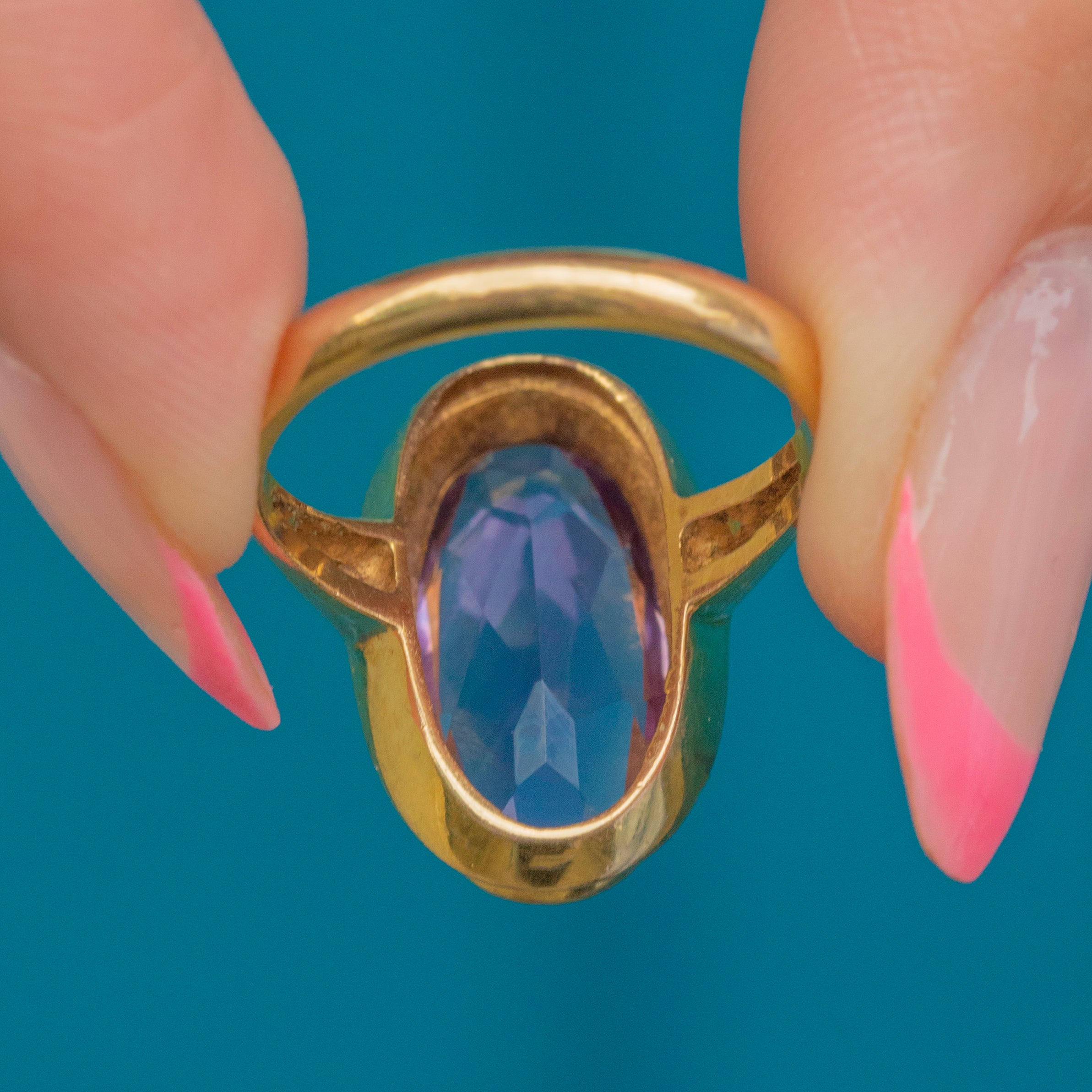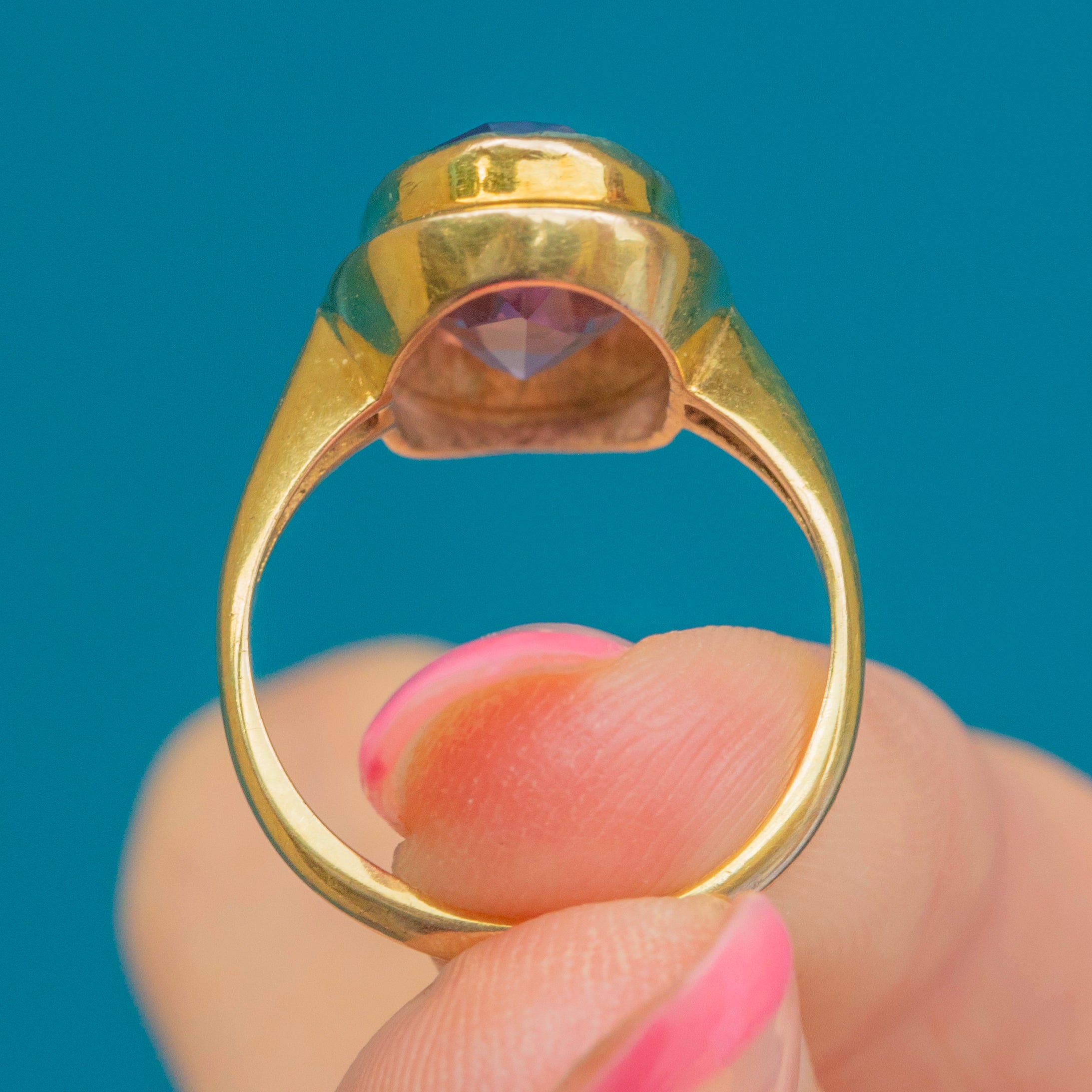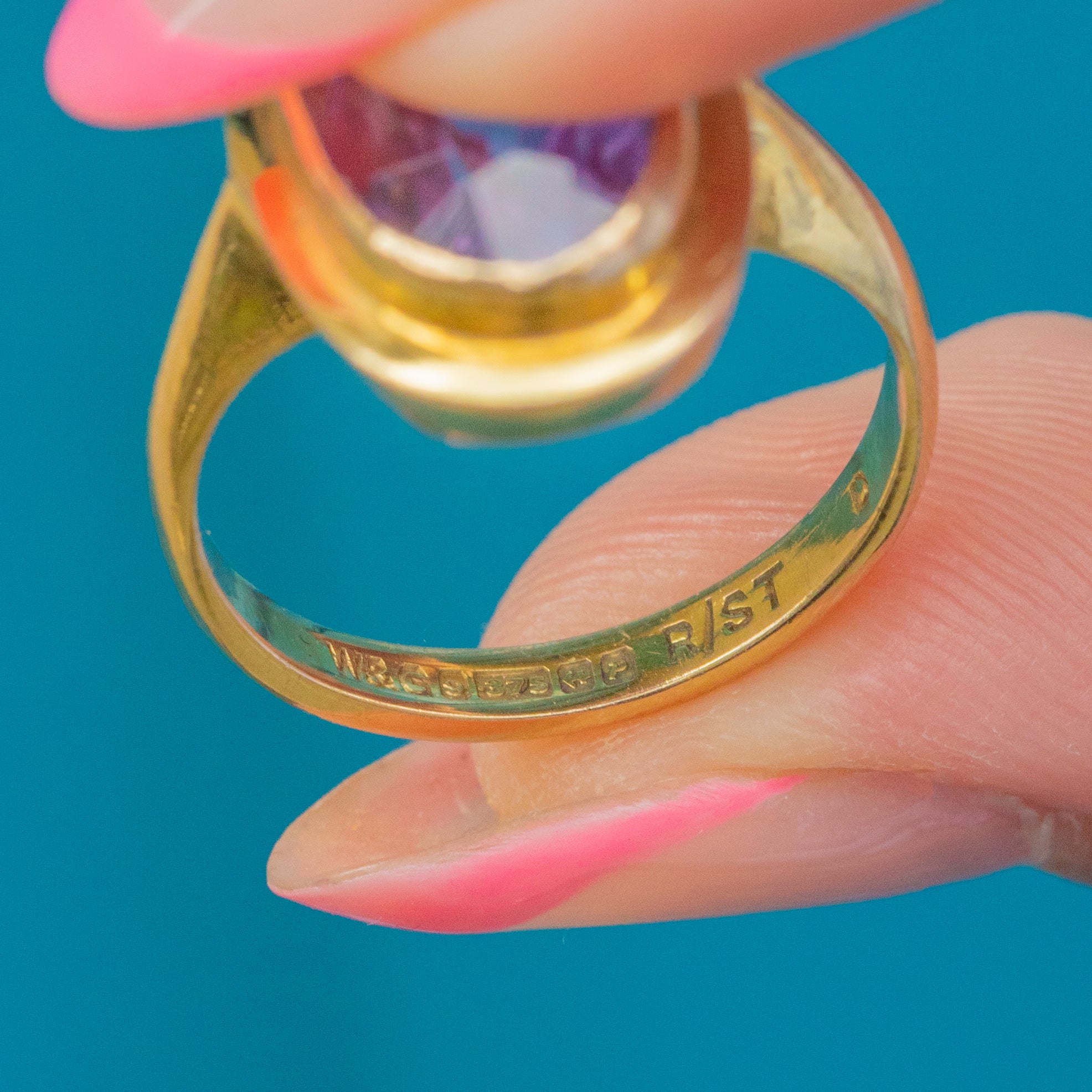 With a 9mm ring profile, her Amethyst sits raised upon your hand, perfect for that single statement ring to accompany any outfit. With a sleek Gold band to finish, this vintage Amethyst ring will bestow splendour on its wearer!