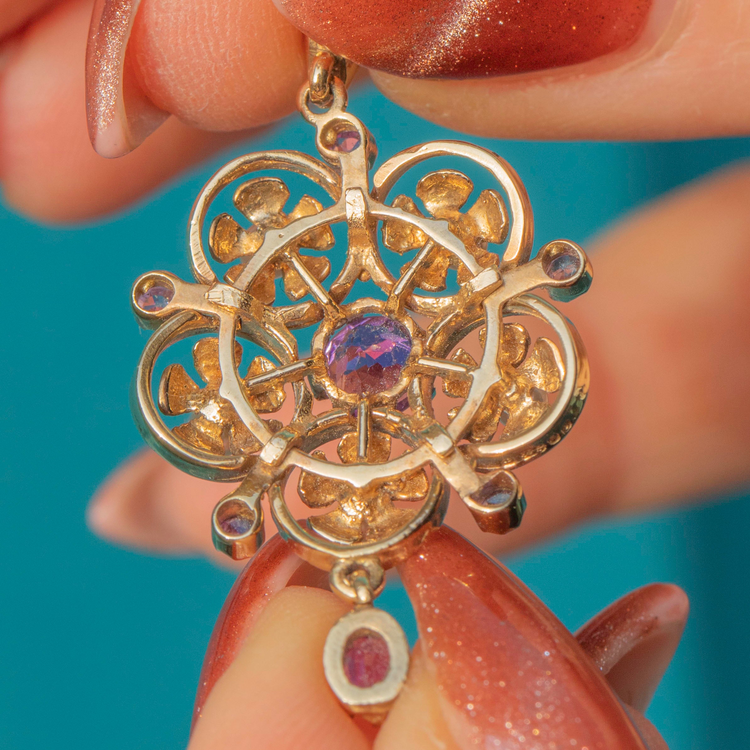 The Amethysts boast pretty lavender and lilac hues, with crisp facets that shimmer in the light. With so much wear potential and an exquisitely formed Pearl-topped bale, this mid-century vintage pendant will look resplendent taking centre stage across your décolletage!