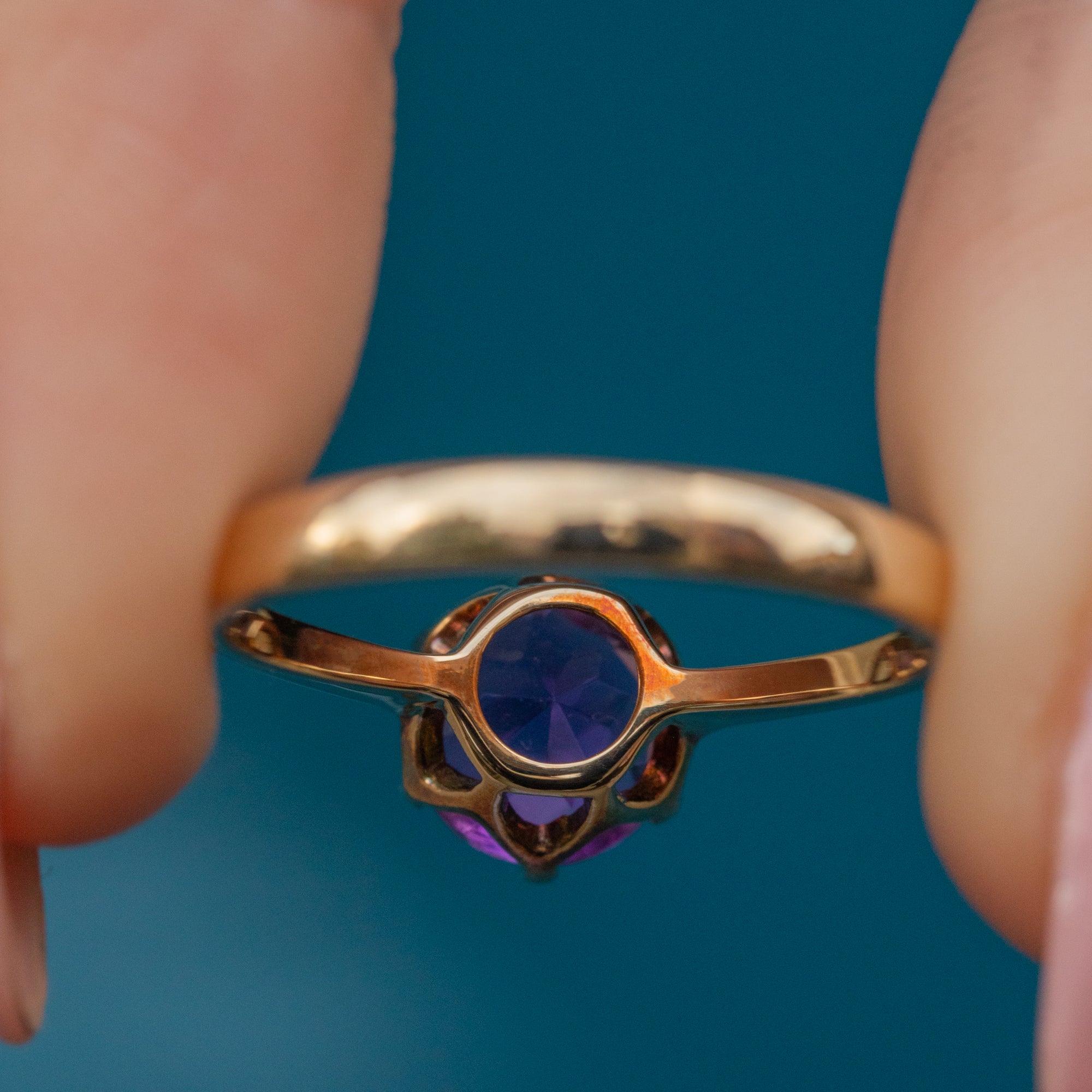 With a refined design and elegantly formed shank crafted from solid 9ct Gold, this vintage Amethyst ring is versatile and can be worn as a standalone piece or incorporated into a ring stack.