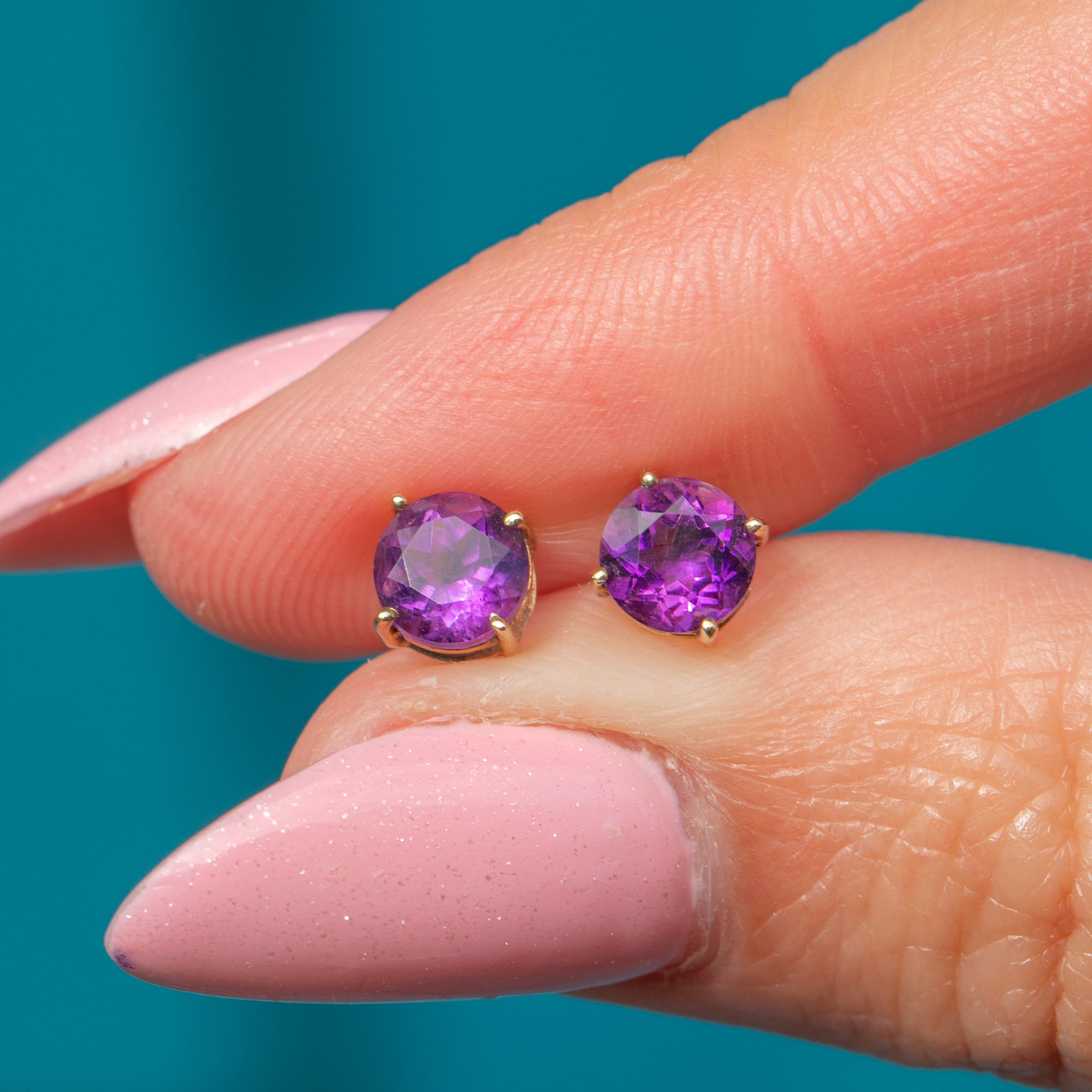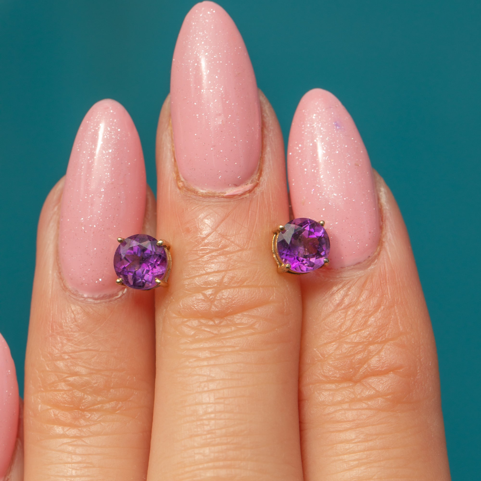 The Amethysts exude such vibrance, her purple hues gleam in every light. These Gold studs are the perfect set of staple earrings and will elevate your jewellery collection!