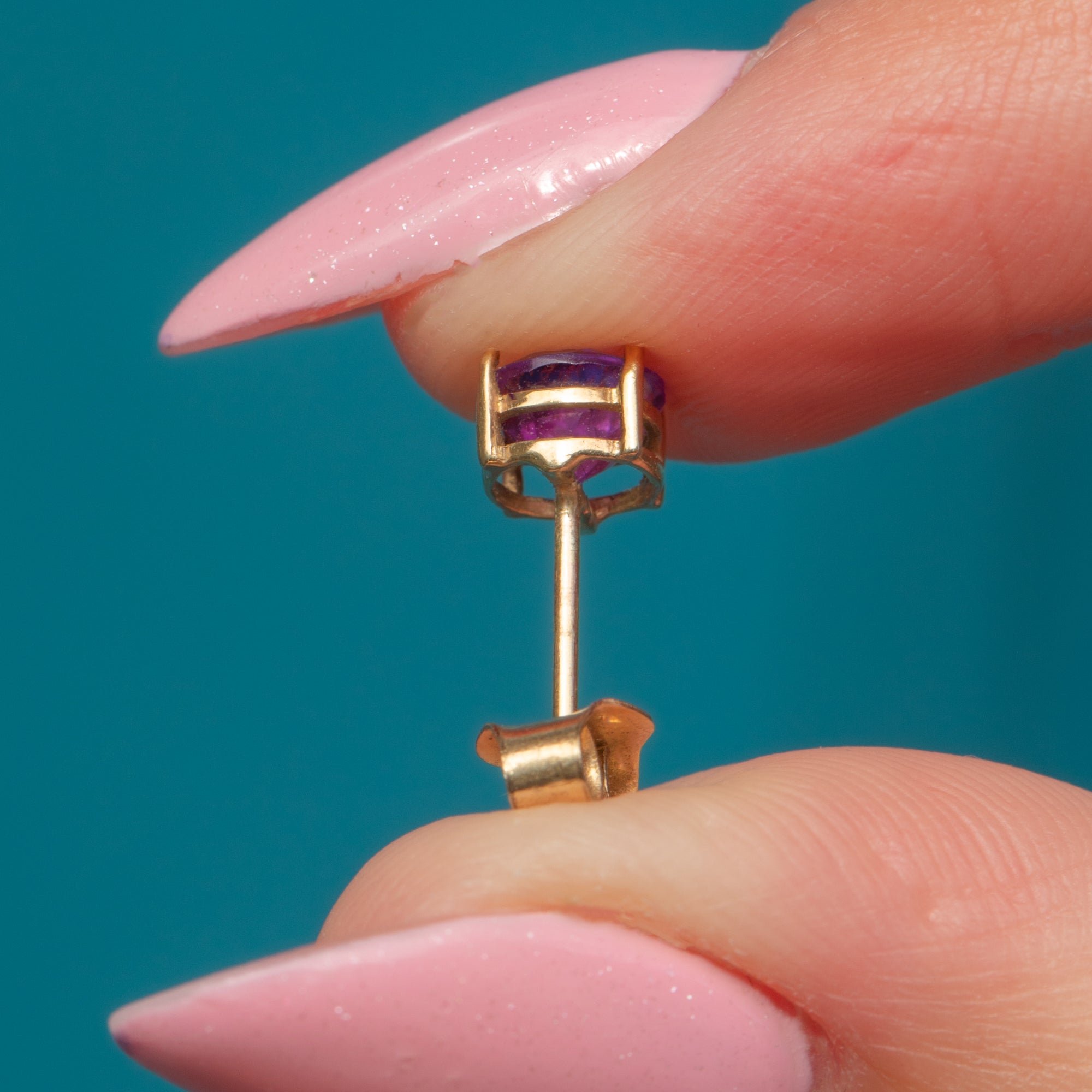 EXCELLENT: These 9ct Gold Amethyst stud earrings are in excellent condition overall! The Amethysts are securely set in their settings and the 9ct Gold is smooth and radiant. The butterfly backs are snug fitting, so you can wear these Amethyst earrings with the utmost confidence!