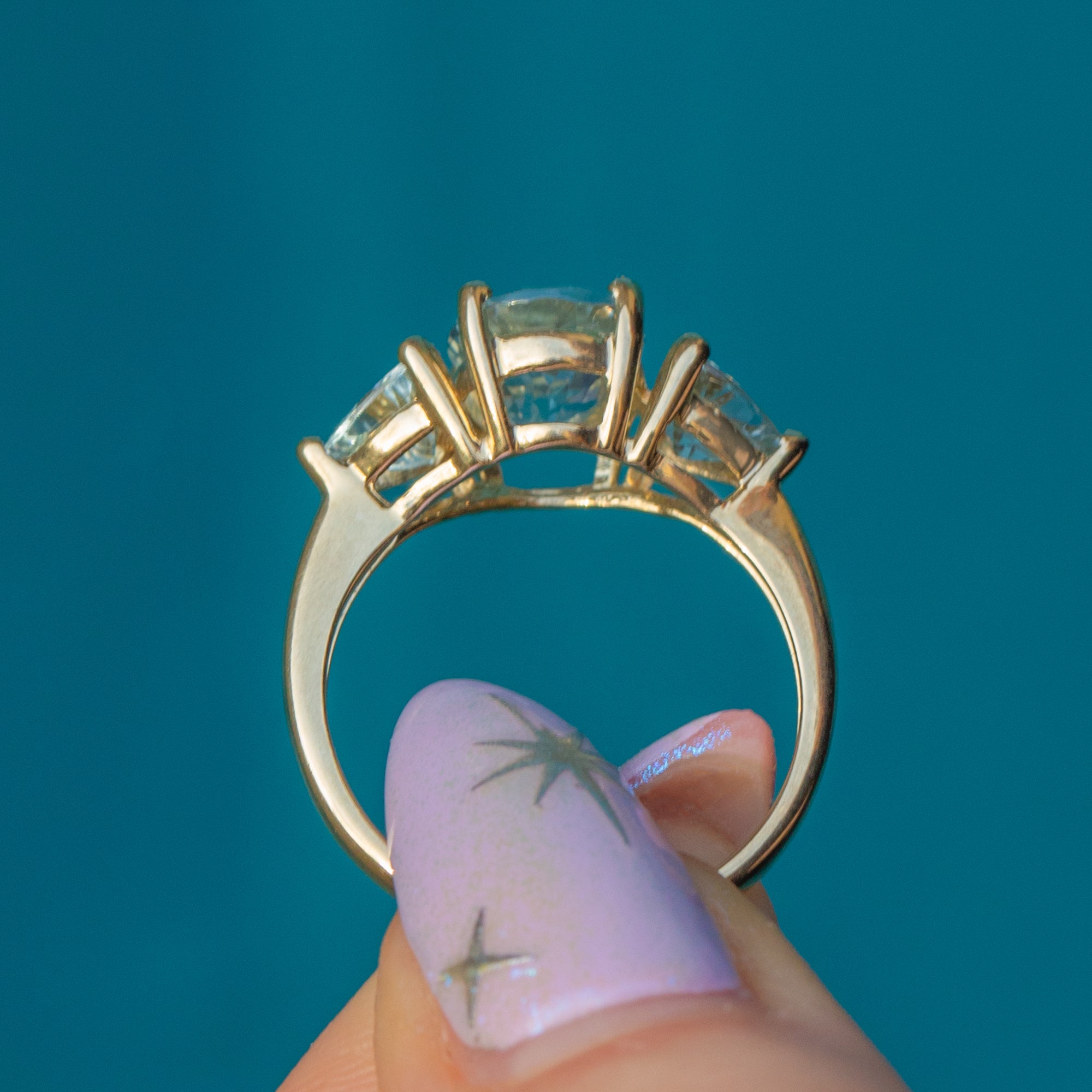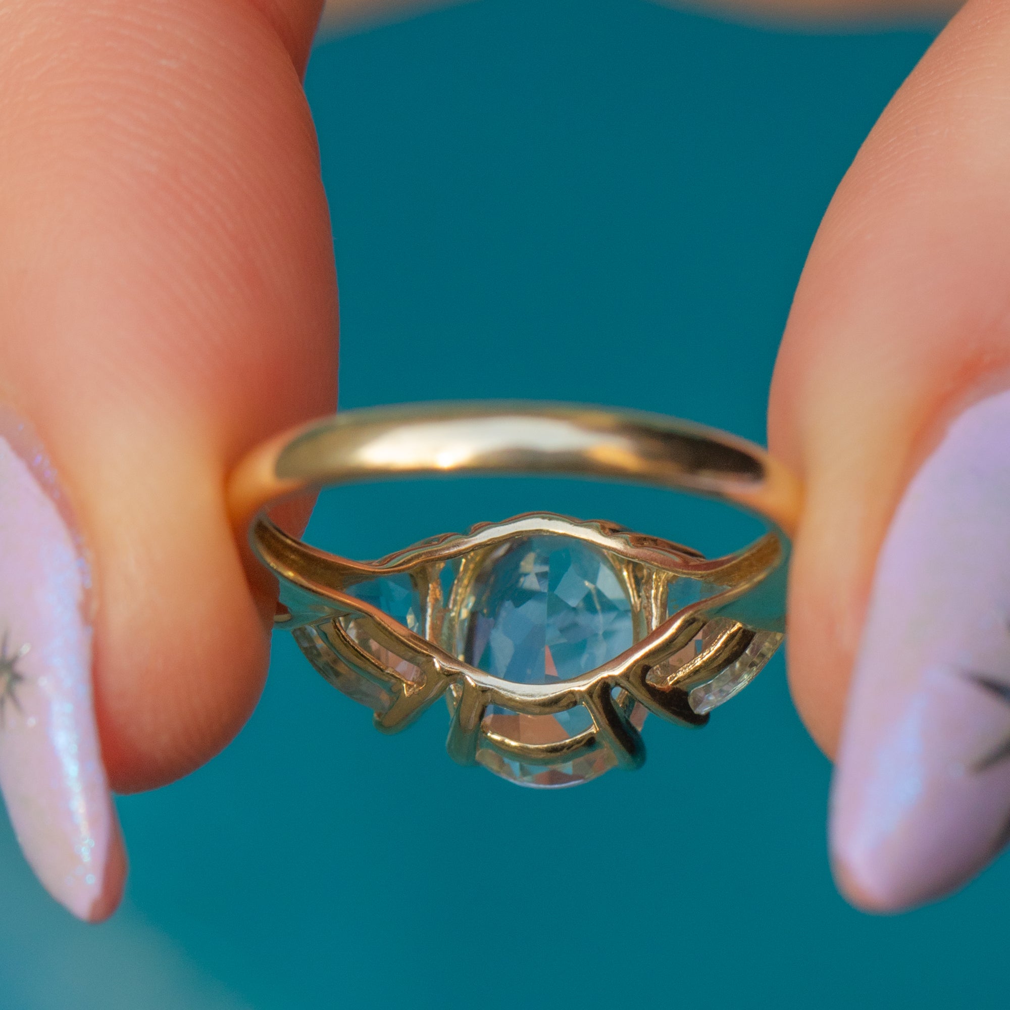 The 9ct Gold band is slender and smooth, complementing the gemstones with its warm, polished finish. Graceful and refined, this vintage ring exudes elegance!