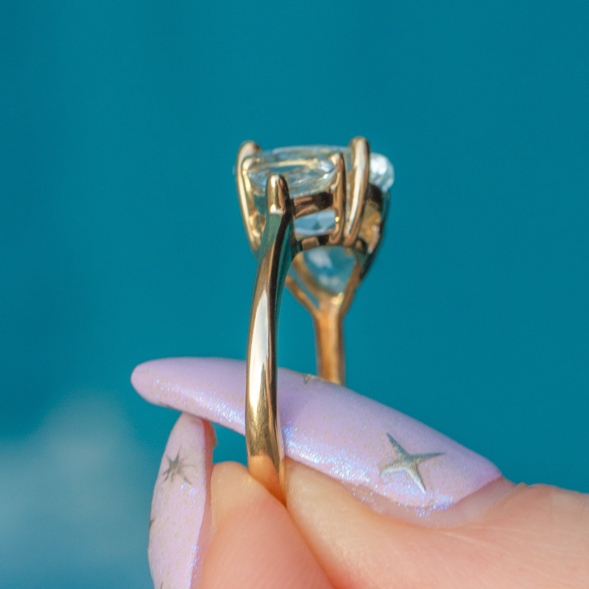 Aquamarine on shoulders is 5mm long x 4.5mm wide, weighing approx. 0.30ct combined)