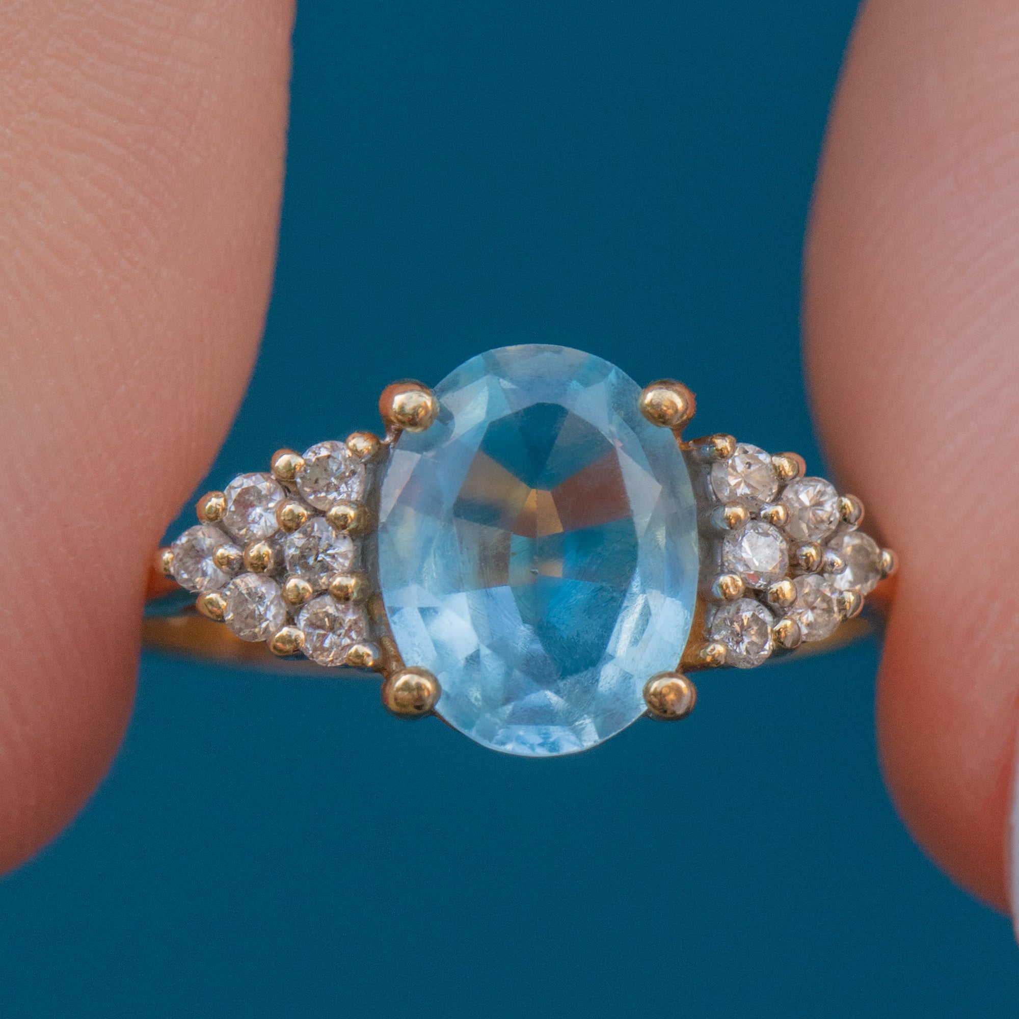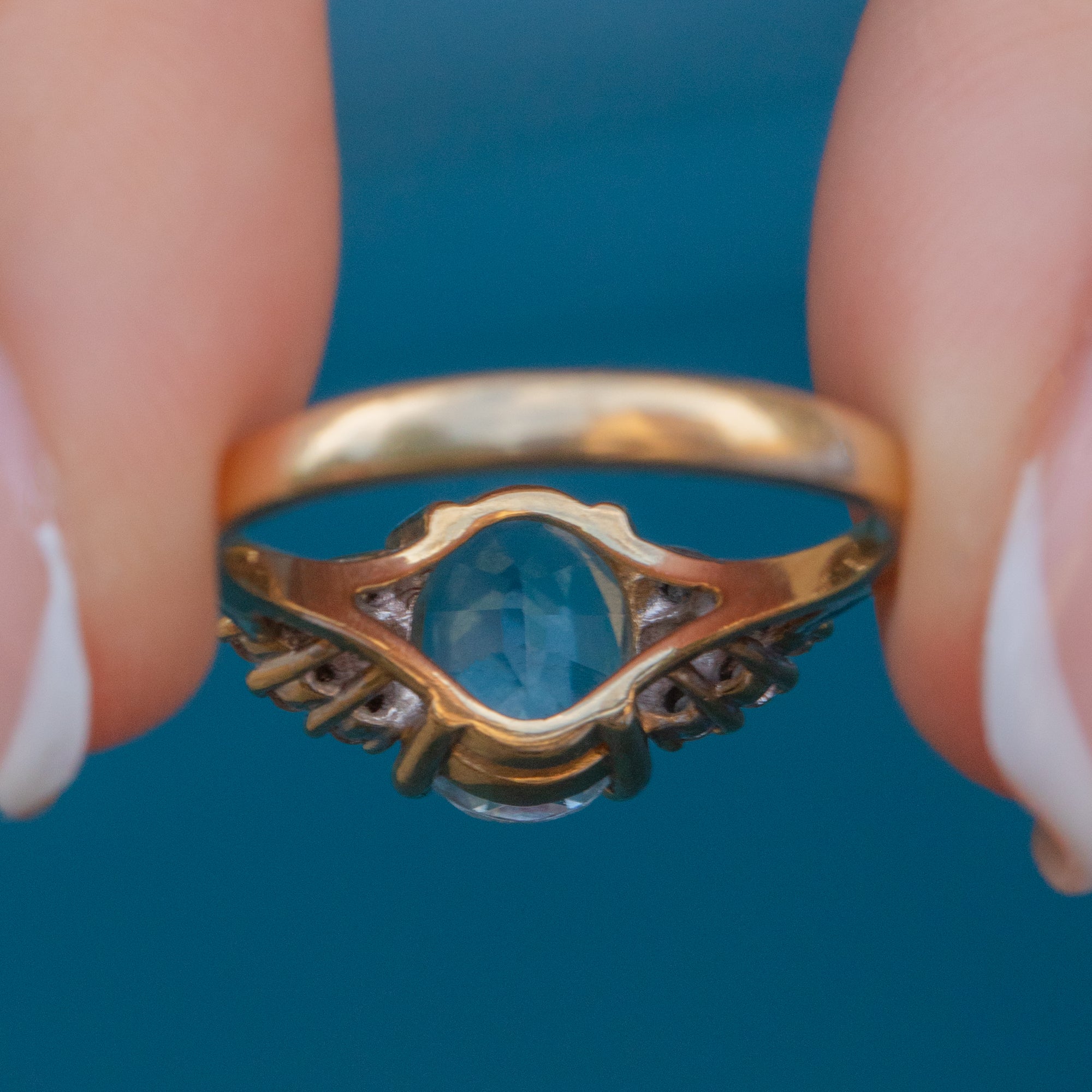 MATERIALS: Tests as 9ct Gold, Blue Topaz (0.80ct), Diamond