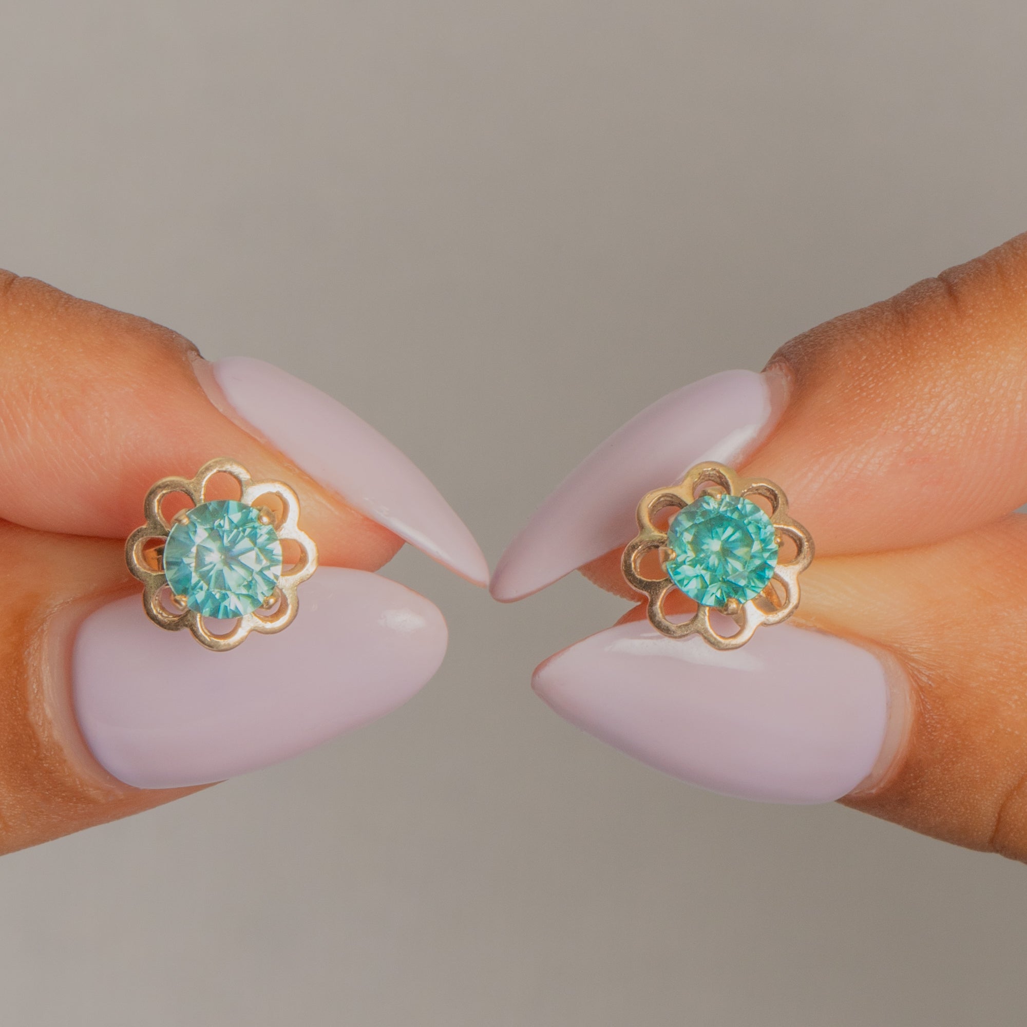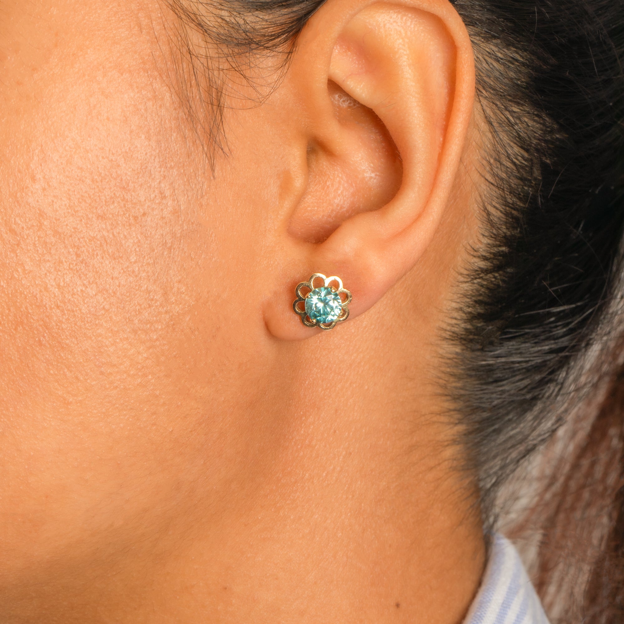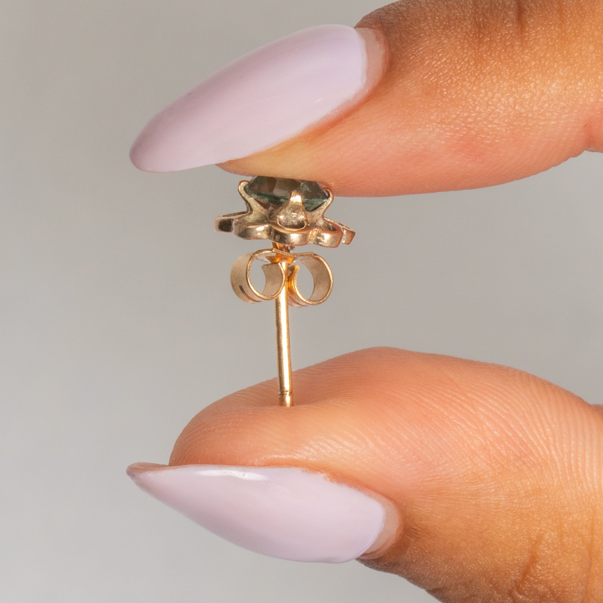The petal outlines of these Edwardian stud earrings are crafted from buttery 9ct Gold, effortlessly arching around the blue Topaz centre. A simple antique stud earring like these is perfect for stacking amongst your other Gold goodies!