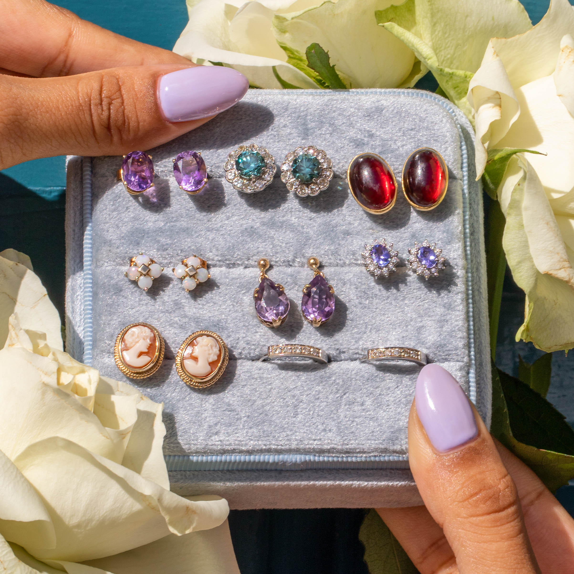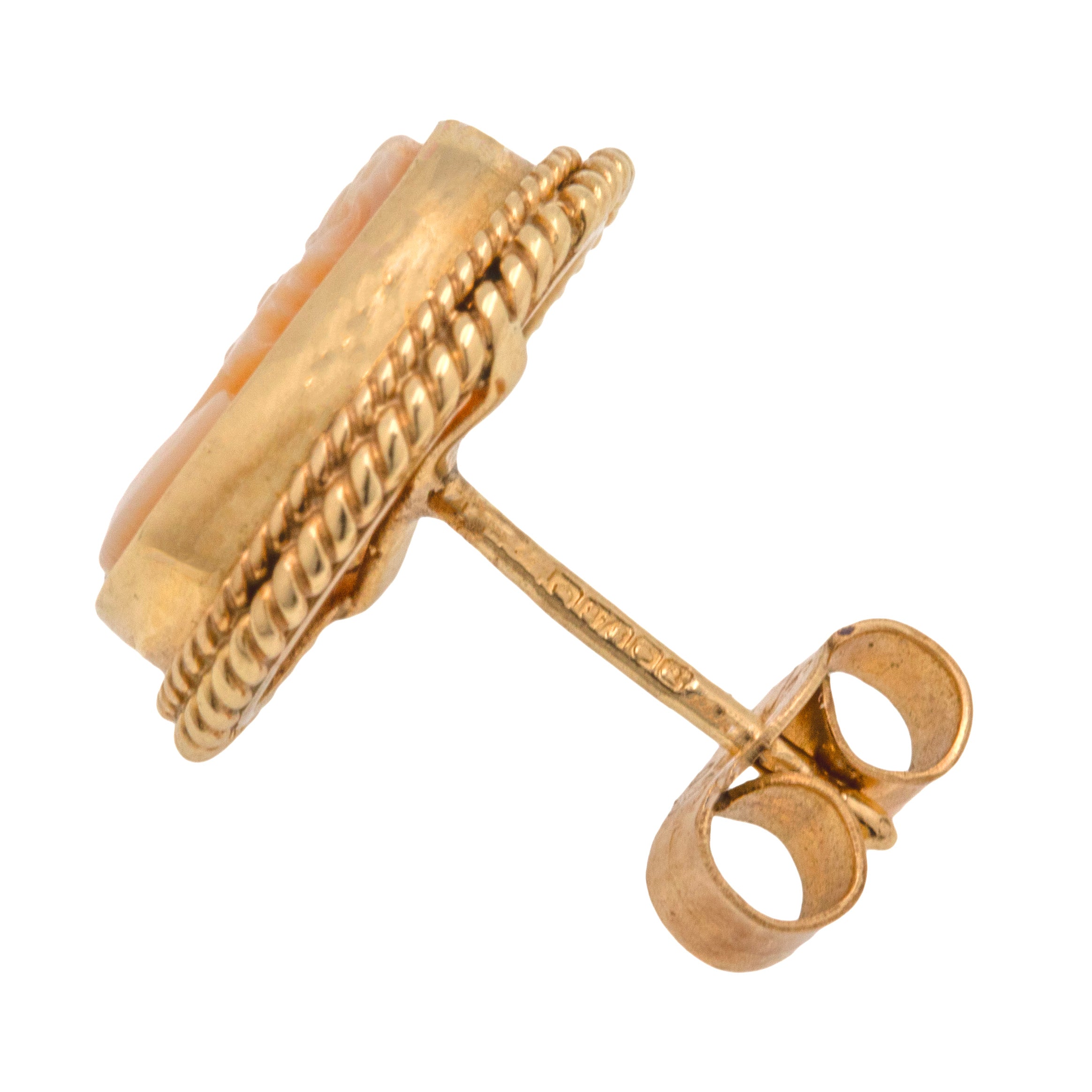 If you're a lover of cameo brooches, you will be swooning over these 9ct Gold Cameo stud earrings! Expertly carved portraits sit at the forefront, illuminated by the peachy tones in their background; we believe the portraits are of the greek God Apollo.