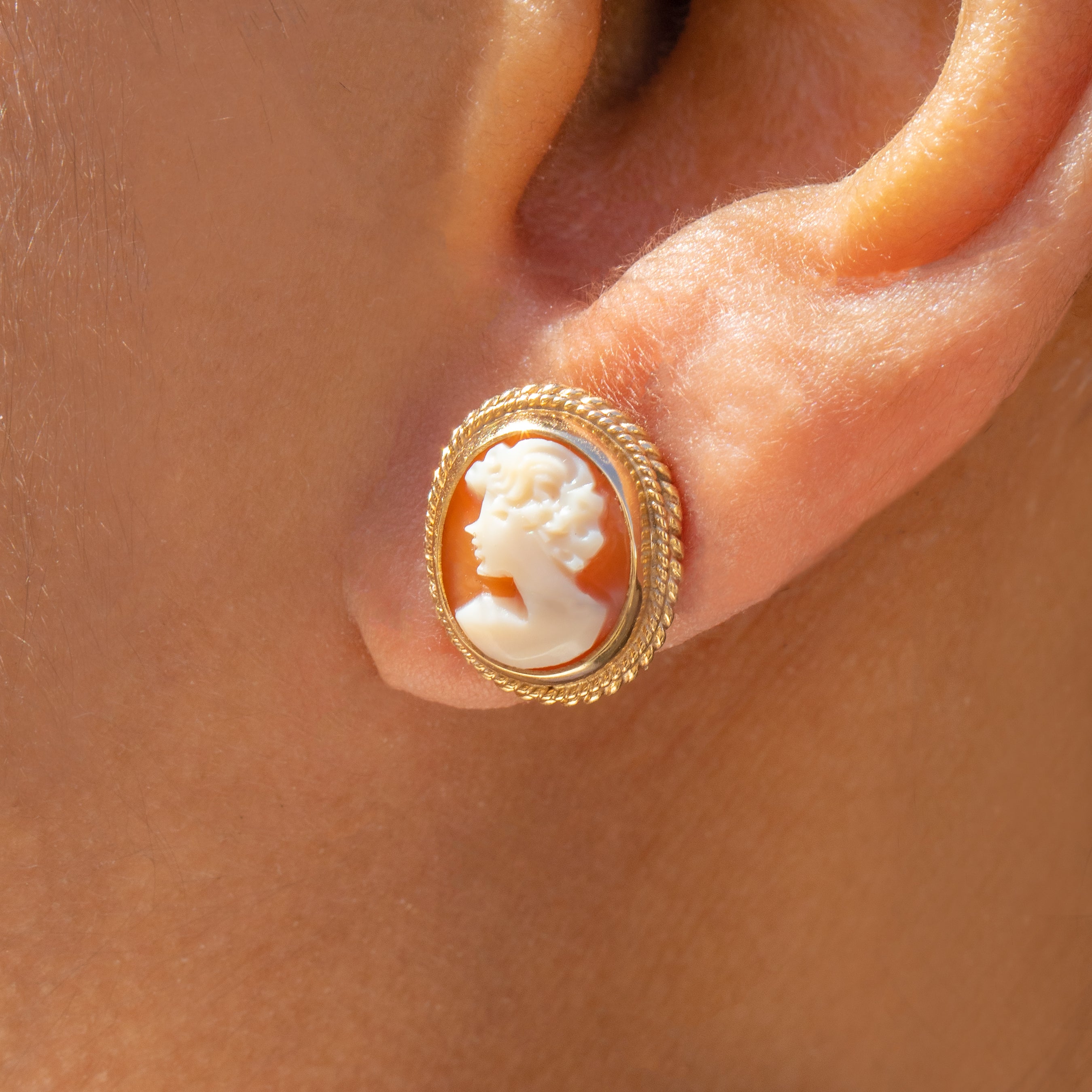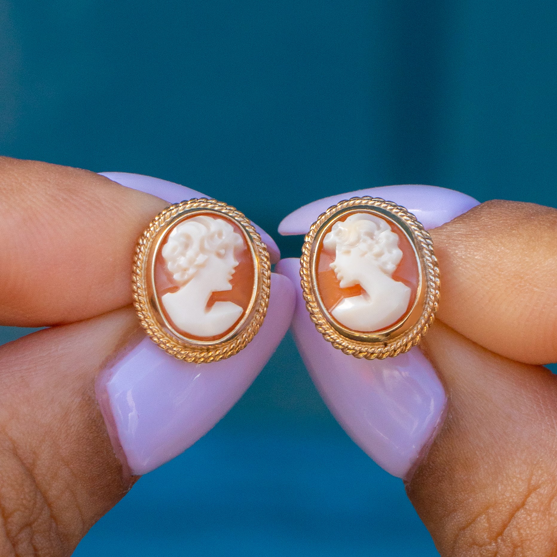 Framed by richly saturated 9ct Gold, these splendorous cameo portraits will add intrigue to your lobes. Crafted in 1990, these vintage Gold stud earrings carry bundles of historic value and timeless appeal!
