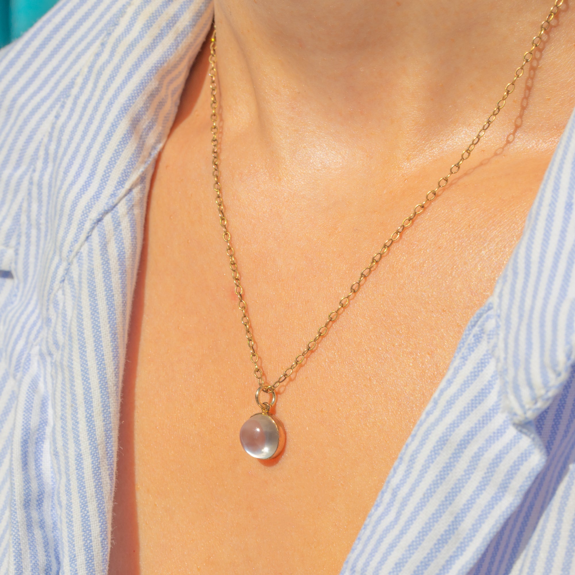 Displaying a plump 2.50ct Moonstone cabochon, this Victorian pendant flaunts a stunning adularescence as it catches the light. Its smooth, rounded shape creates a glowing strip of light that emulates a cat's eye—a highly coveted effect among Moonstone lovers.