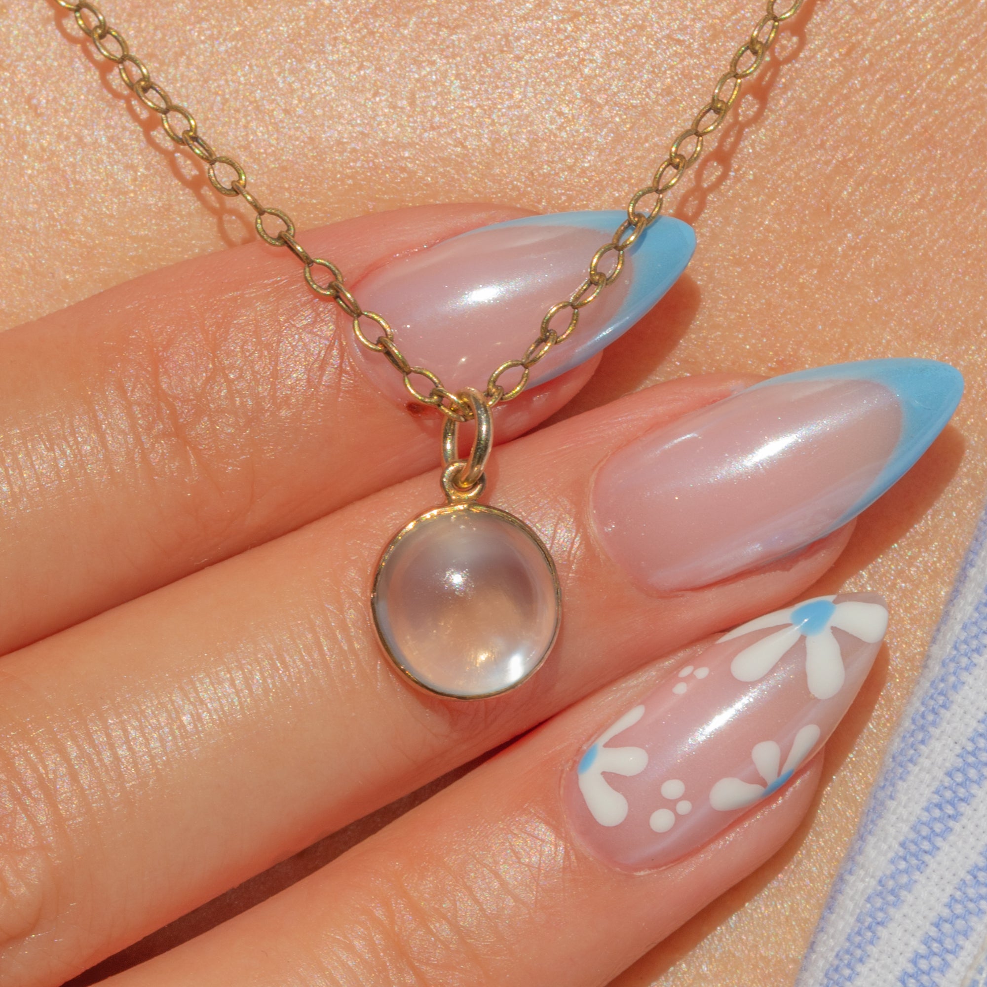 Moonstone is 8.5mm in diameter, weighing approx. 2.50ct.