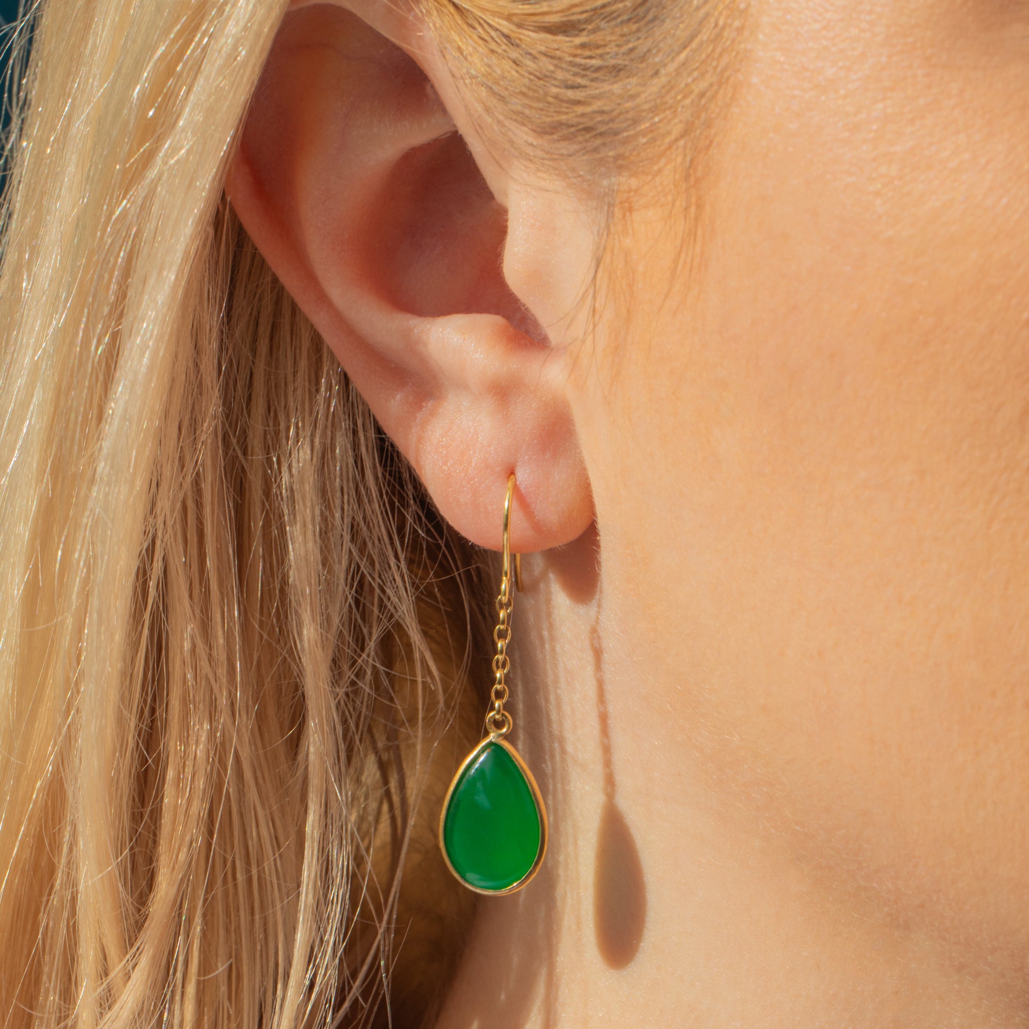 You will instantly become bewitched by these 9ct Gold Chrysoprase pear drop earrings! Gorgeous emerald-green glossy Chrysoprase teardrops are suspended from Gold gilt, and will add a verdant pop to every outfit.