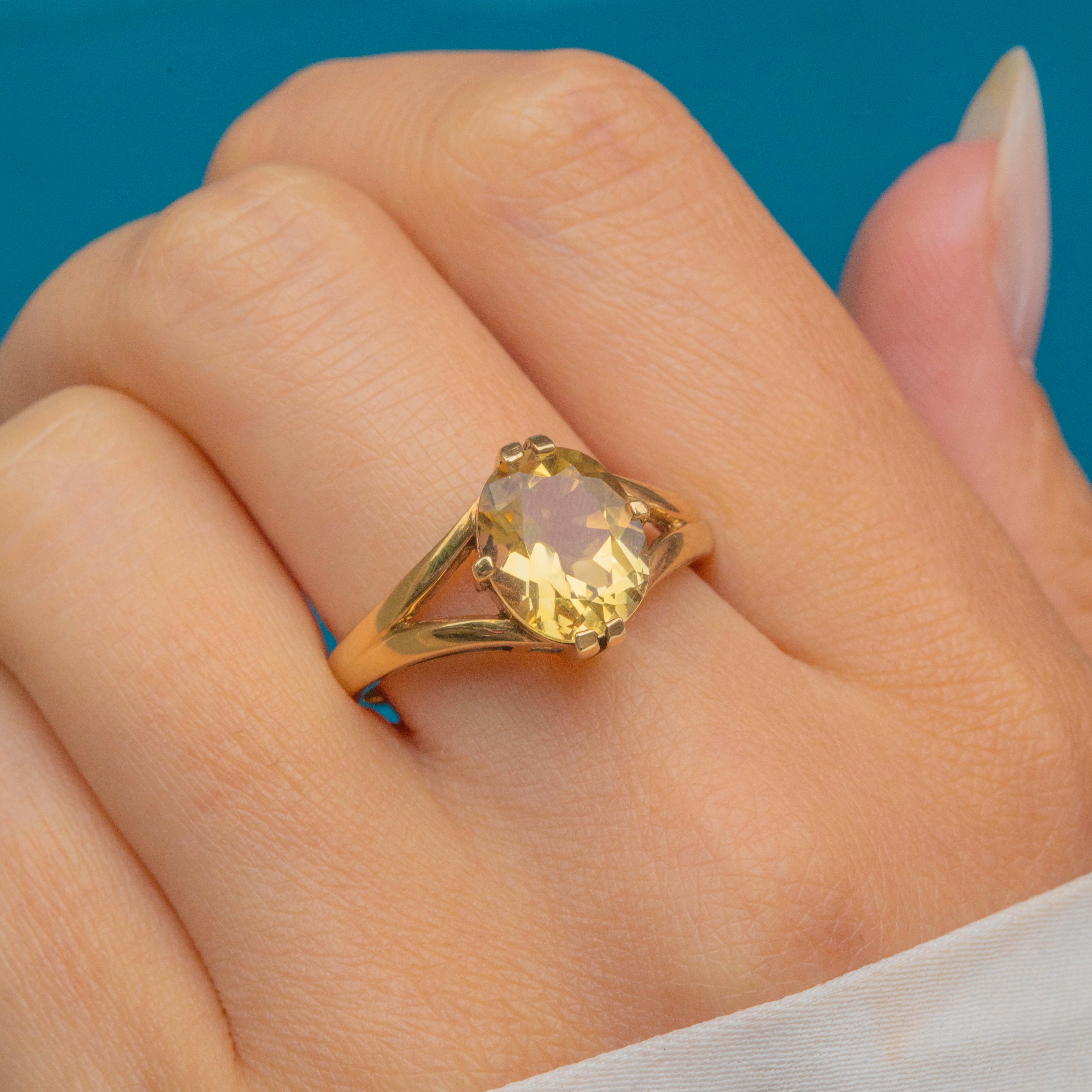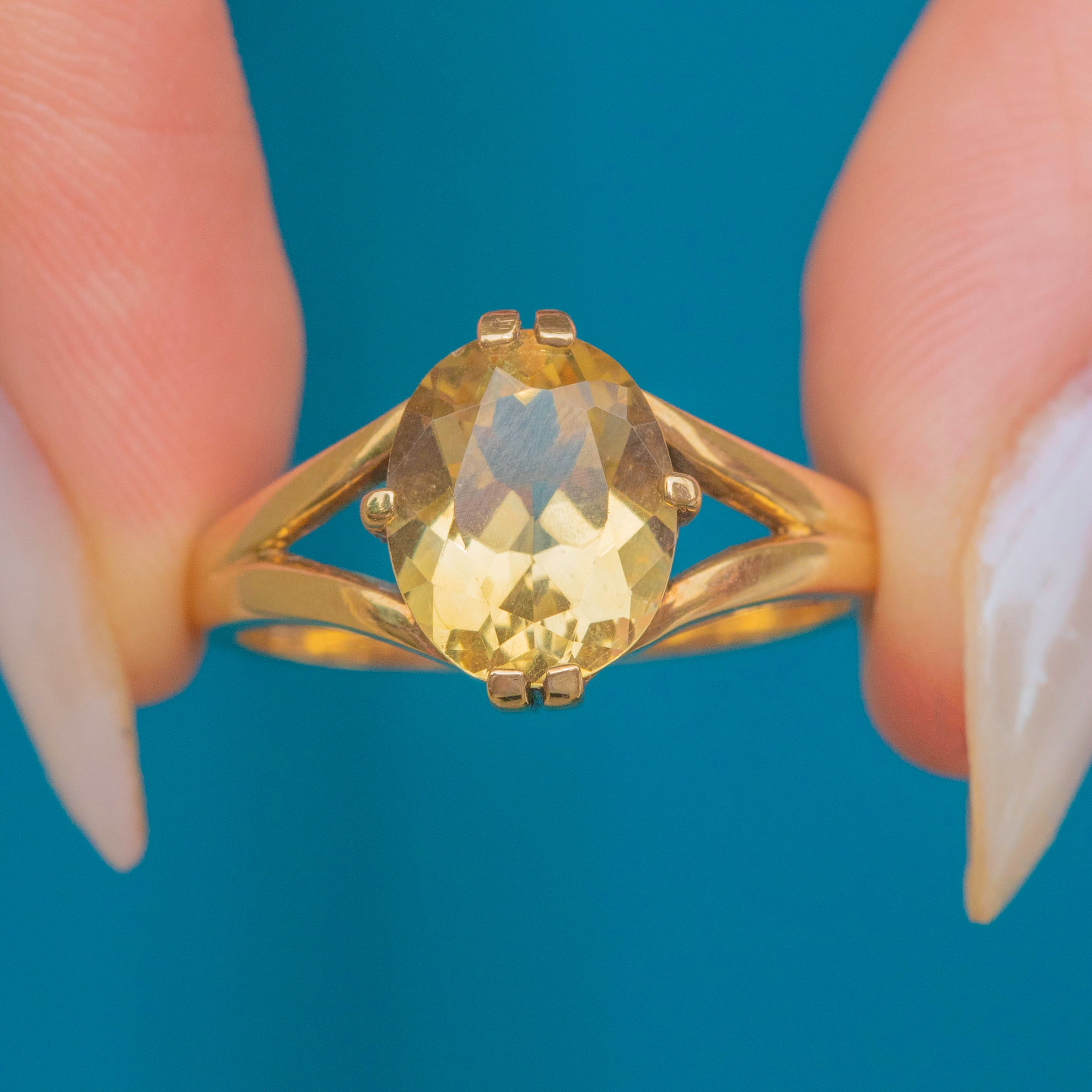 9ct Gold Citrine Solitaire Ring, Split Shoulders