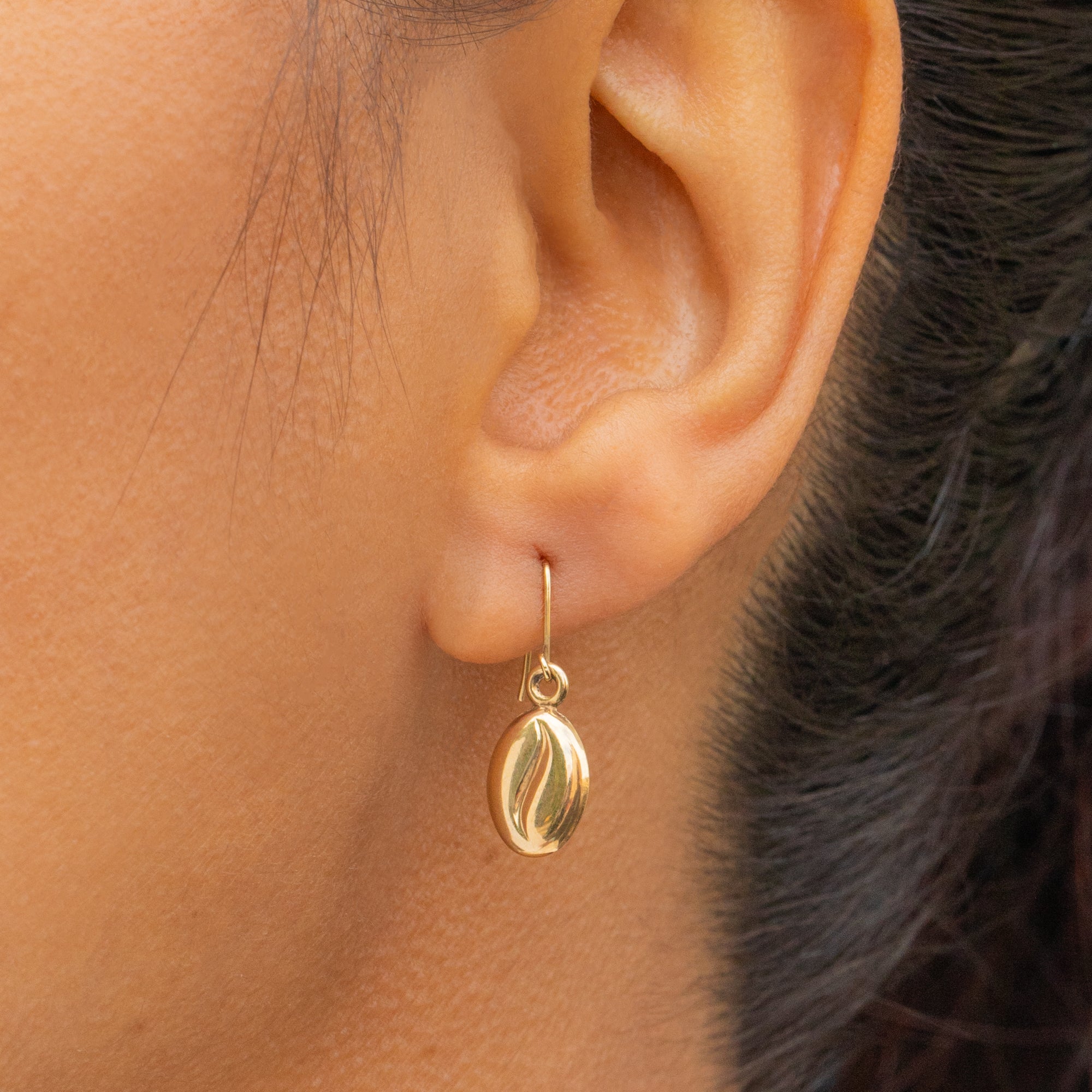 9ct Gold Coffee Bean Drop Earrings