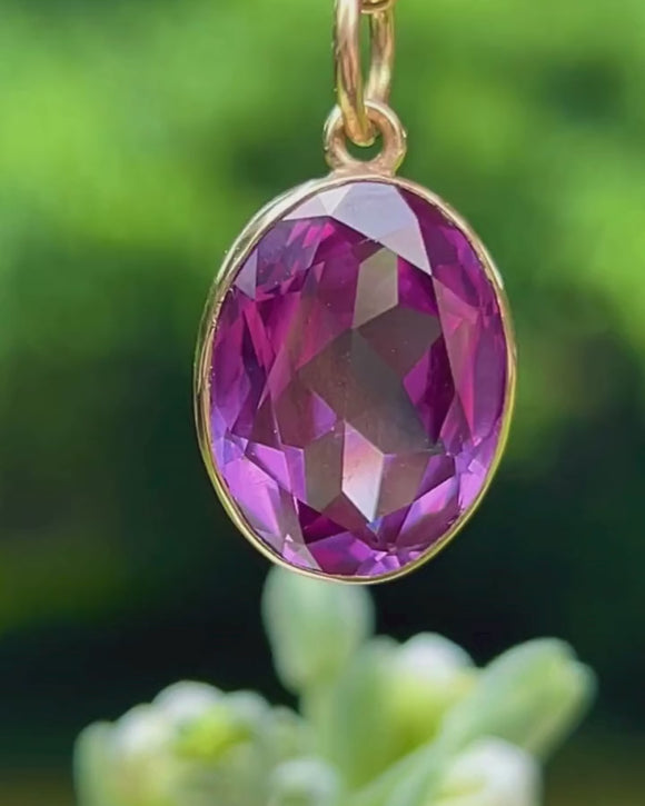 We are pleased to present this rare 9ct Gold colour change Sapphire pendant! You will be mesmerised by the array of spectacular deep violet hues as the Art Deco pendant catches the light; she is truly a sight to behold.