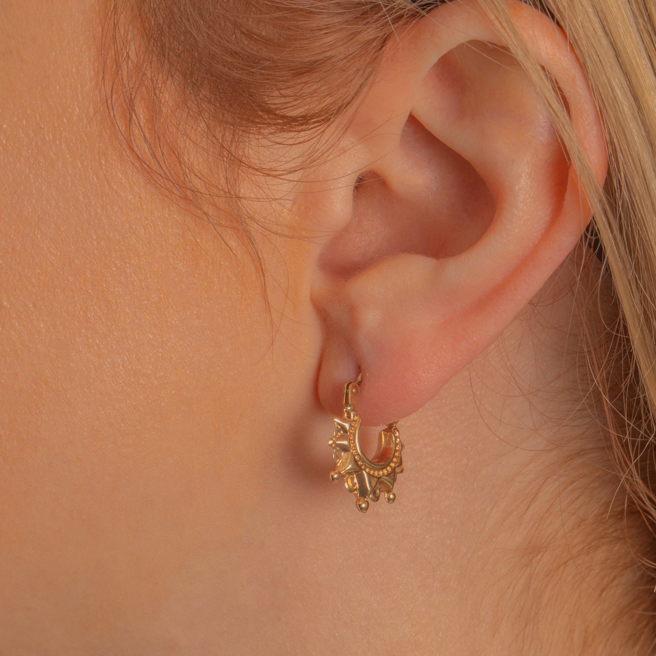 These 9ct Gold Creole huggie hoop earrings will bring luxury to your lobes! Each hoop showcases ornate details, creating an eye-catching design, and is crafted entirely from buttery 9ct Gold.