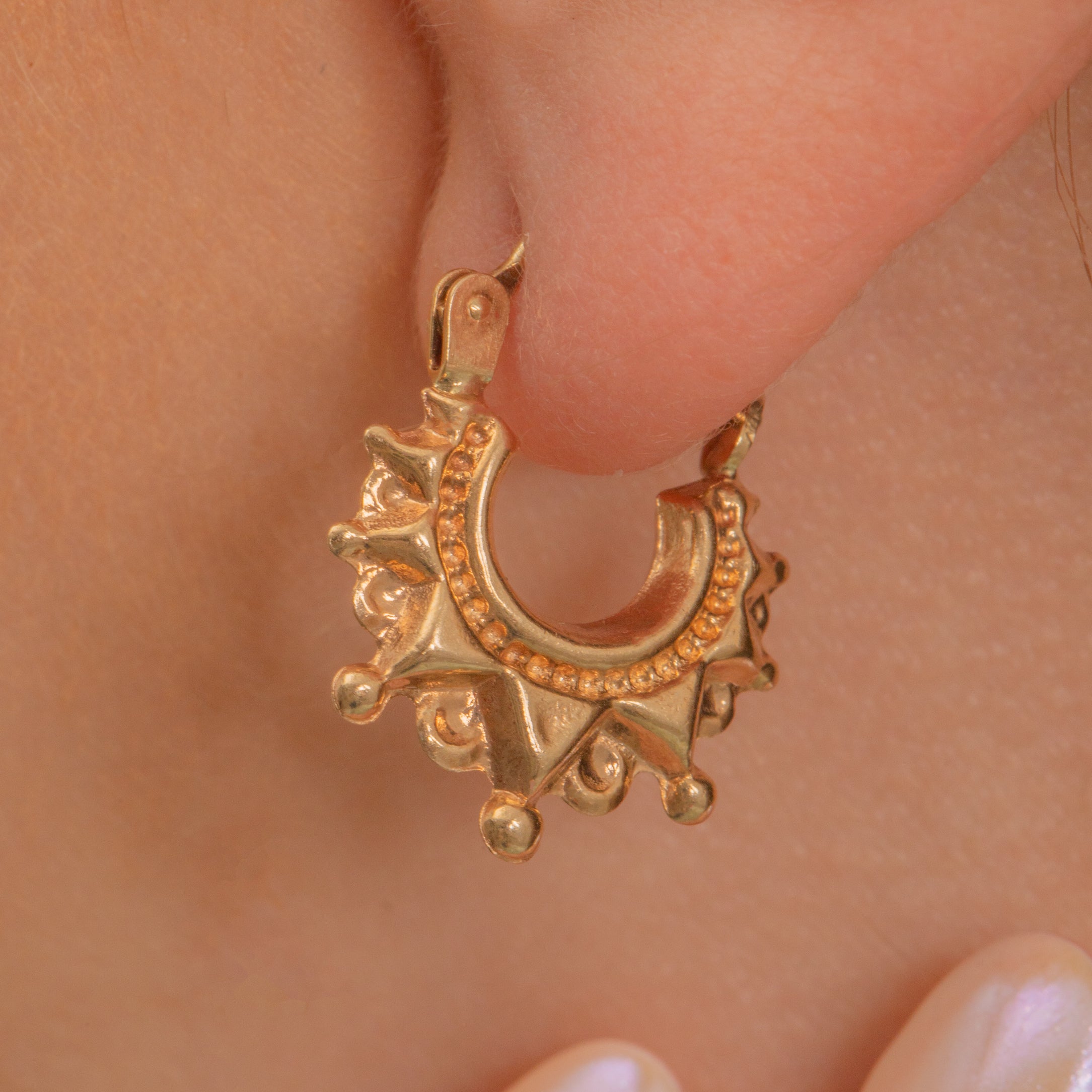 EXCELLENT. These 9ct Gold Creole huggie hoop earrings are in excellent condition. The Gold is buttery throughout and the details have remained defined. The levers are in perfect working condition, allowing you to wear these vintage Creole earrings with confidence!