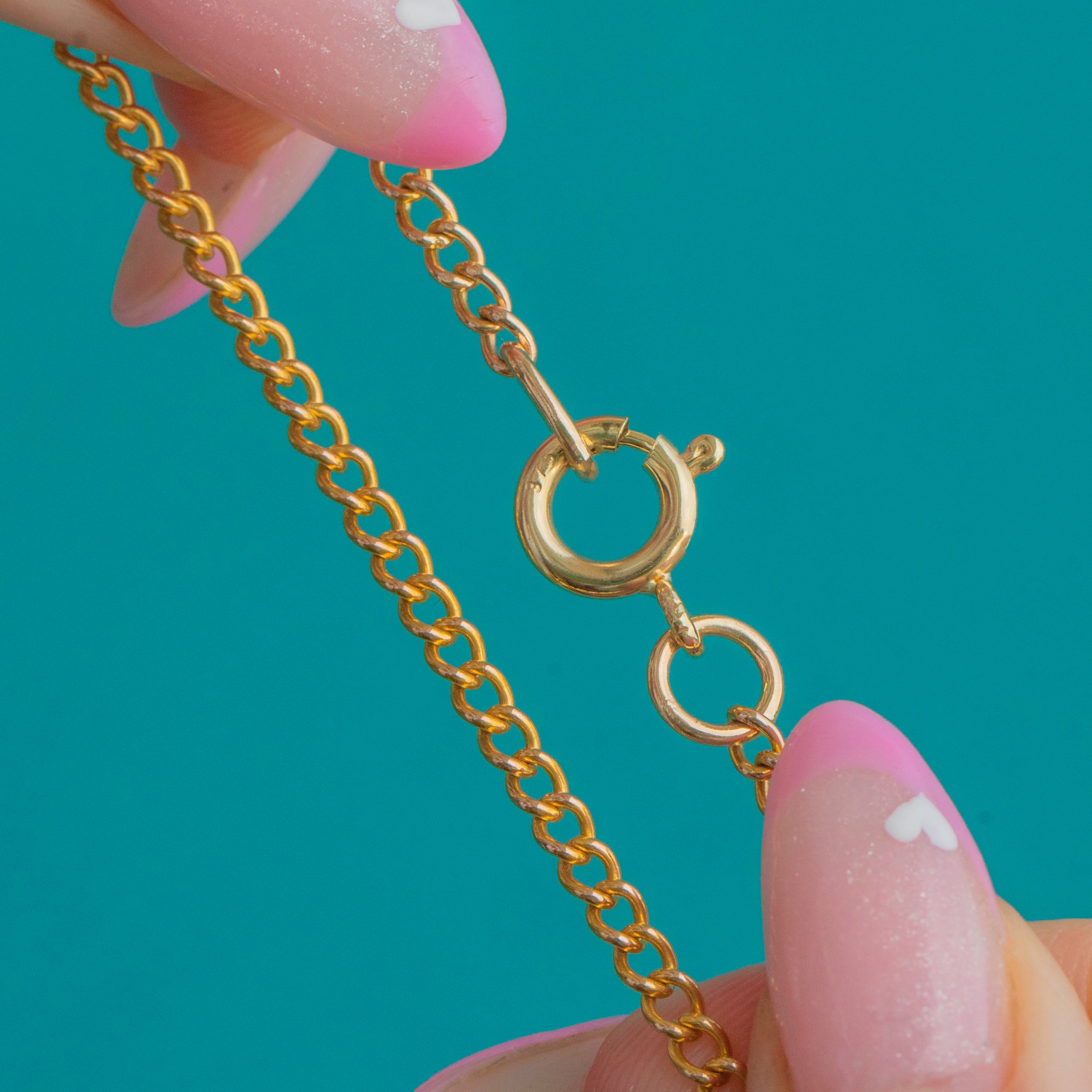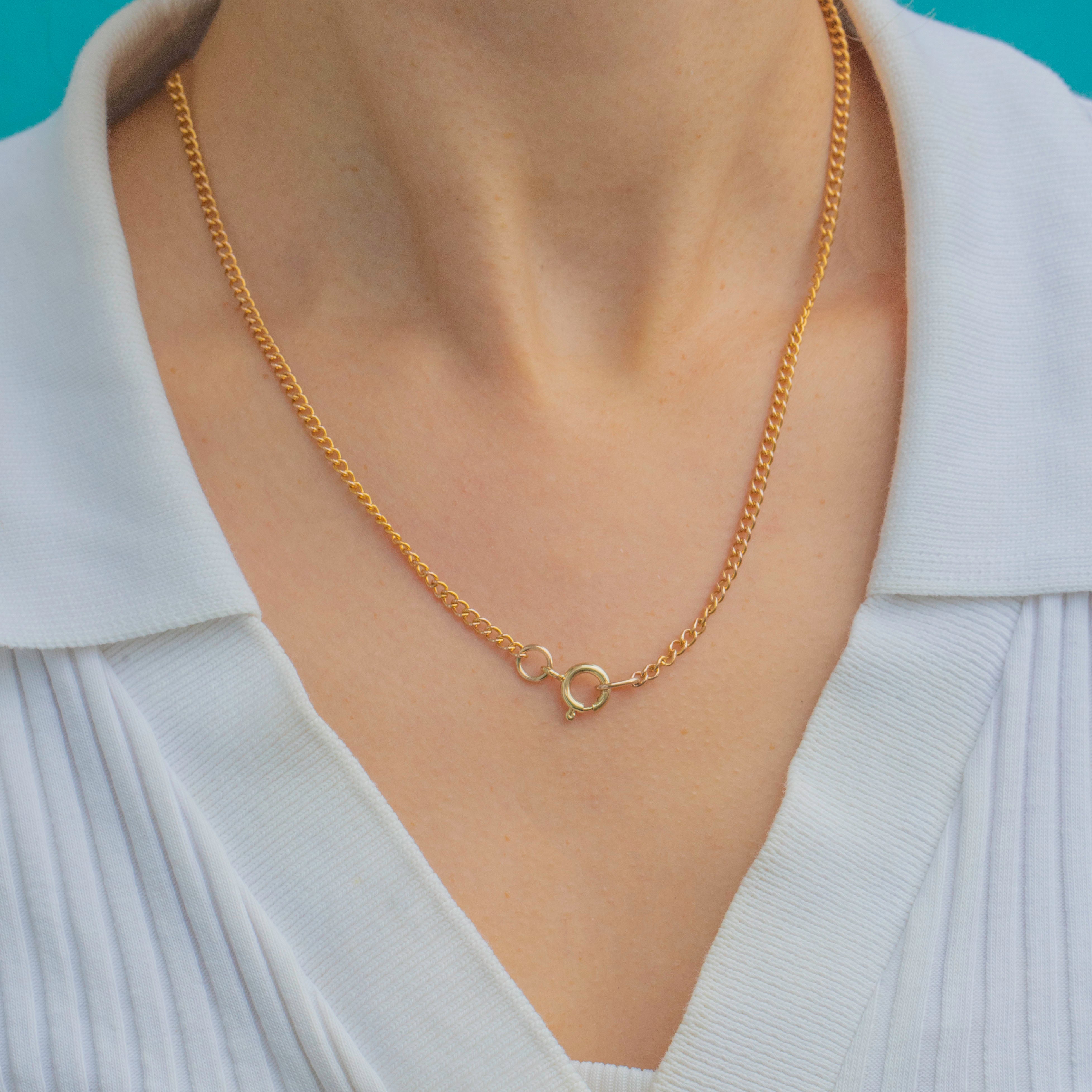 This classic 9ct Gold curb chain has a bright, refined finish that catches the light beautifully. The fine 2.5mm links give it a delicate yet polished look — perfect for layering with pendants or wearing alone for a touch of understated elegance.