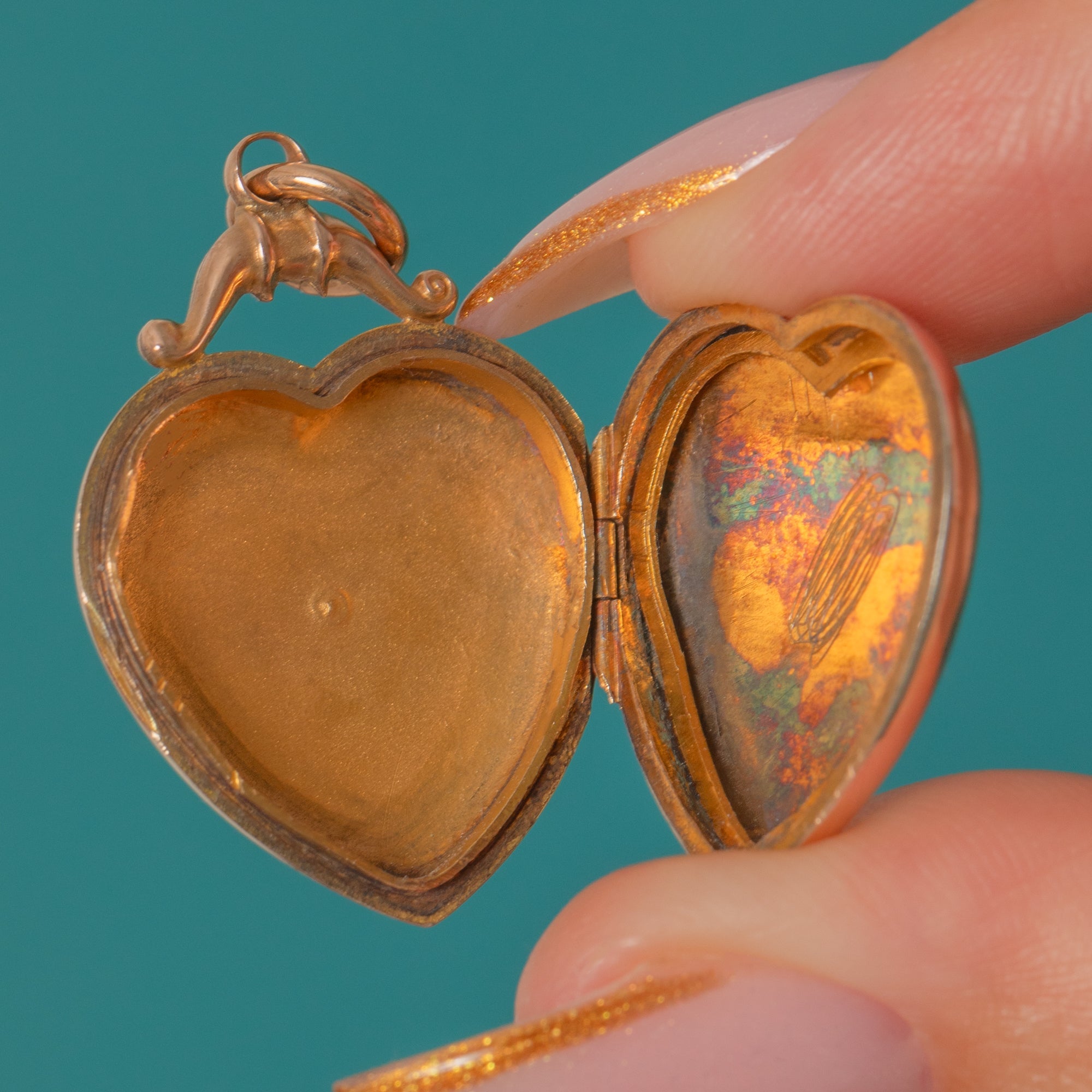 STAMPS: “REAL GOLD” on back of locket.