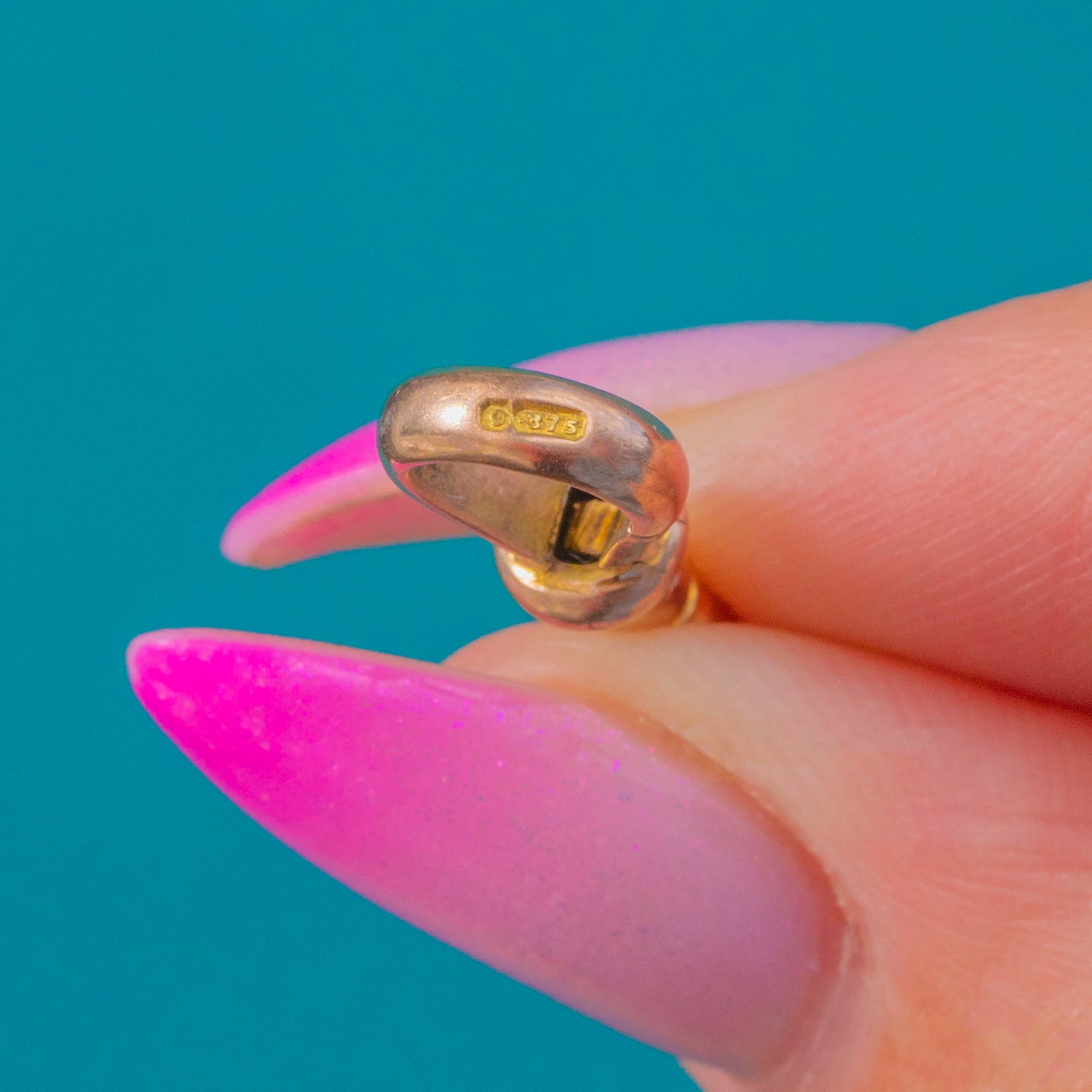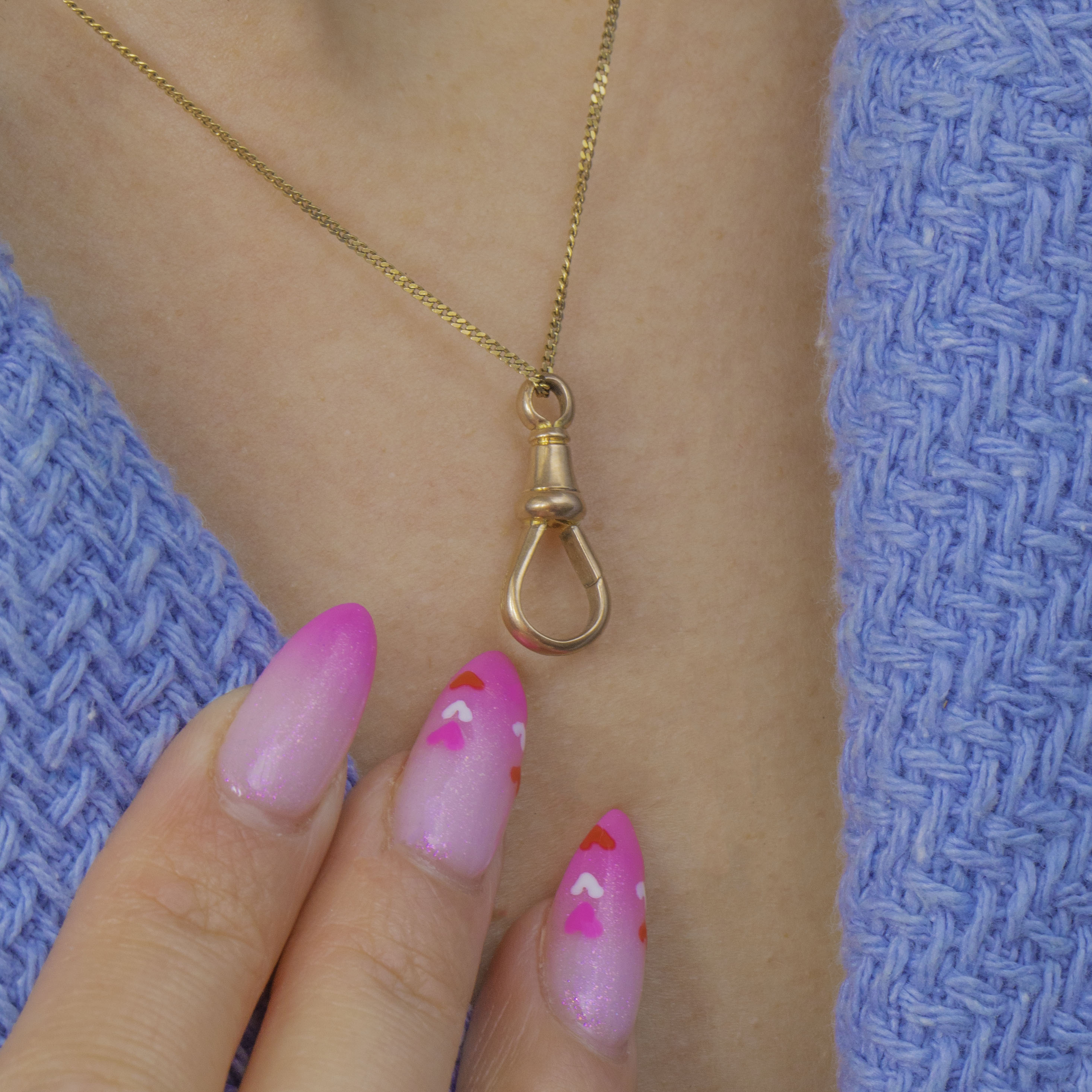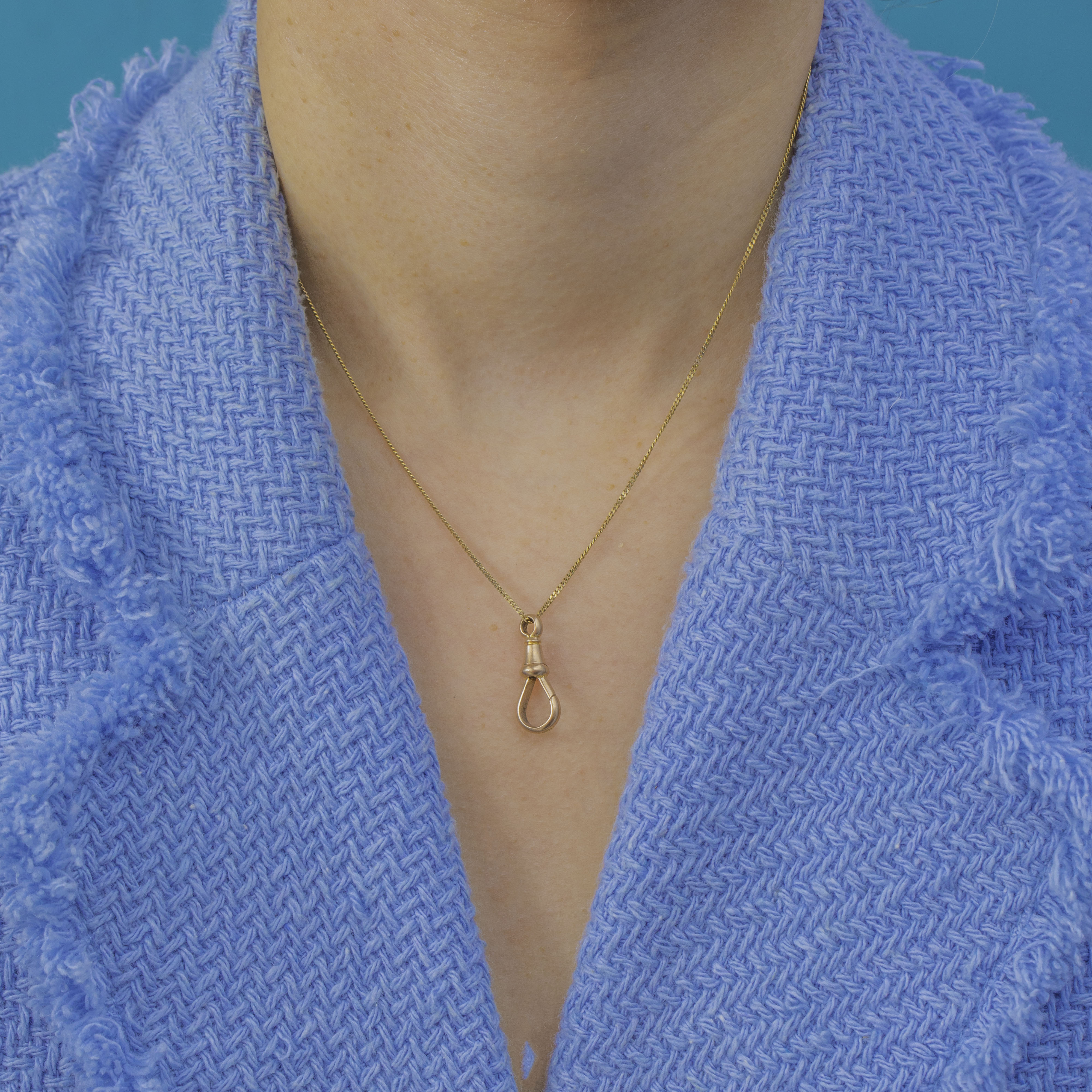 Quintessential Victorian utility with a refined twist, this petite 9ct Gold dog clip boasts a sleek teardrop gate and turned barrel profile for that coveted watch‑guard aesthetic. Its smooth surfaces and soft golden patina make it an elegant, minimalist accent.