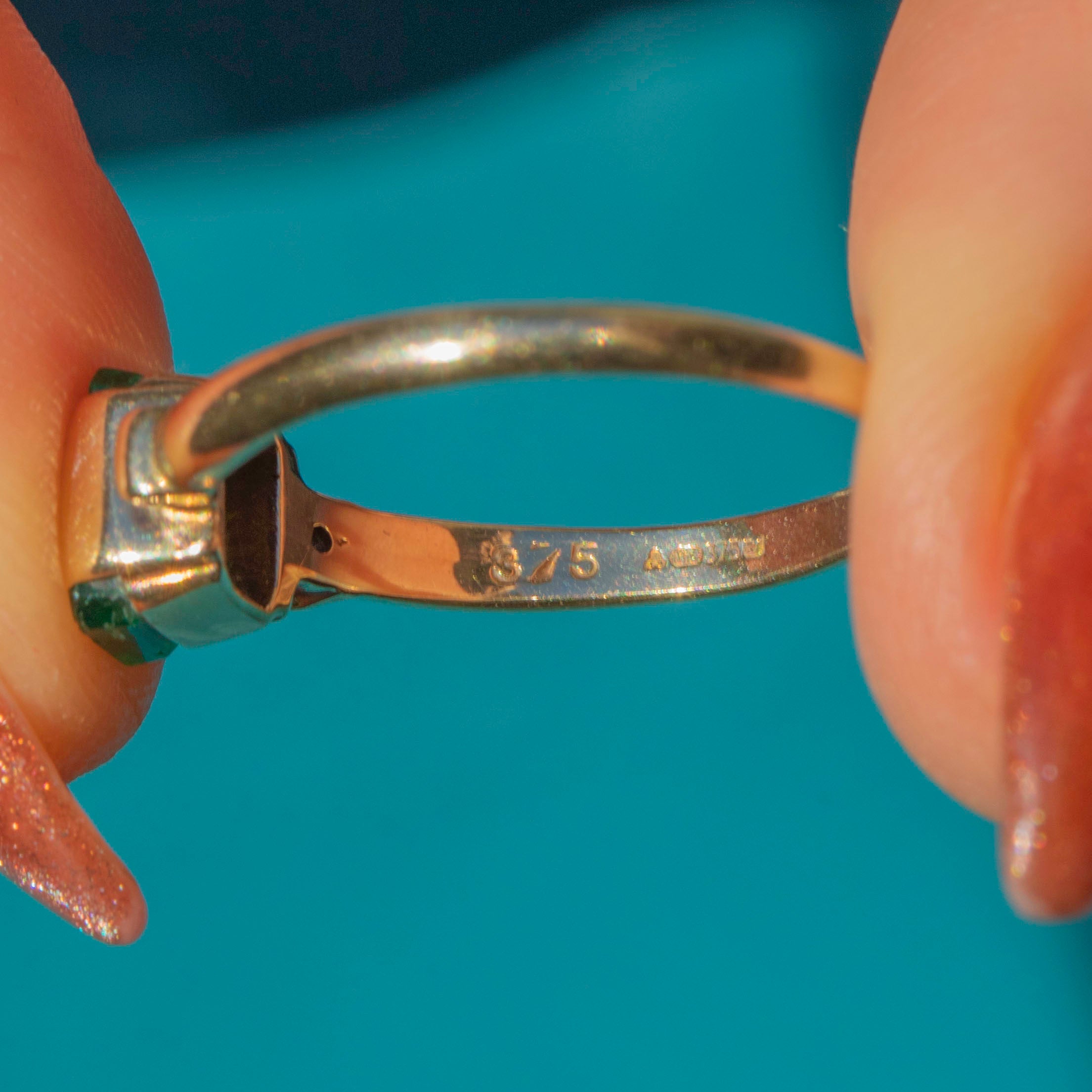 MATERIALS: Tests as 9ct Gold, Emerald, Diamonds