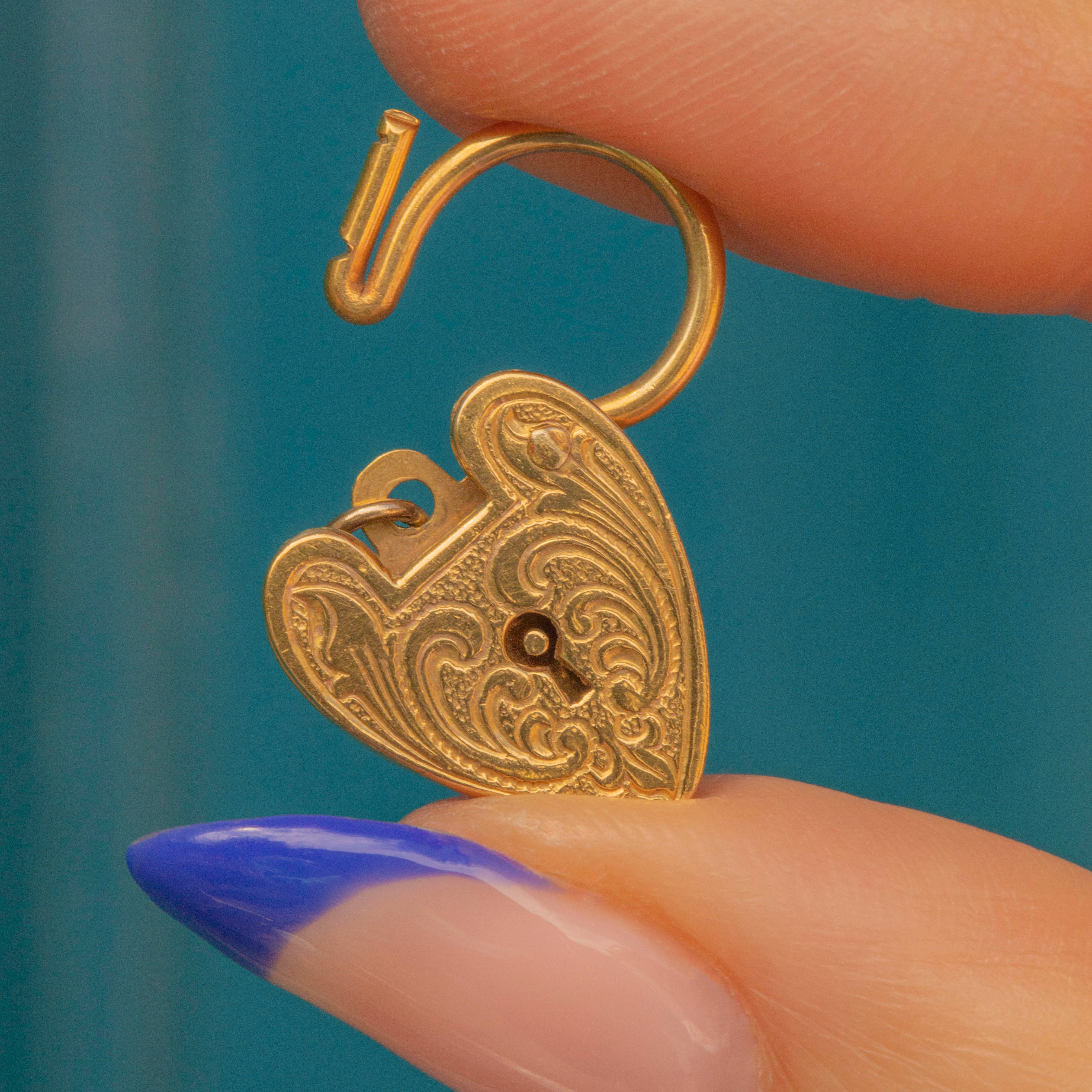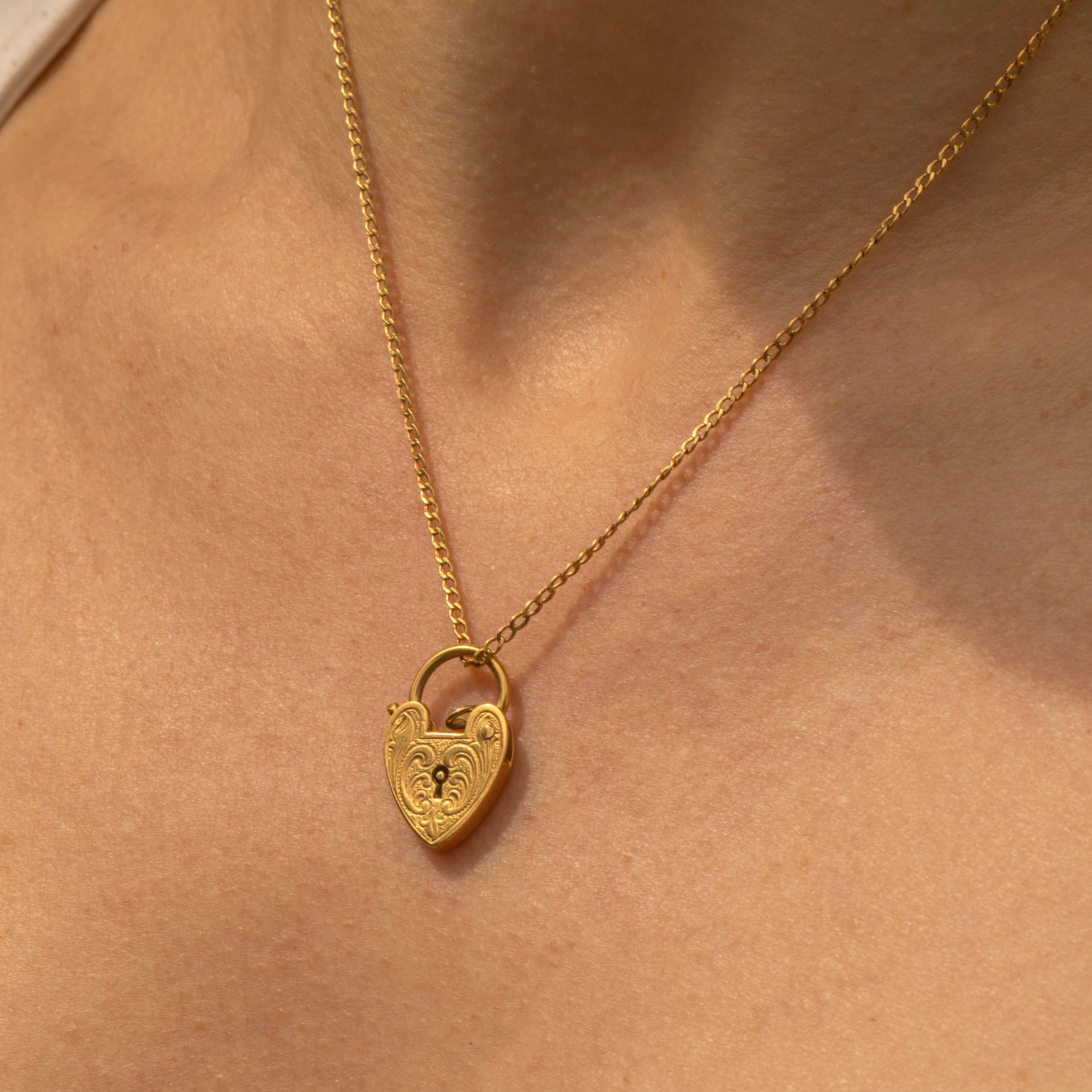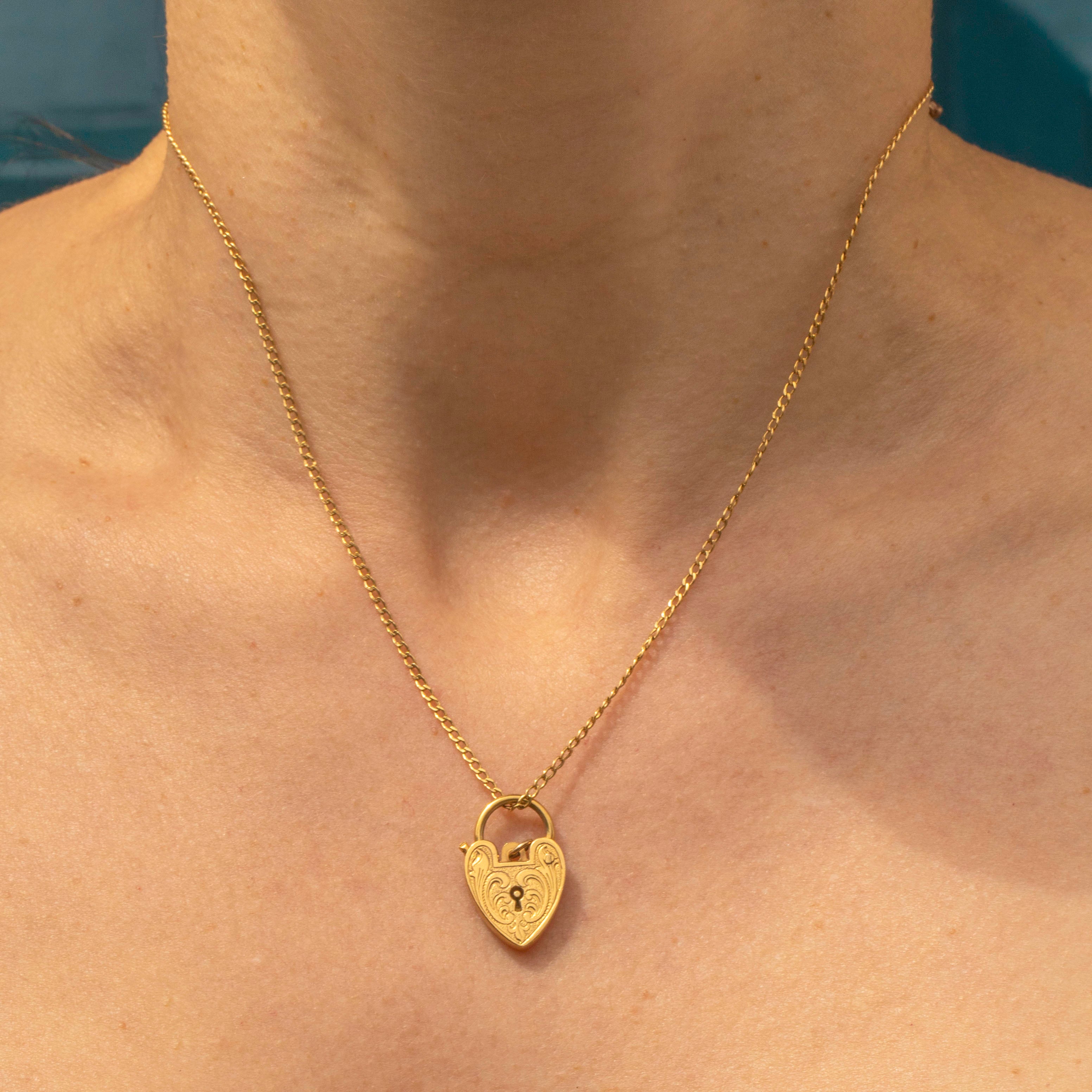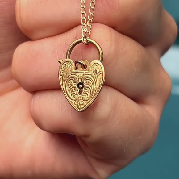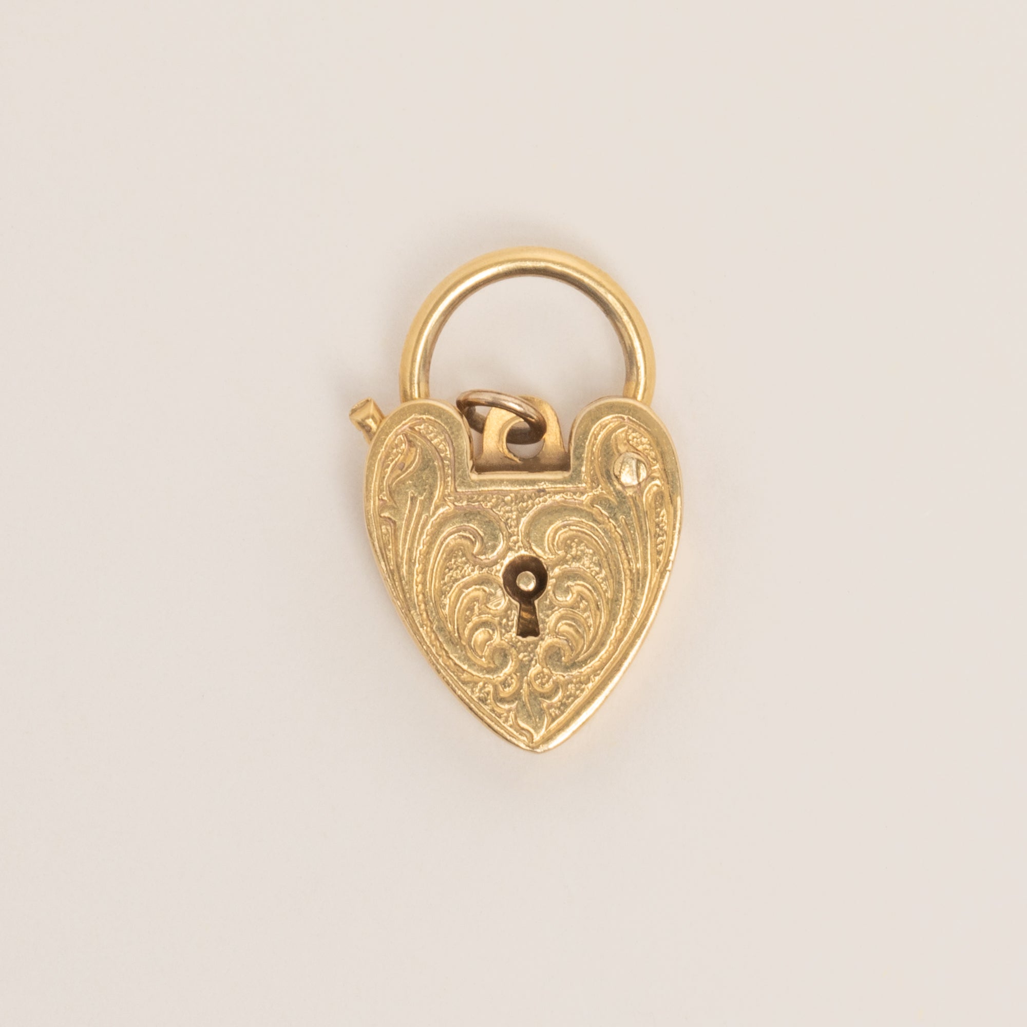EXCELLENT: This 9ct Gold engraved heart padlock pendant is in superb condition. All of the engravings are intact, the shape of the padlock has kept well and the clasp is in perfect working order. This pendant has survived 50 years of wear, and will endure many more years to come!