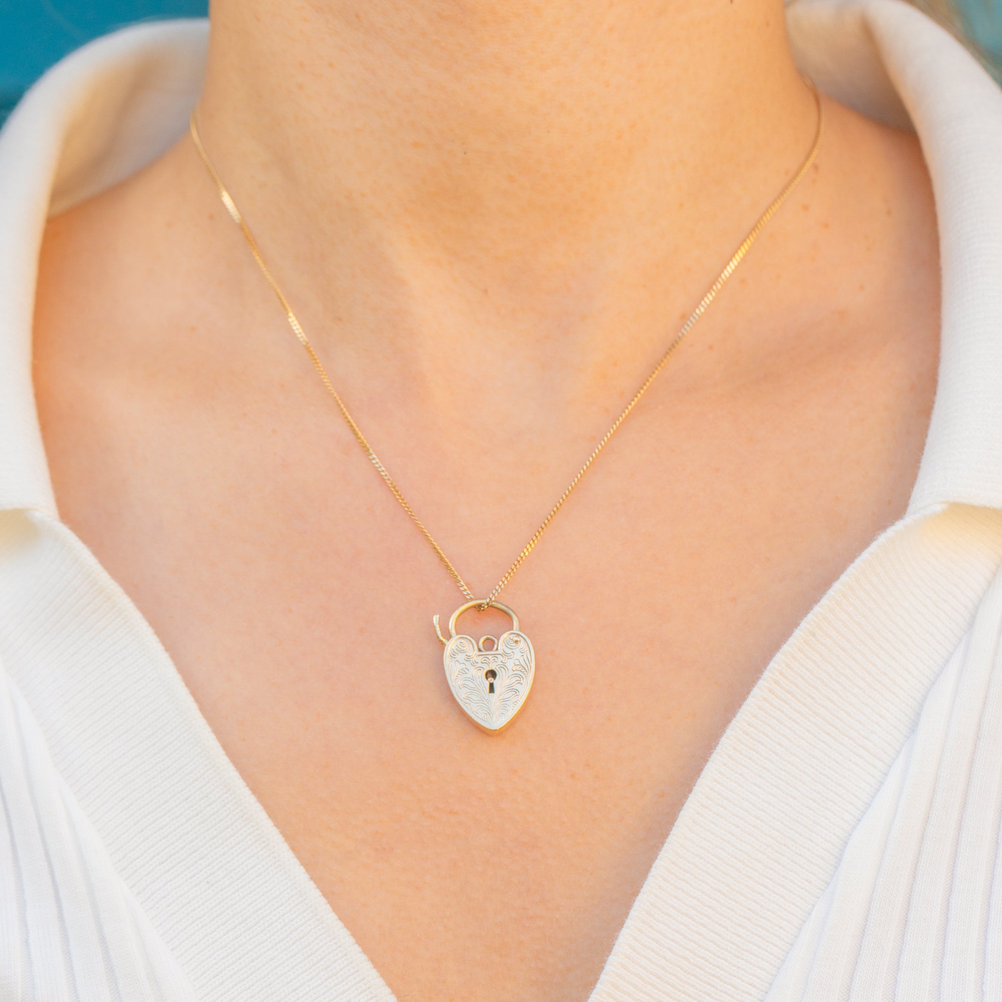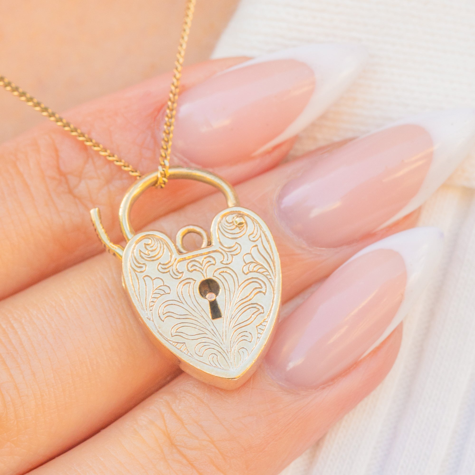 9ct Gold Engraved Heart Padlock Pendant