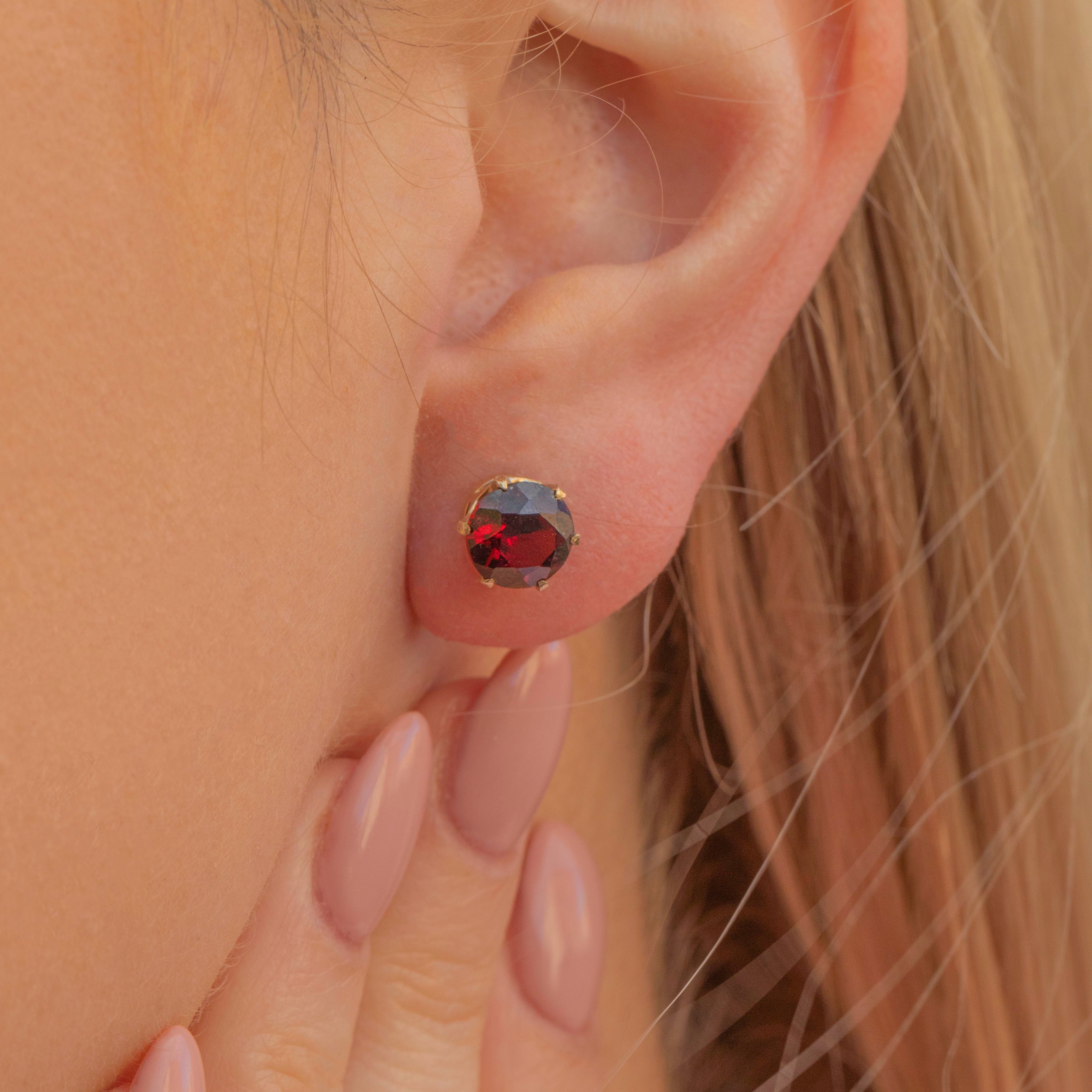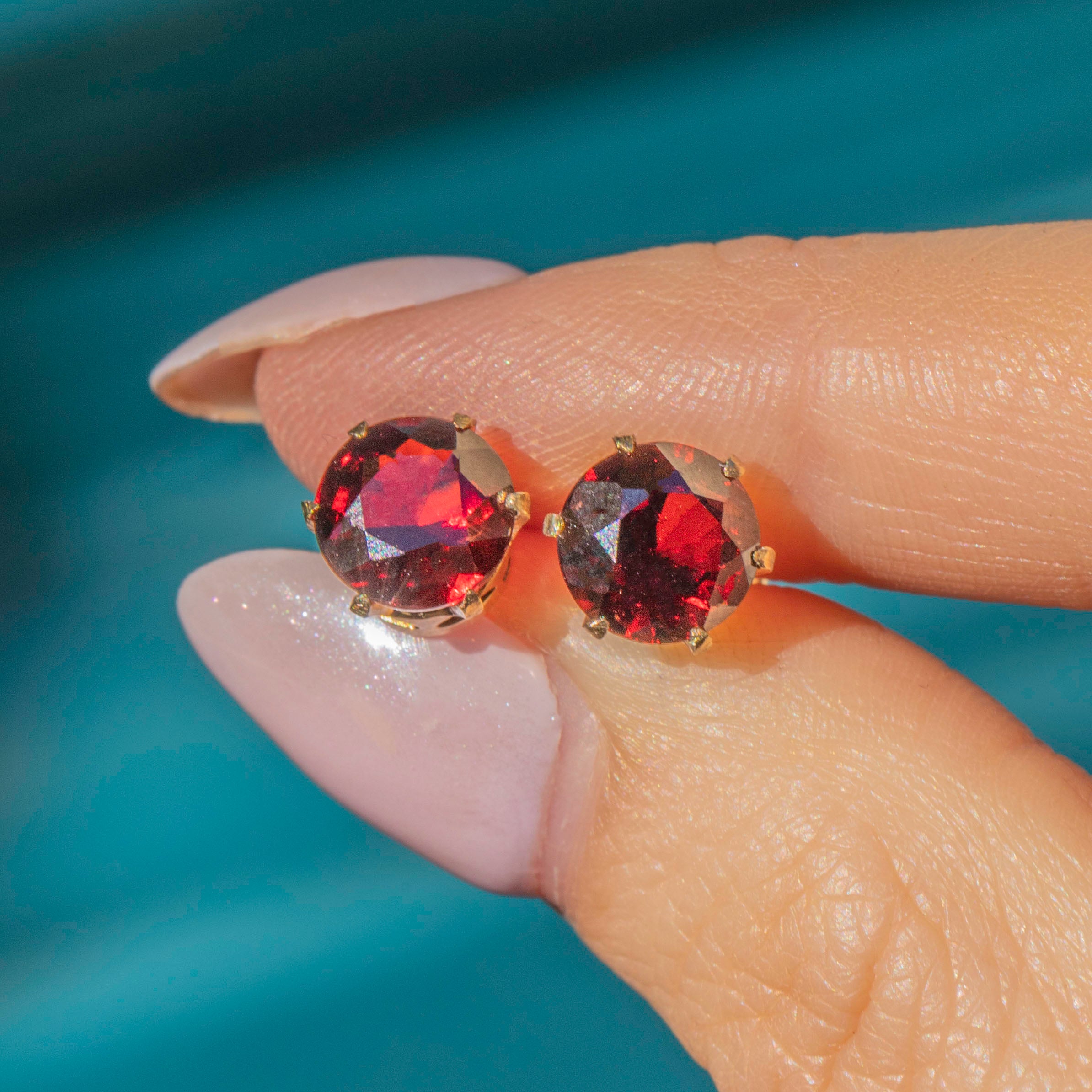 Add a touch of elegance to your collection with these stunning 9ct Gold Garnet stud earrings! Flaunting expertly faceted rich red Garnets, these Vintage earrings radiate warm, fiery autumnal hues. Marrying the warmth of the Garnets, each earring is securely set in buttery 9ct yellow Gold claw setting with a beautifully crafted profile, allowing the light to stream through the Garnets from every angle.