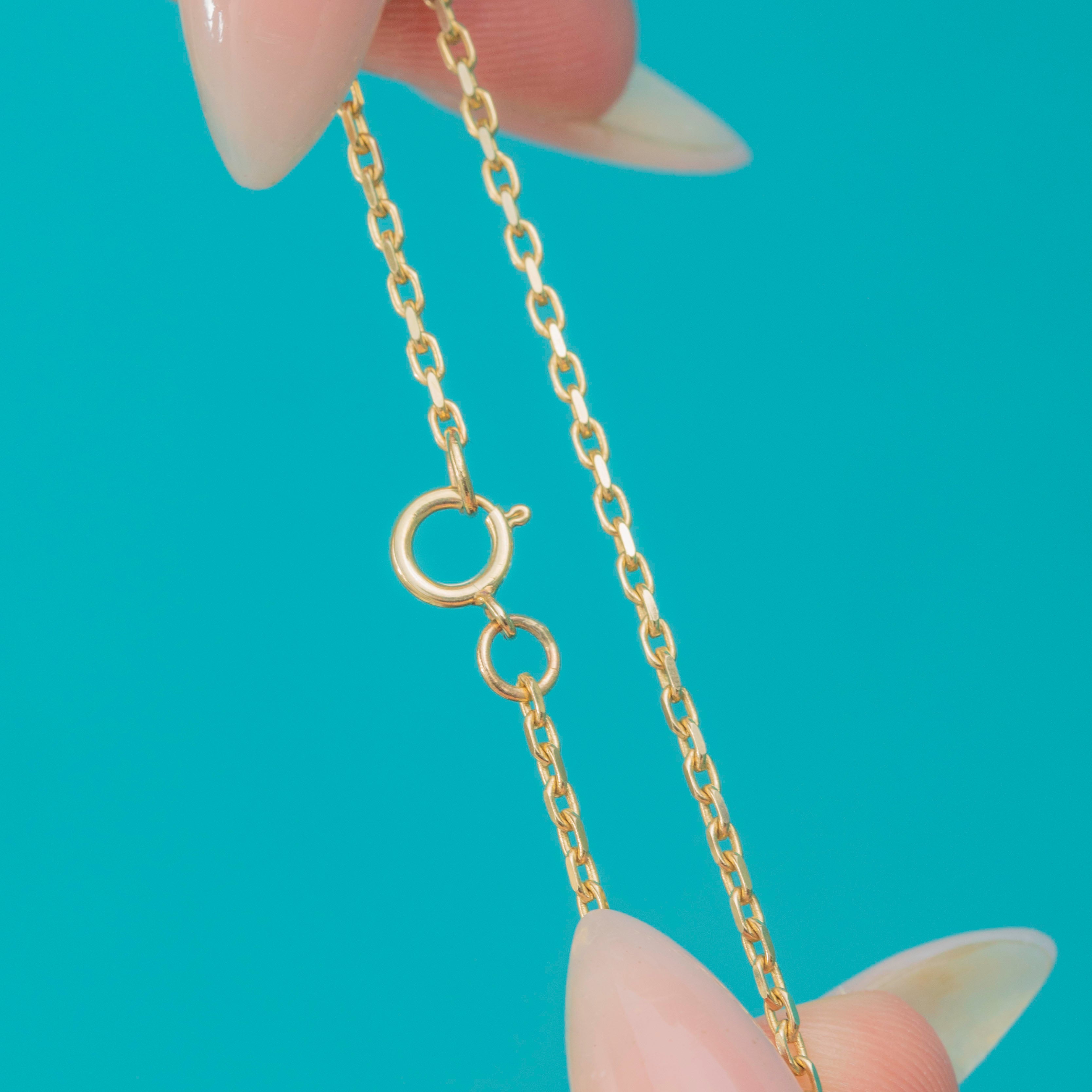 This eye-catching geometric Opal pendant showcases a mesmerising natural, solid Opal with a striking triangular shape! And a chunky bezel of solid 9ct Gold. The pendant is accompanied by an 18" Gold chain, making it ready to wear straight away.