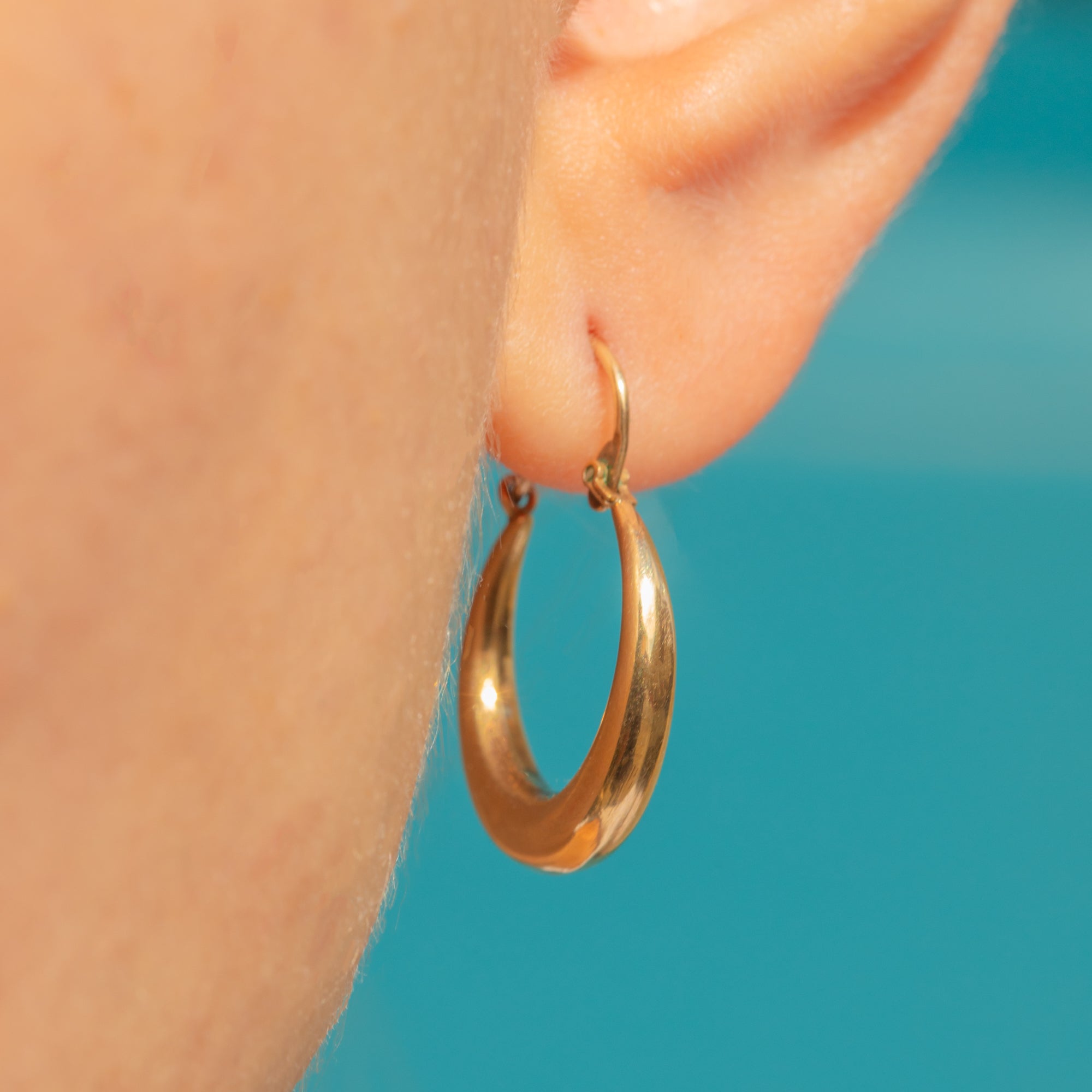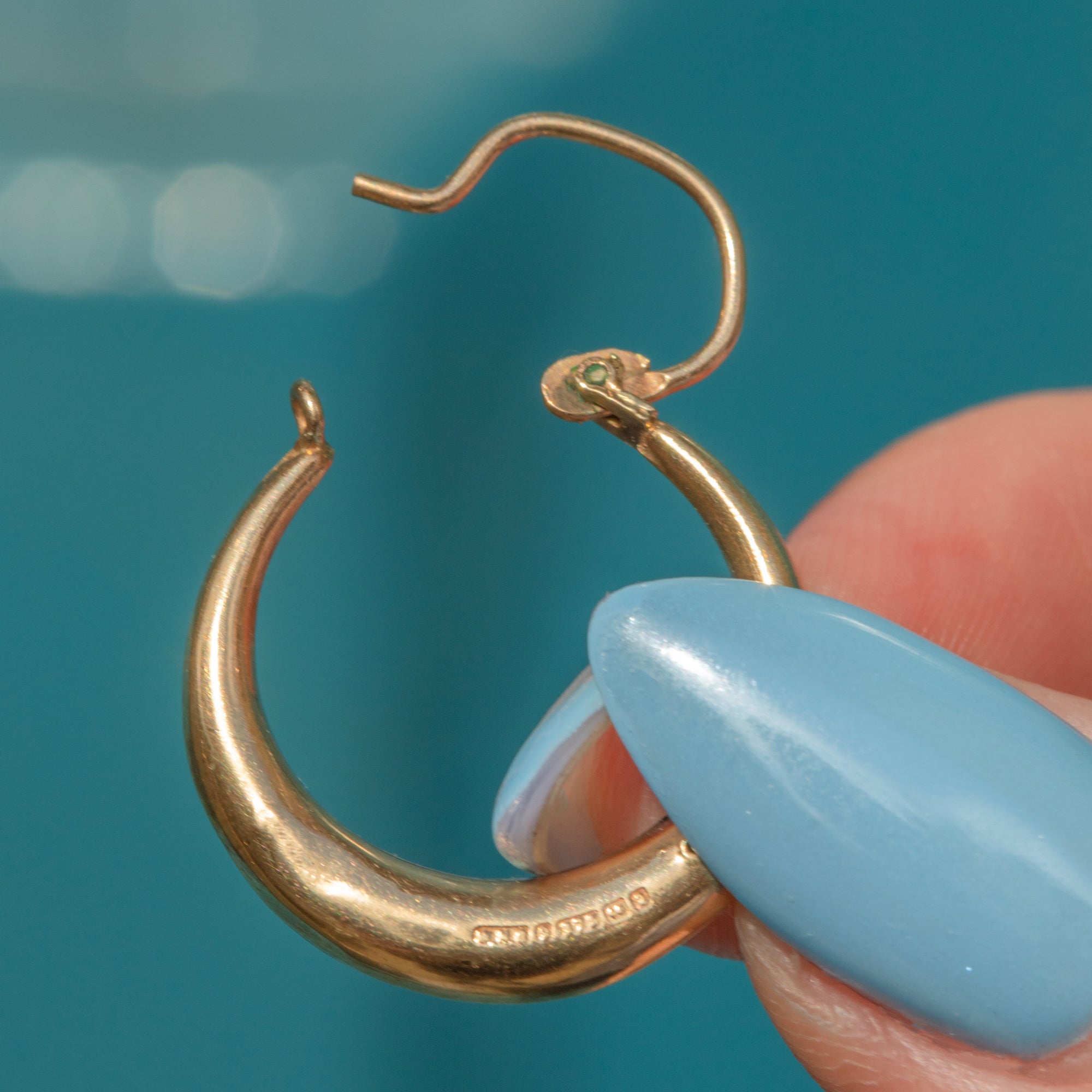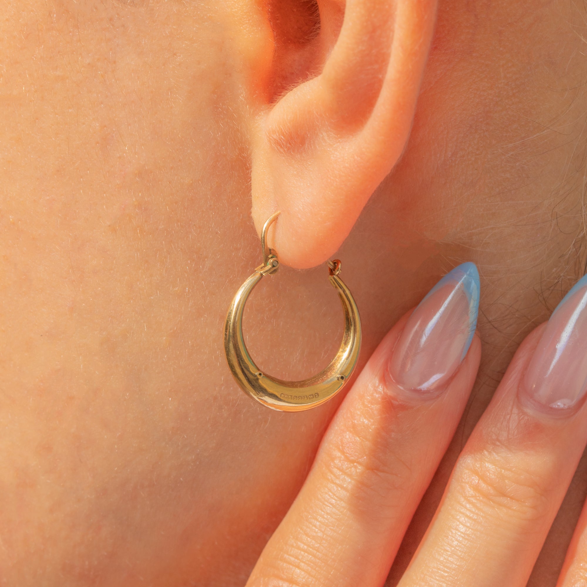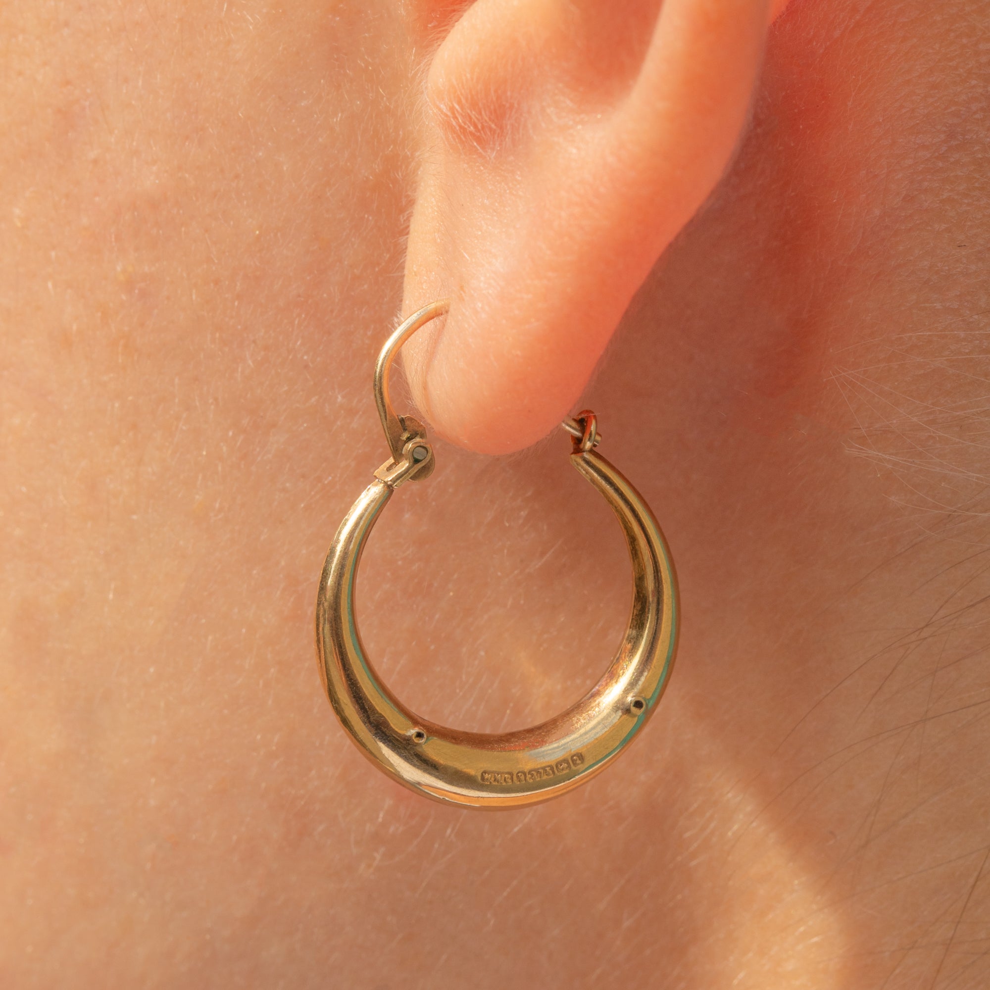 These vintage Gold hoops are the perfect pair for everyday wear! Crafted from solid 9ct Gold, each hoop has an elegantly graduating form and a gorgeous glossy surface that catches the light beautifully.