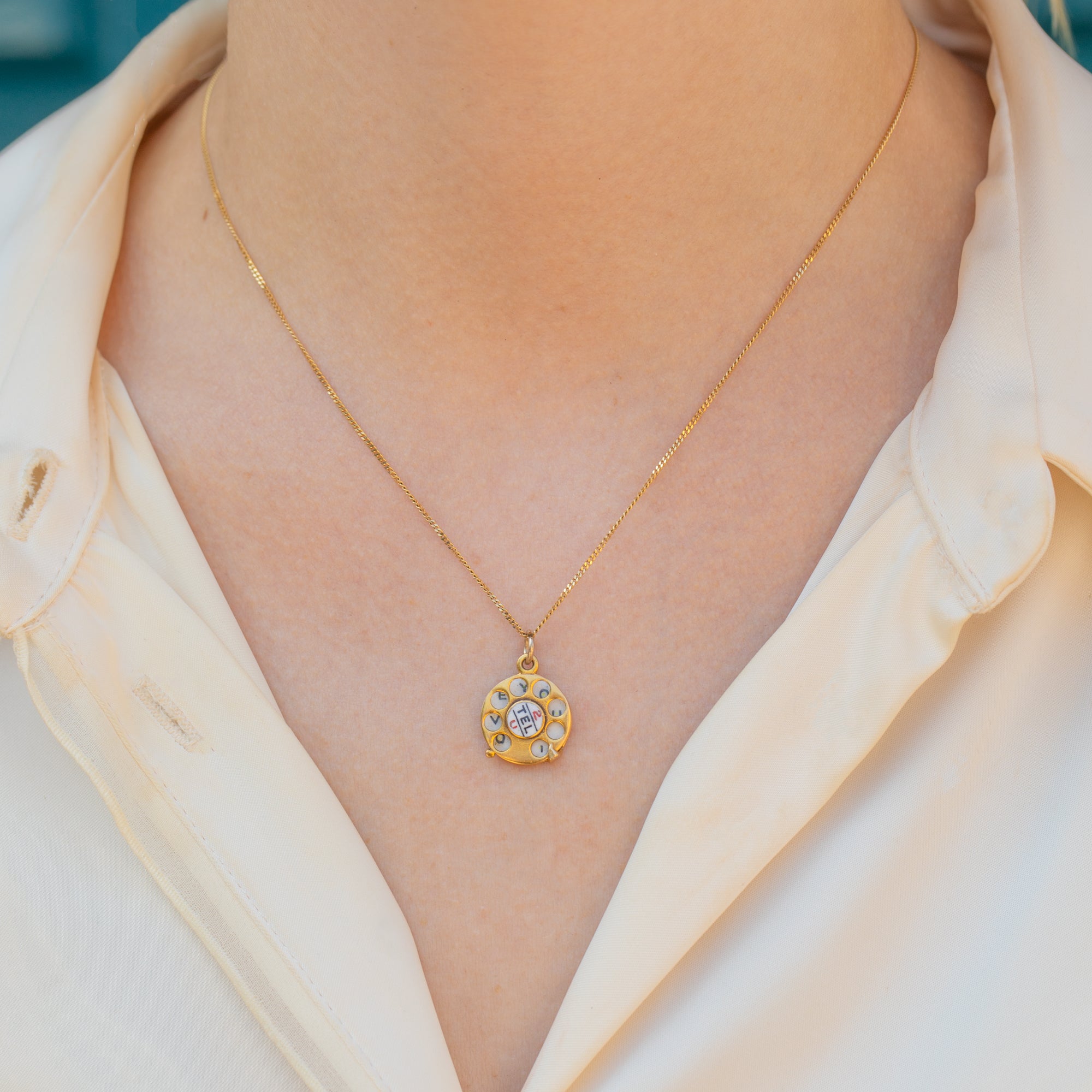 MATERIALS: Tests as 9ct Gold, Enamel.