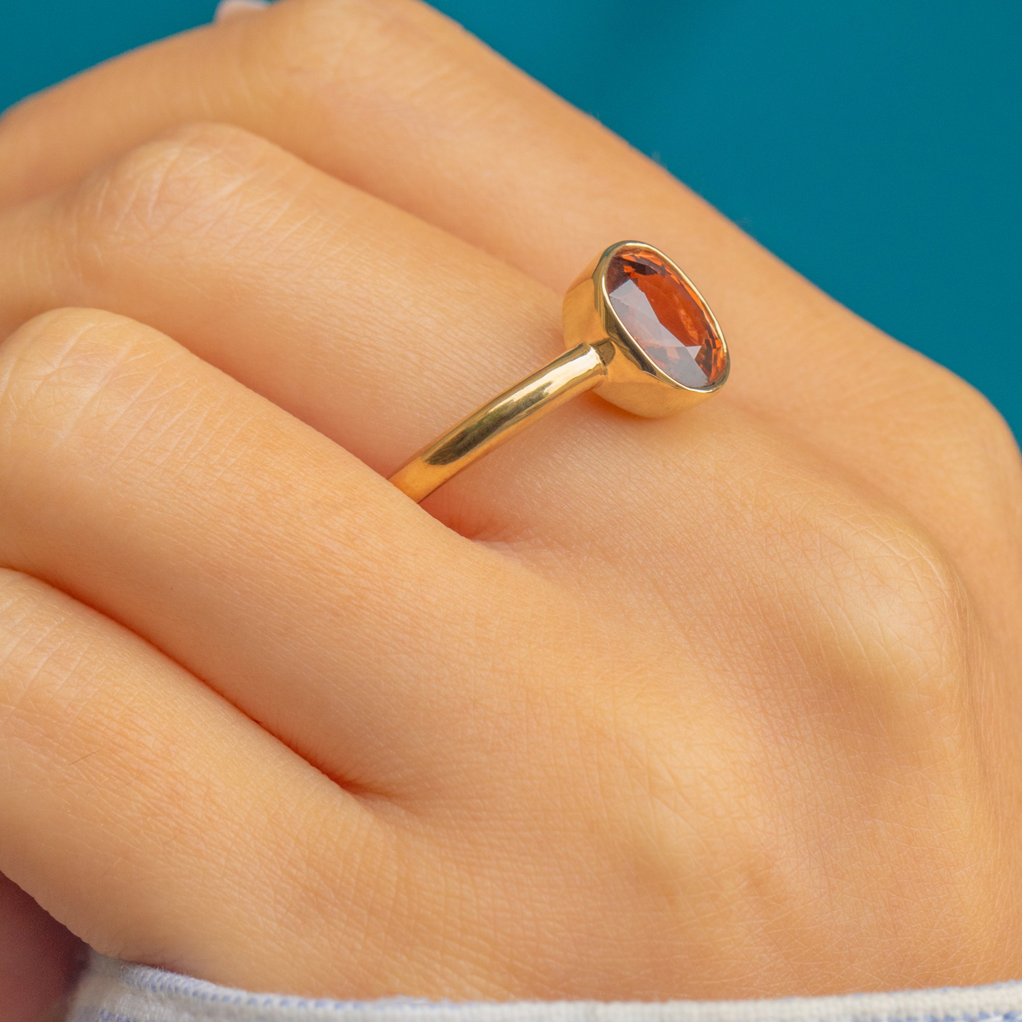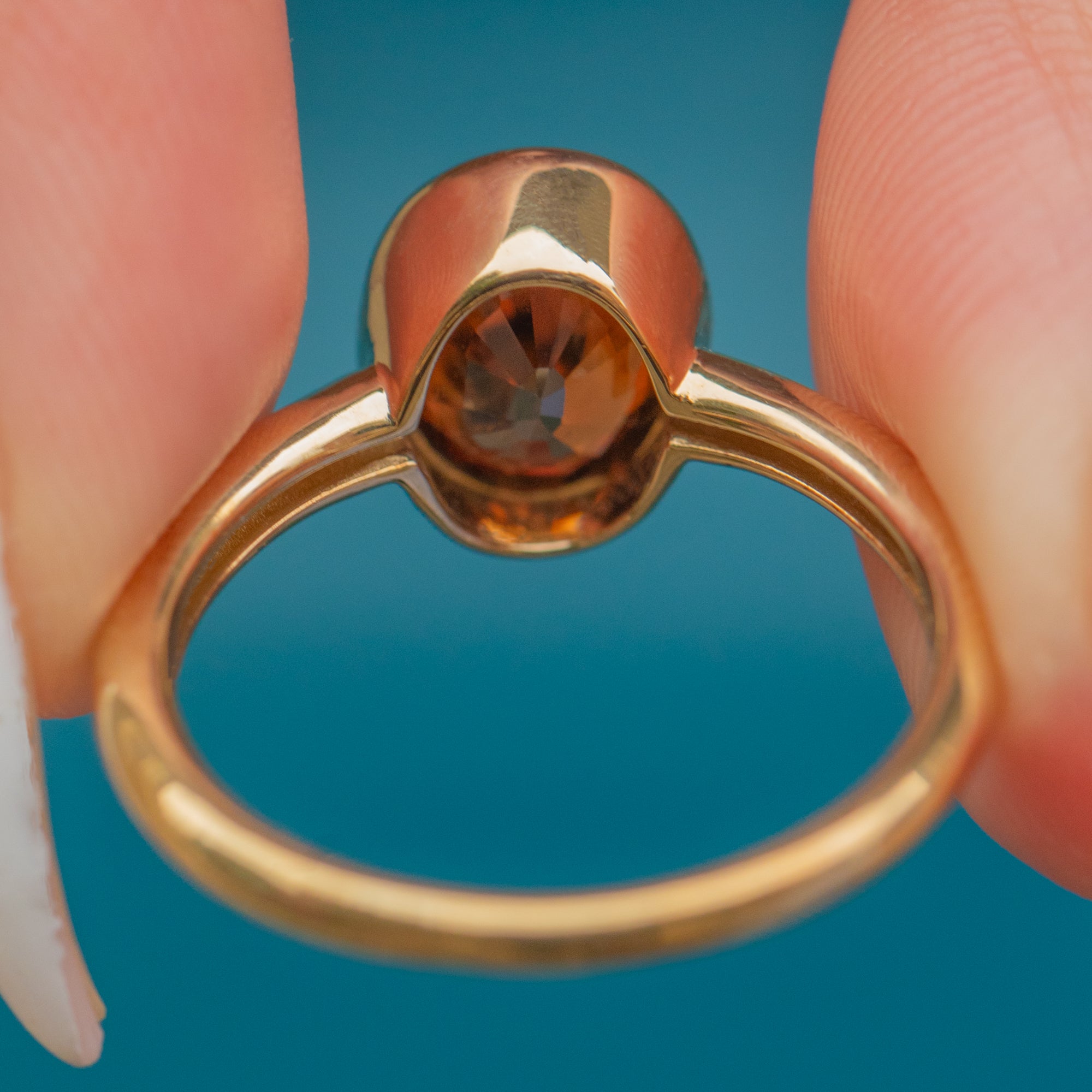 EXCELLENT: The Imperial Topaz is free from chips or abrasions, with a bright and lively colour. The Gold band and setting are in superb condition, retaining their polish with minimal signs of wear.