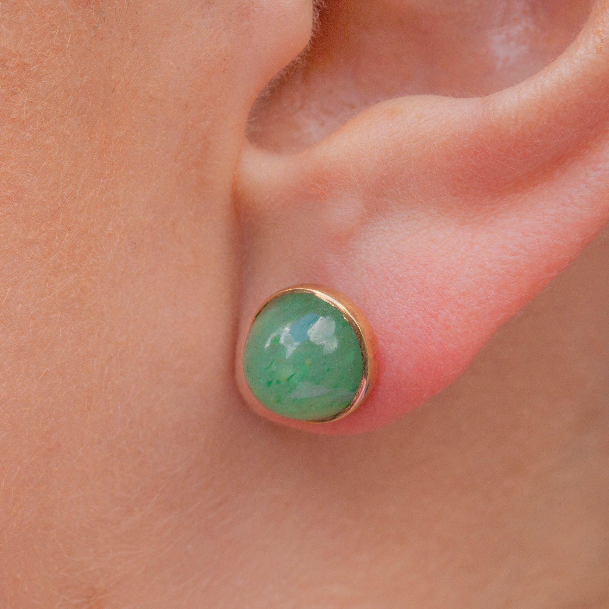 Add an instant pop of colour to your ear stack with these 9ct Gold Jade cabochon stud earrings! The combination of Jade cabochons, flaunting dappled moss hues, with the buttery hue of the chunky 9ct Gold bezel settings create a sophisticated duo.