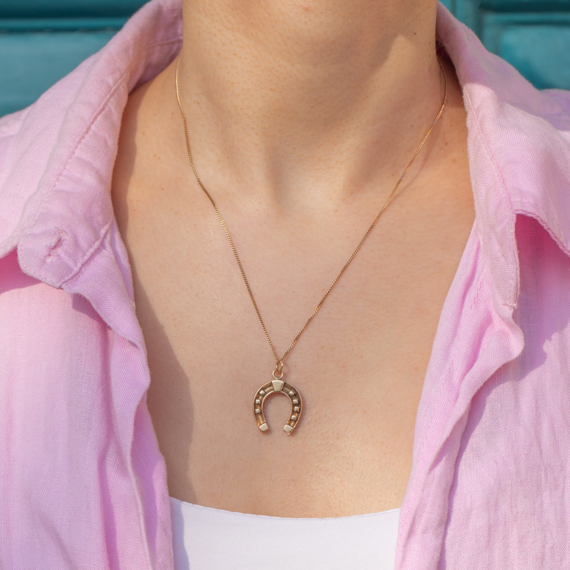 This 9ct Gold Lucky Horseshoe Pendant is a delight to behold. This piece is crafted from solid 9ct Gold with indulgent buttery hues. Well-maintained and smooth, this vintage horseshoe pendant is a sight to behold.
