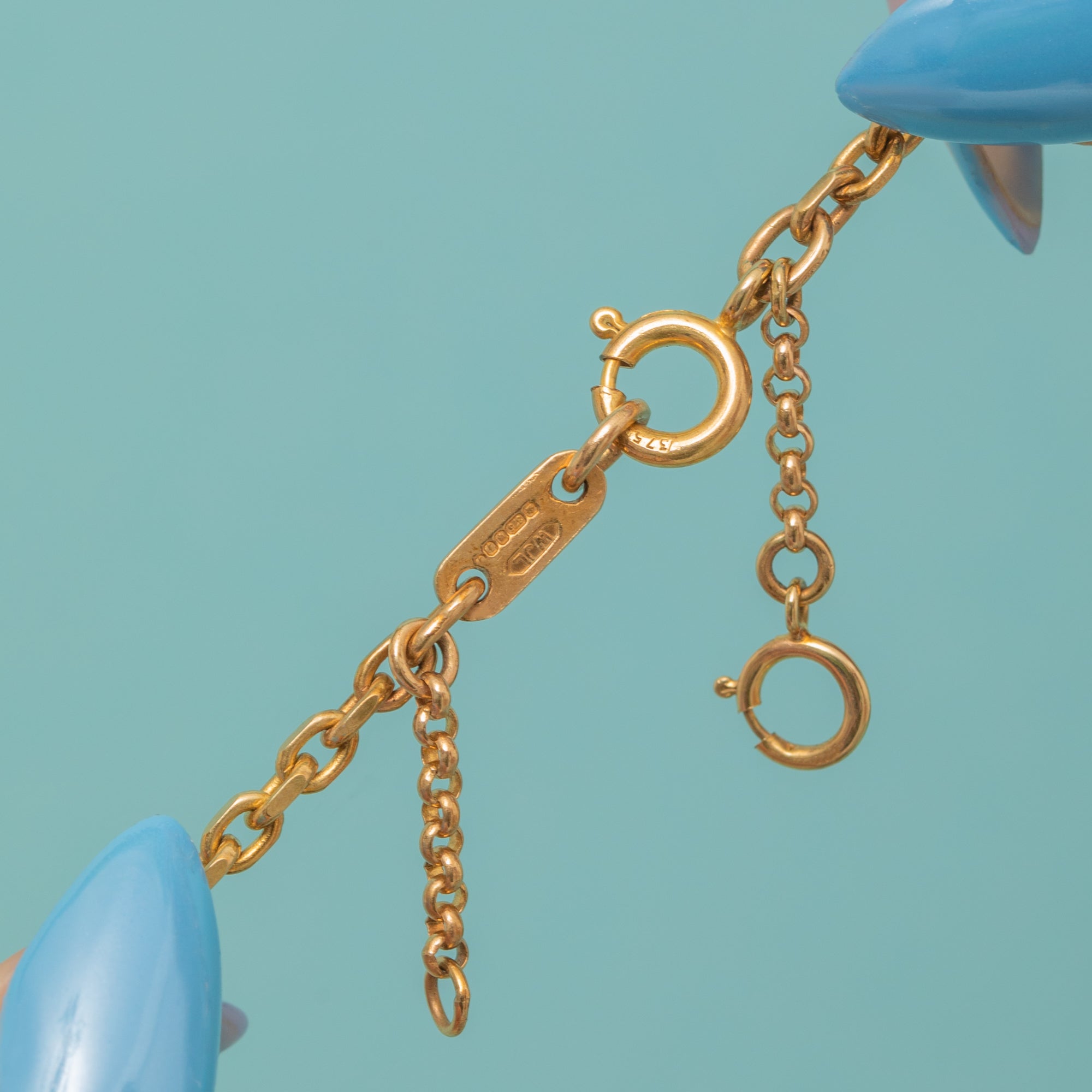 Necklace 22 & 1/2" or 57cm long fully extended.