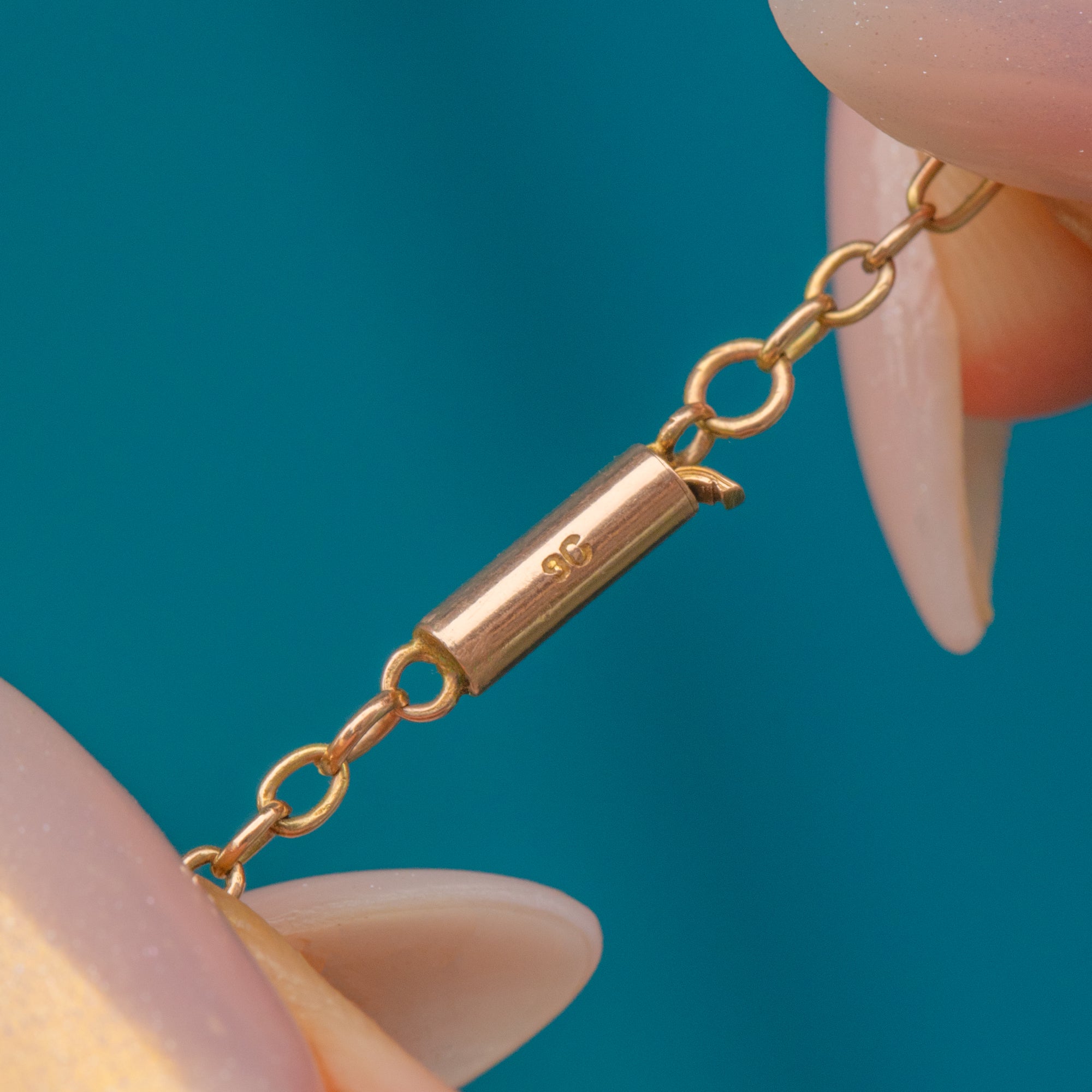 EXCELLENT: The chain is in excellent condition with no wear to the links. The barrel clasp is in good working order, and the Gold has retained a lovely, rich tone. With little else to note, this trombone link chain can be worn with utmost confidence.